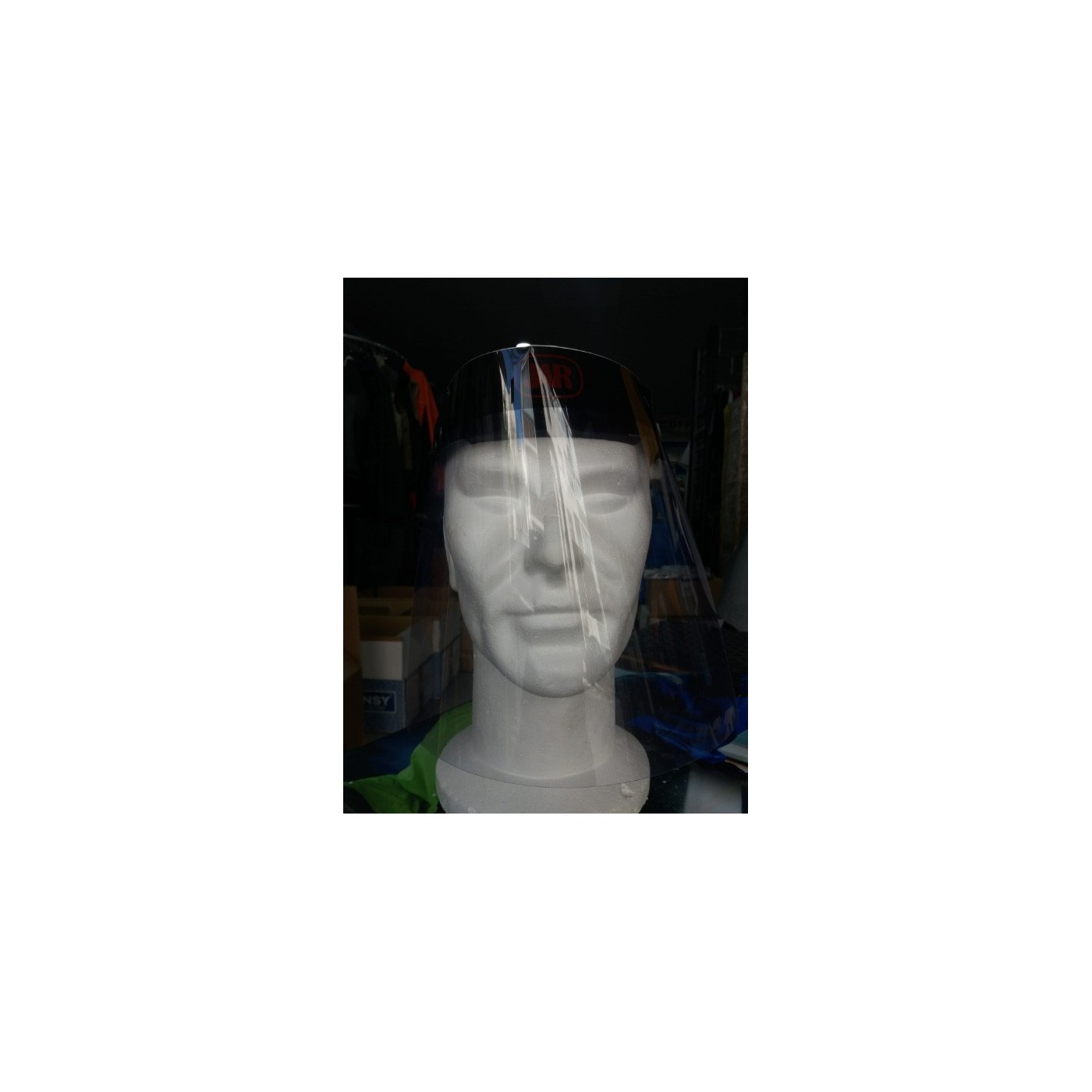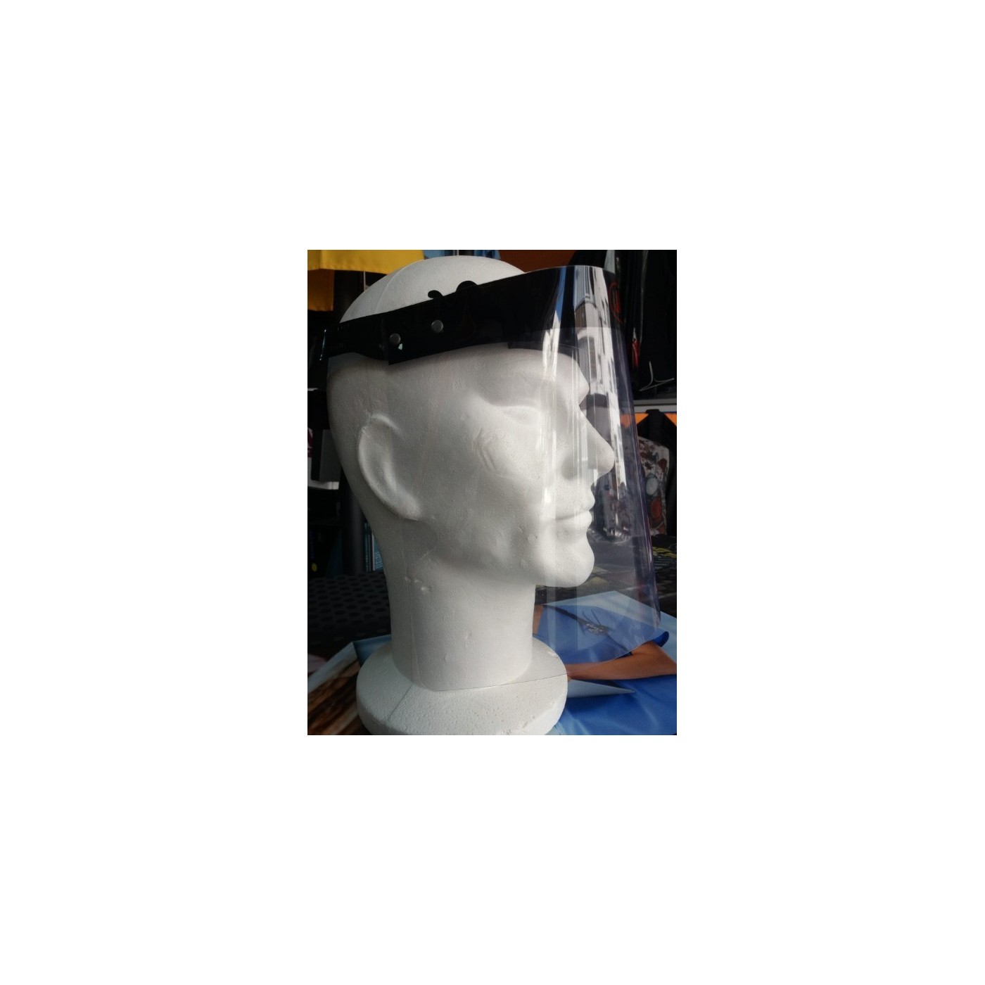 Pantalla facial con esponja frontal y regulador para mejor adaptación a la cabeza.