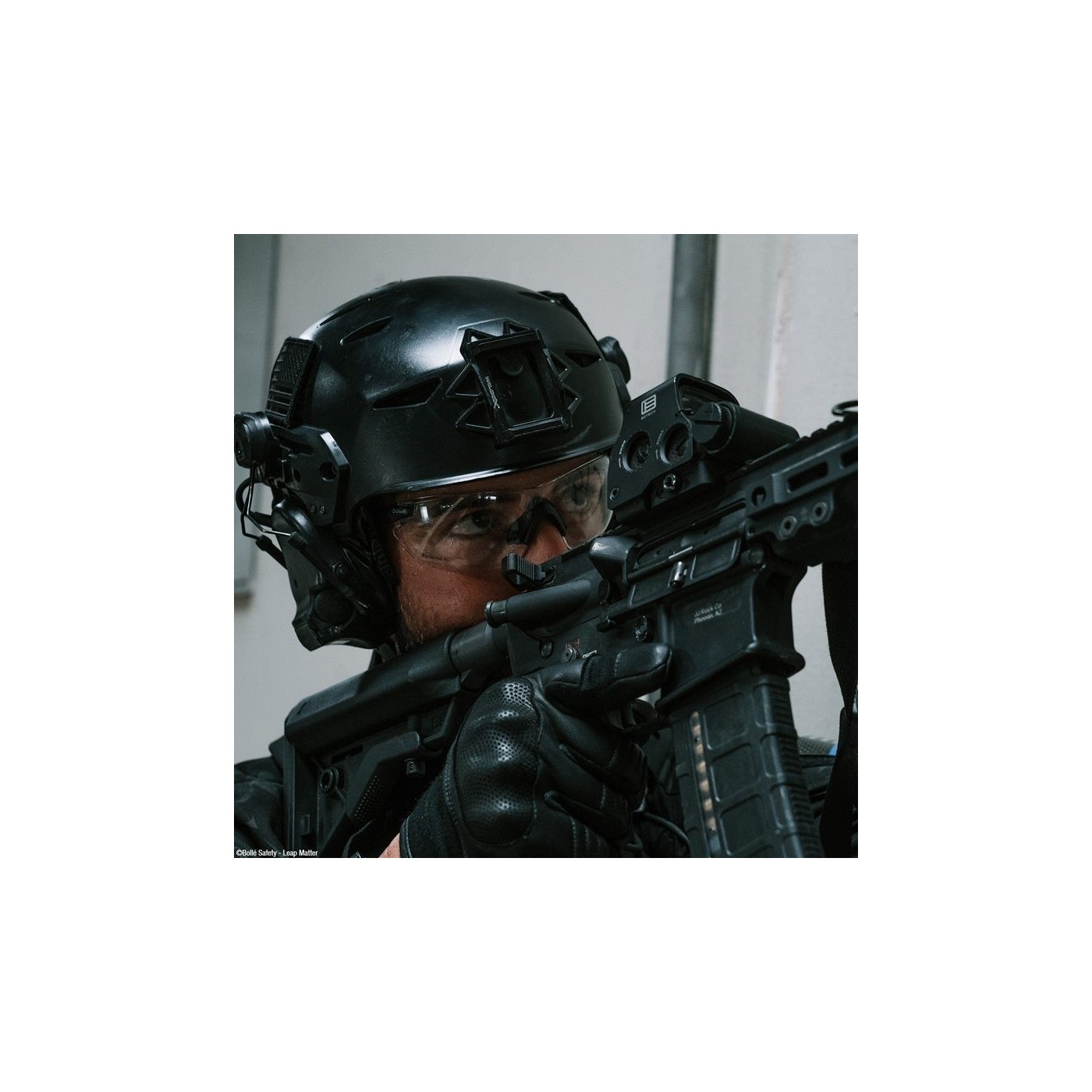 Las gafas protectoras Bollé Safety antibalística COMBAT con revestimiento son la última generación de gafas balísticas híbridas, certificadas STANAG 4296, EN166, EN170 y EN172. Proporcionan una adaptabilidad única gracias a sus monolentes fáciles de cambiar en versiones transparente, ahumada y cobre y su sistema dual de patilla / correa ( con o sin espuma).