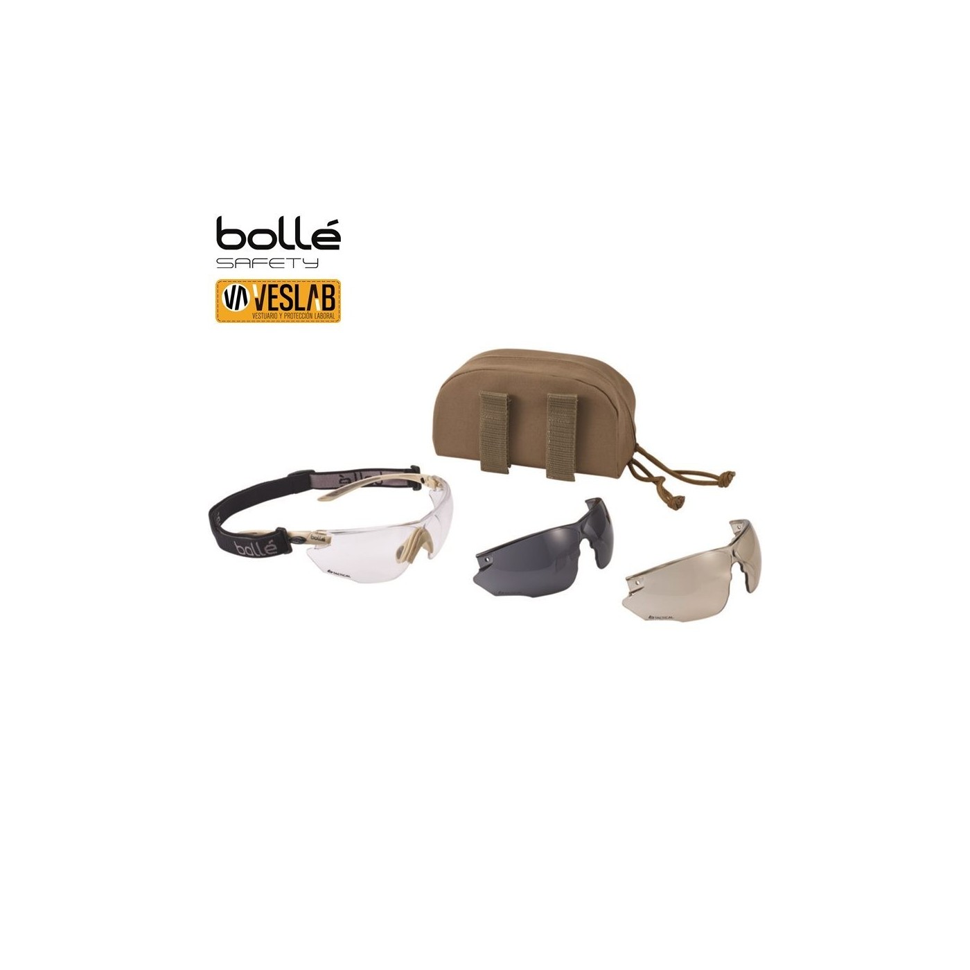 Las gafas protectoras Bollé Safety antibalística COMBAT con revestimiento son la última generación de gafas balísticas híbridas, certificadas STANAG 4296, EN166, EN170 y EN172. Proporcionan una adaptabilidad única gracias a sus monolentes fáciles de cambiar en versiones transparente, ahumada y cobre y su sistema dual de patilla / correa ( con o sin espuma).