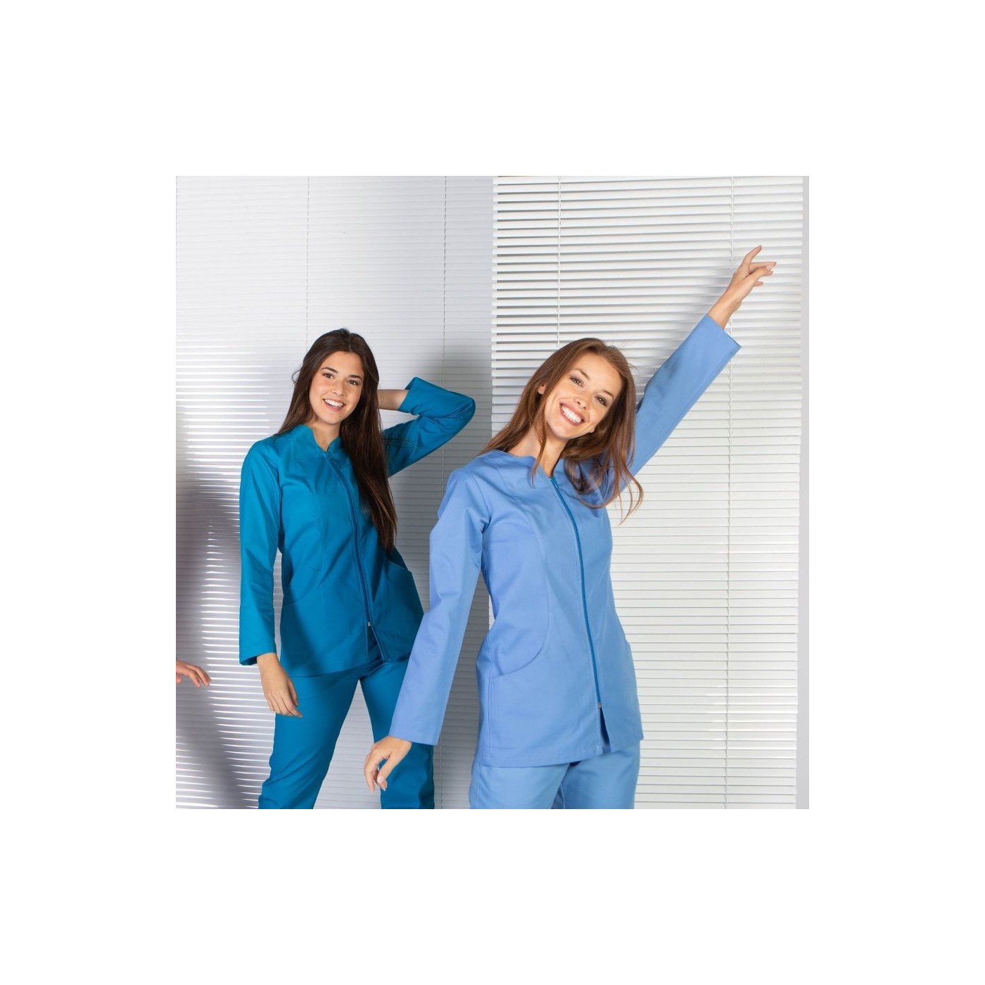 La blusa sanitaria SICILIA de manga larga ofrece estilo y comodidad con su cremallera central, bolsillos laterales y ajuste semi entallado. Confeccionada en resistente tejido de sarga, es perfecta para profesionales de la salud que buscan funcionalidad y elegancia.