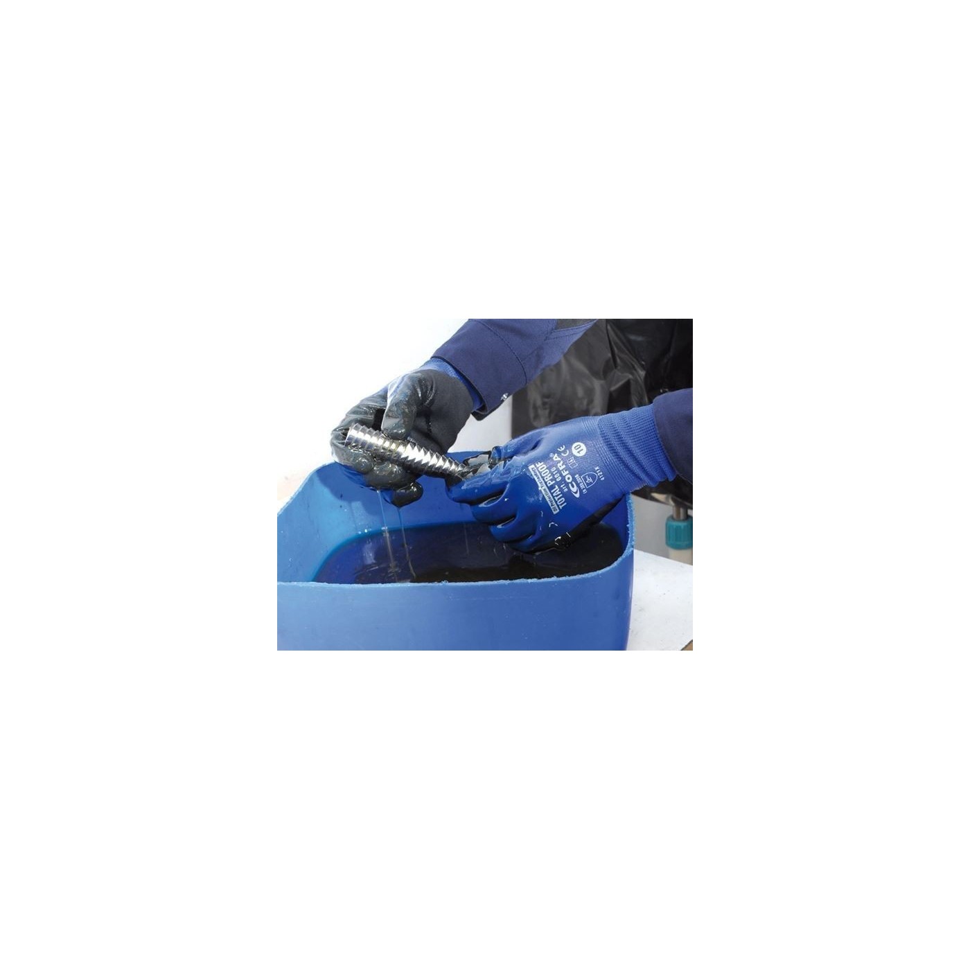 Guantes de protección mecánica con tecnología Oil Protection, totalmente recubiertos de nitrilo para máxima resistencia a aceites y grasas. Ofrecen agarre elevado en superficies aceitosas, alta resistencia a la abrasión y son aptos para contacto alimentario.