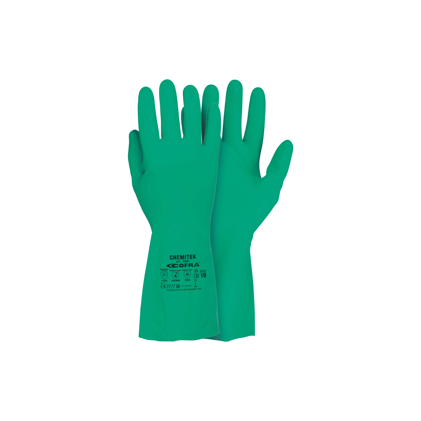 Protege tus manos con total confianza gracias a los guantes Chemitek Protection de Cofra. Fabricados en nitrilo de alta calidad, ofrecen resistencia superior a productos químicos, agentes infecciosos y virus, con un agarre firme incluso en condiciones húmedas.
