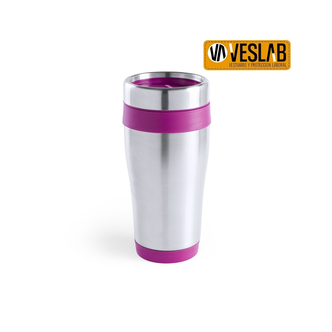 Vaso de acero inox de 450ml de capacidad con cuerpo de acabado brillante con accesorios a juego y en vivos colores. Con tapa dosificador de seguridad y presentado en atractiva caja de diseño.