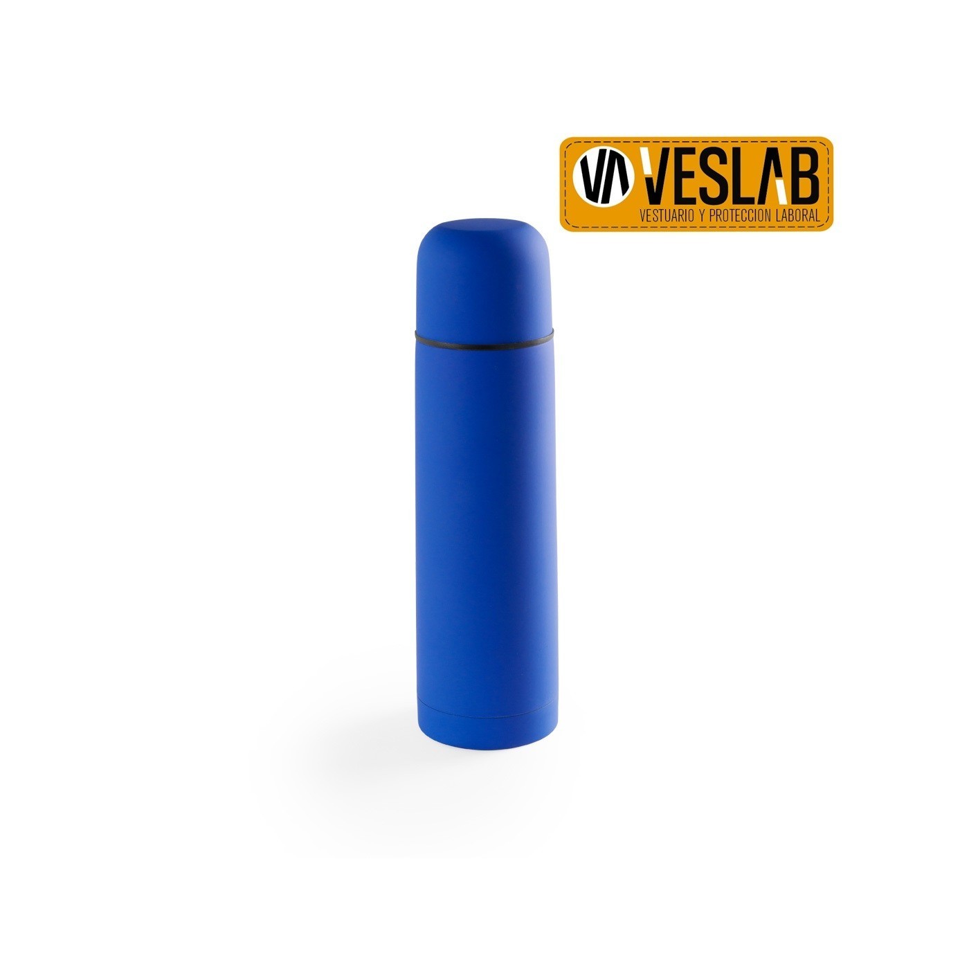 Termo de acero inox de 500ml de capacidad en diseño monocolor de vivos colores. Con dosificador de seguridad y tapa a rosca convertible en taza. Presentado en caja individual.