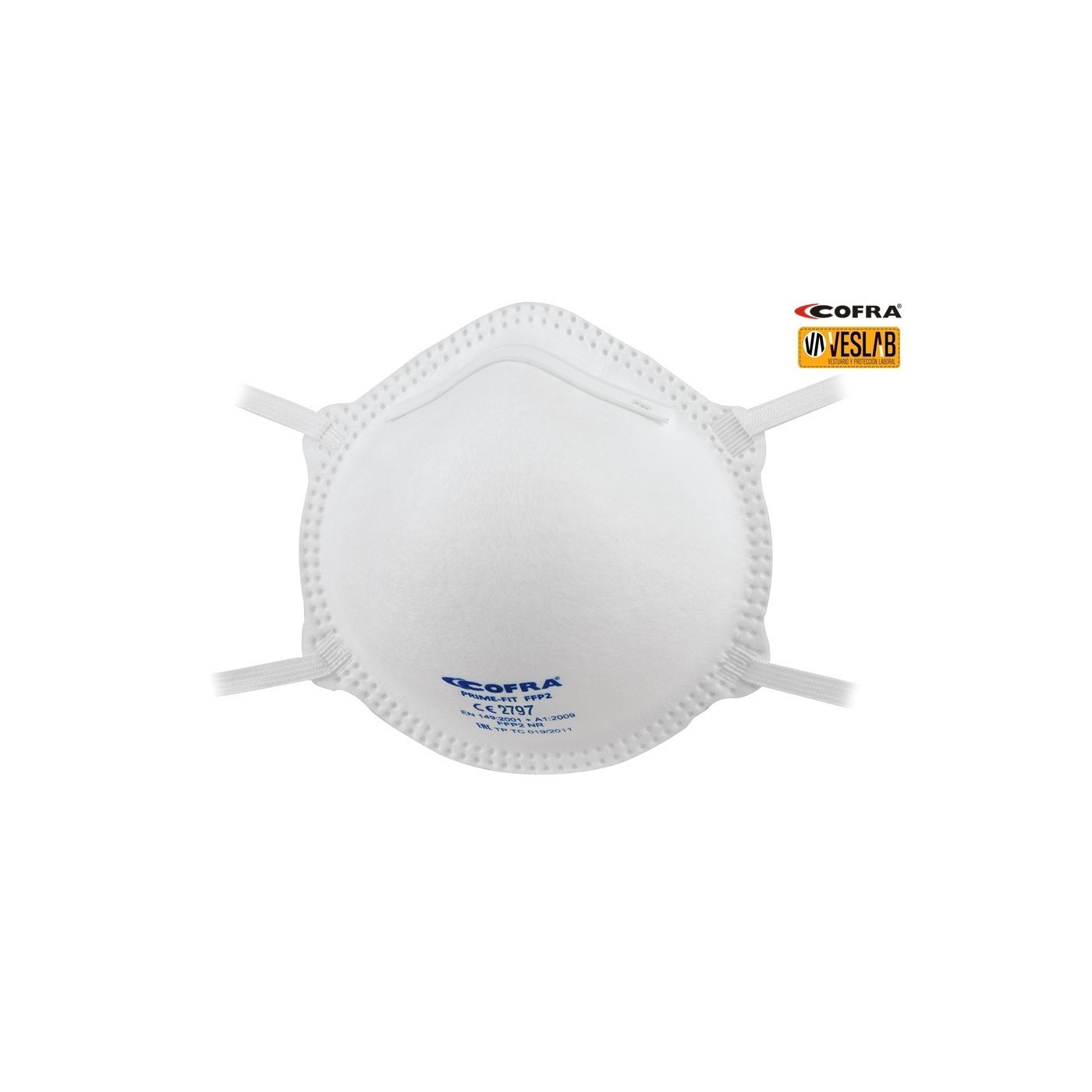 La máscara PRIME-FIT FFP2 de la línea Overskin de COFRA es una máscara respiratoria ergonómica con forma de concha diseñada para ofrecer protección contra polvos, humos y nieblas. No tiene partes metálicas expuestas y cuenta con un clip nasal de metal revestido de plástico flexible. Los elásticos están soldados por ultrasonidos para mayor durabilidad. Esta máscara es adecuada para uso diario y está disponible en diferentes tamaños de embalaje.