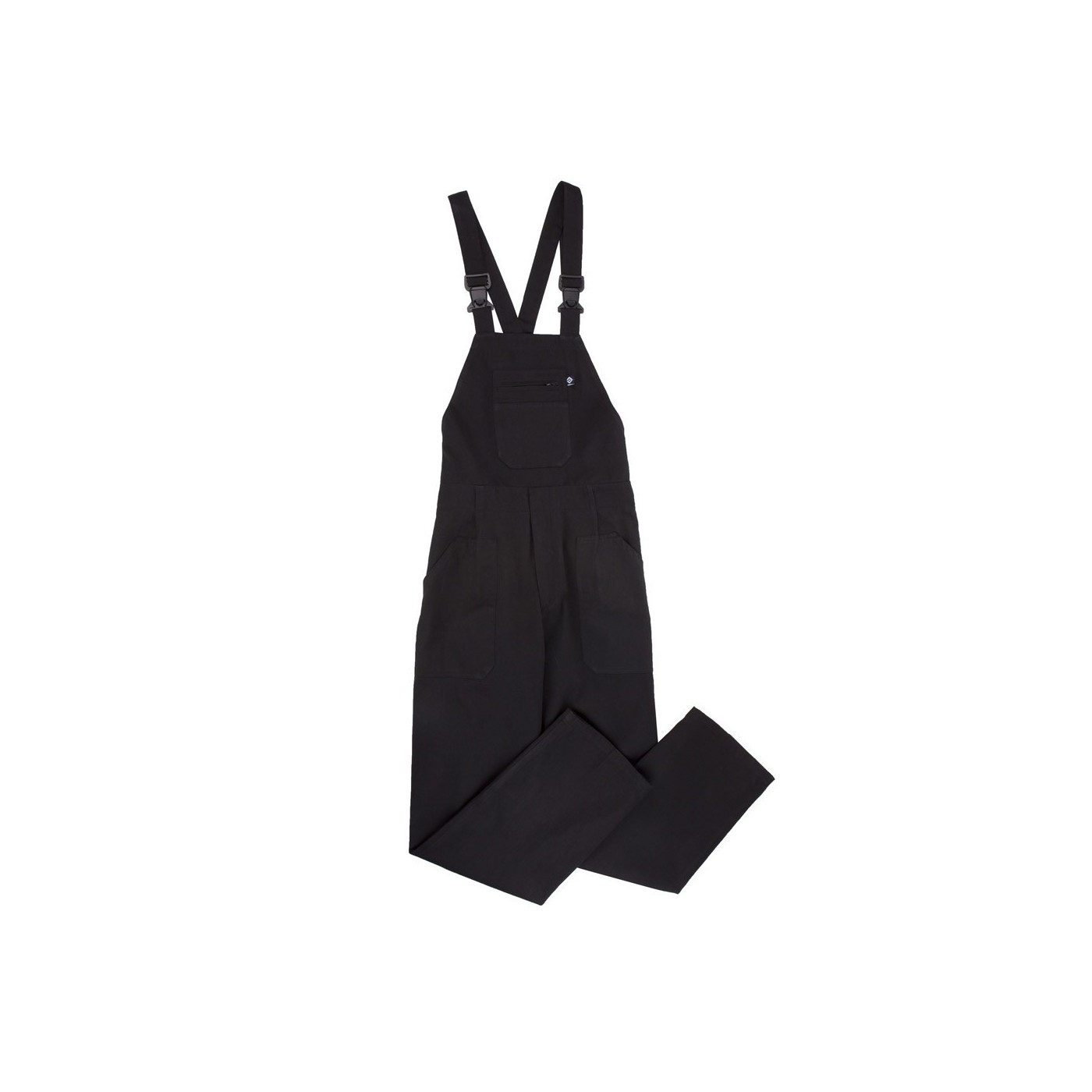 Pantalón con peto de hebillas de PVC en los tirantes.