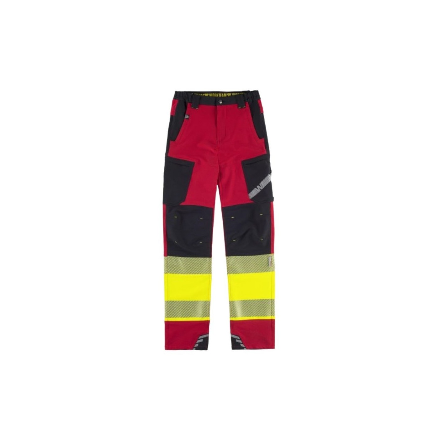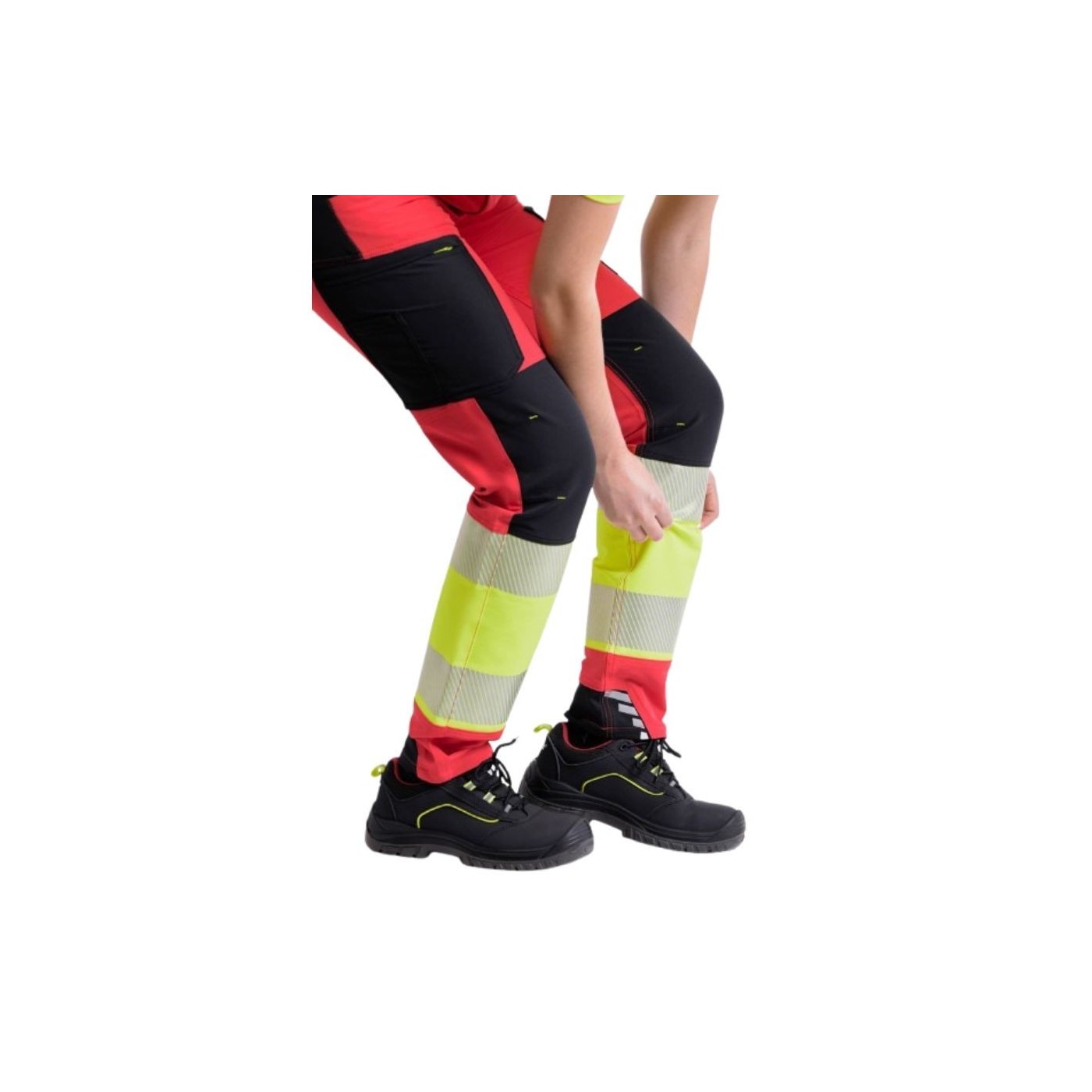 Pantalón elástico en 4 direcciones con alta visibilidad y cintas reflectantes segmentadas.