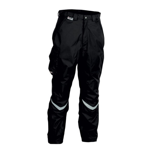 El pantalón acolchado FROZEN de Cofra ofrece máxima protección contra el frío extremo, con aislamiento térmico certificado hasta -28,1 °C, material impermeable y antiviento, refuerzos en rodillas, polainas impermeables y insertos reflectantes para mayor seguridad.