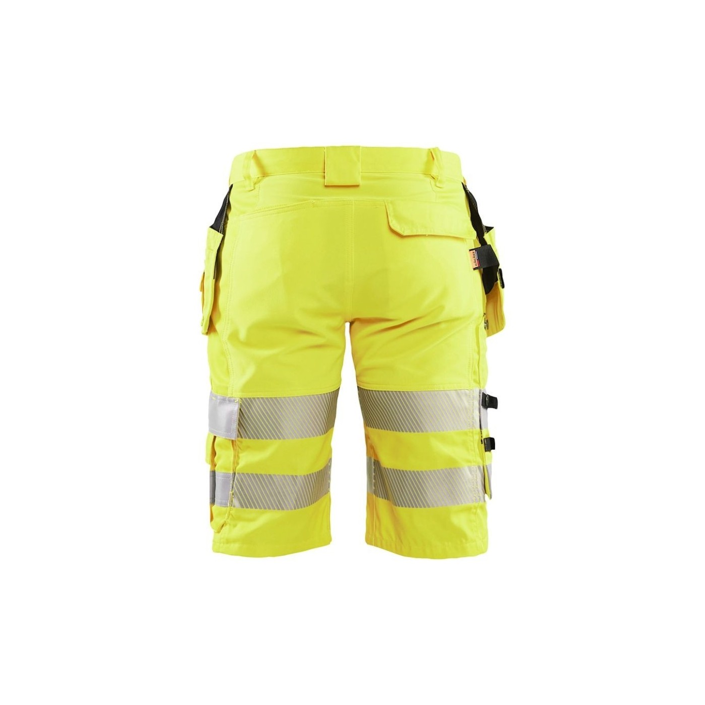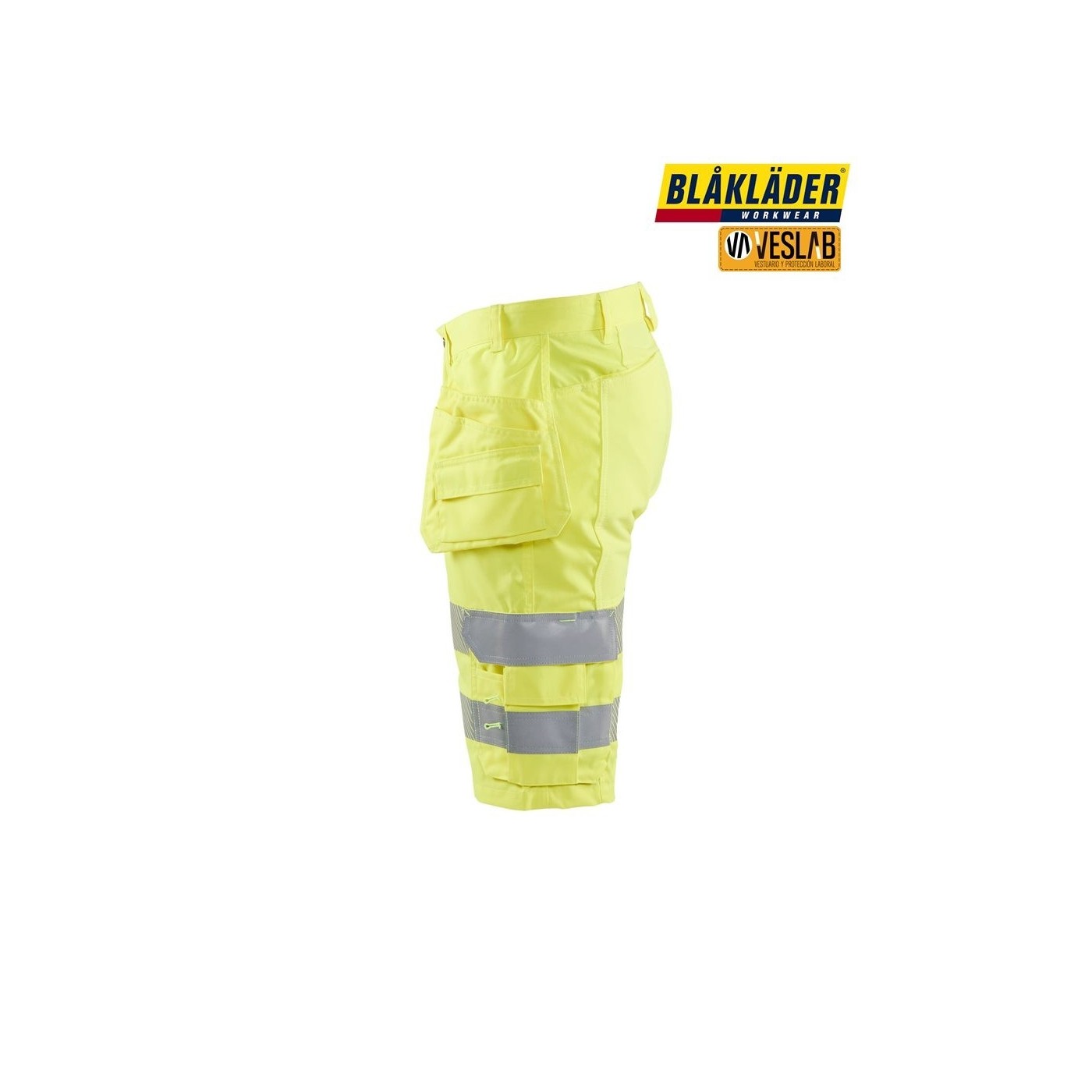 Pantalón corto de alta visibilidad extremadamente cómodo y flexible con paneles elásticos en la entrepierna, el canesú y el asiento. Un pantalón corto de alta visibilidad de clase 2, basado en el pantalón Blåkläder 1552. Presenta detalles reflectantes, bolsillo trasero con solapa, bolsillo para el móvil, bolsillo para identificación y bolsillo reforzado con CORDURA®, además de un bolsillo para clavos. Certificado conforme a EN ISO 20471, Clase 2. Certificado de combinación X.