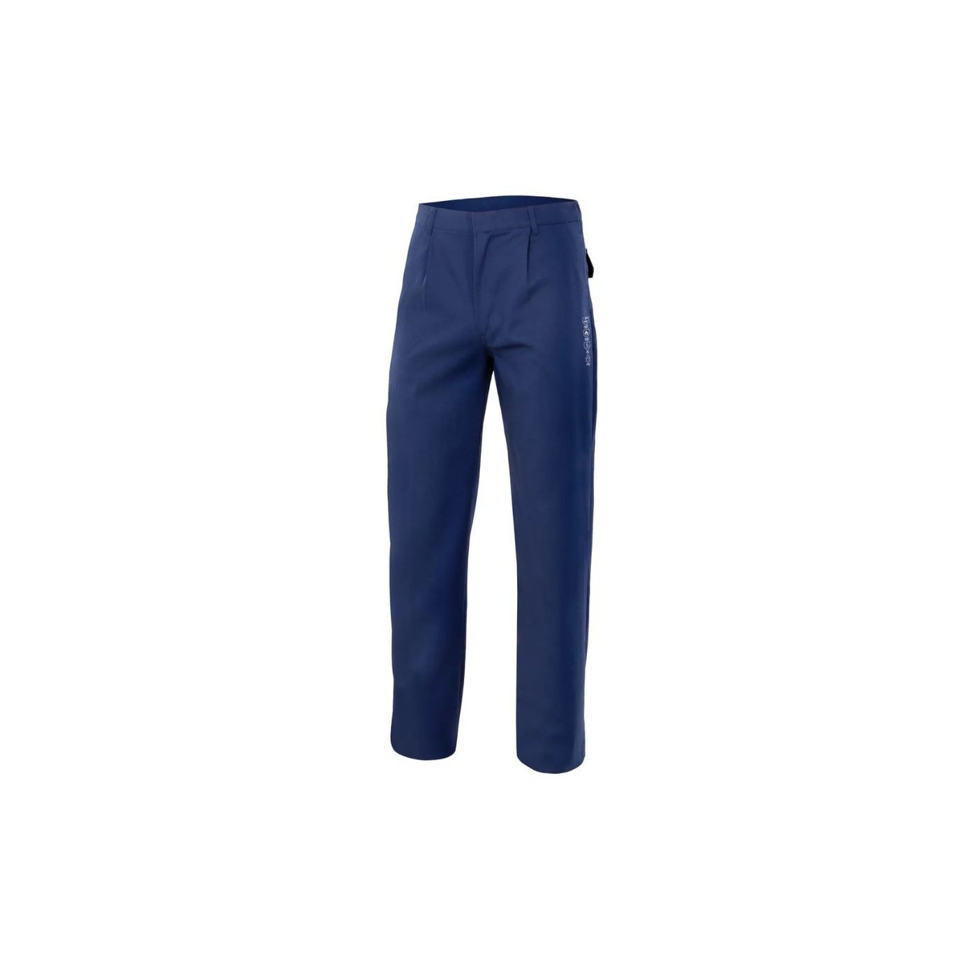 Pantalón Ignífugo Velilla con cierre central de cremallera y botón automático. Ofrece doble costura de seguridad y bajos ajustables con velcro. Cuenta con cuatro bolsillos: dos de vivo en costura y dos traseros con tapeta y cierre de velcro.