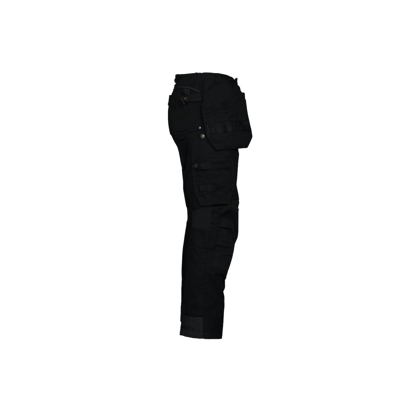Bolsillos con extra compartimentos y refuerzos interiores de Cordura. Bolsillos traseros con refuerzo interior. Frontal con refuerzo para bolígrafos o cúter. Bolsillo en pierna con compartimento para móvil. Rodillas pre-curvadas con bolsillos de dos alturas. Detalles Cordura con reflectante.