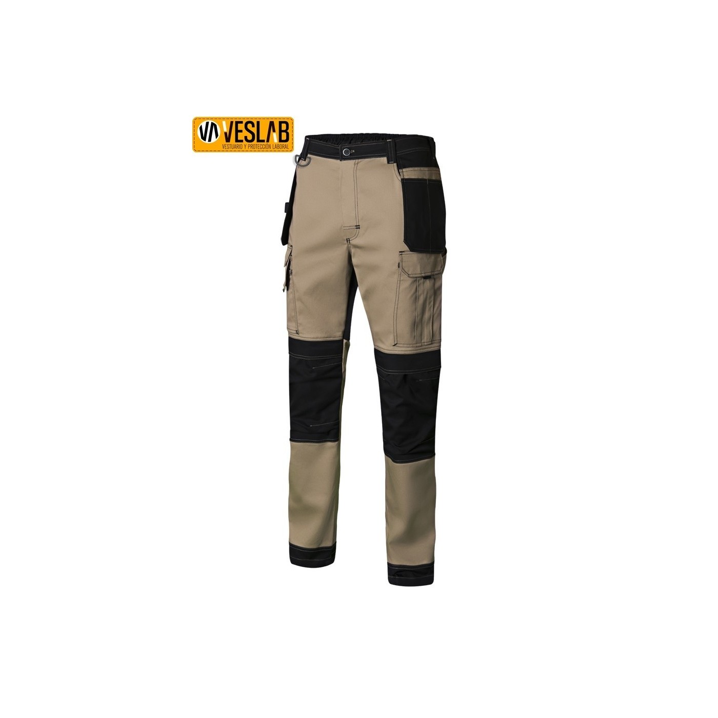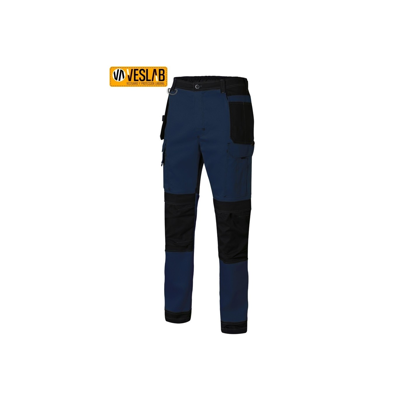 El PANTALÓN CANVAS STRETCH CON BOLSILLOS FLOTANTES BICOLOR Velilla dispone de una gran cantidad de bolsillos, lo que le confiere gran capacidad de almacenaje para sus herramientas, teléfono... Es un pantalón de trabajo con bolsillos flotantes y con refuerzos en tejido Oxford en las rodillas.