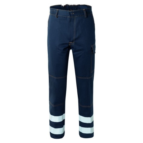 Cierre de solapa con cremallera y botón, 2 bolsillos delanteros, 1 bolsillo trasero con cierre a la derecha con botón, soporte de 1 metro, 1 portalápices y 1 bolsillo lateral aplicado a la izquierda cerrado con solapa y velcro, elástico en la cintura trasera, costuras color de contraste.