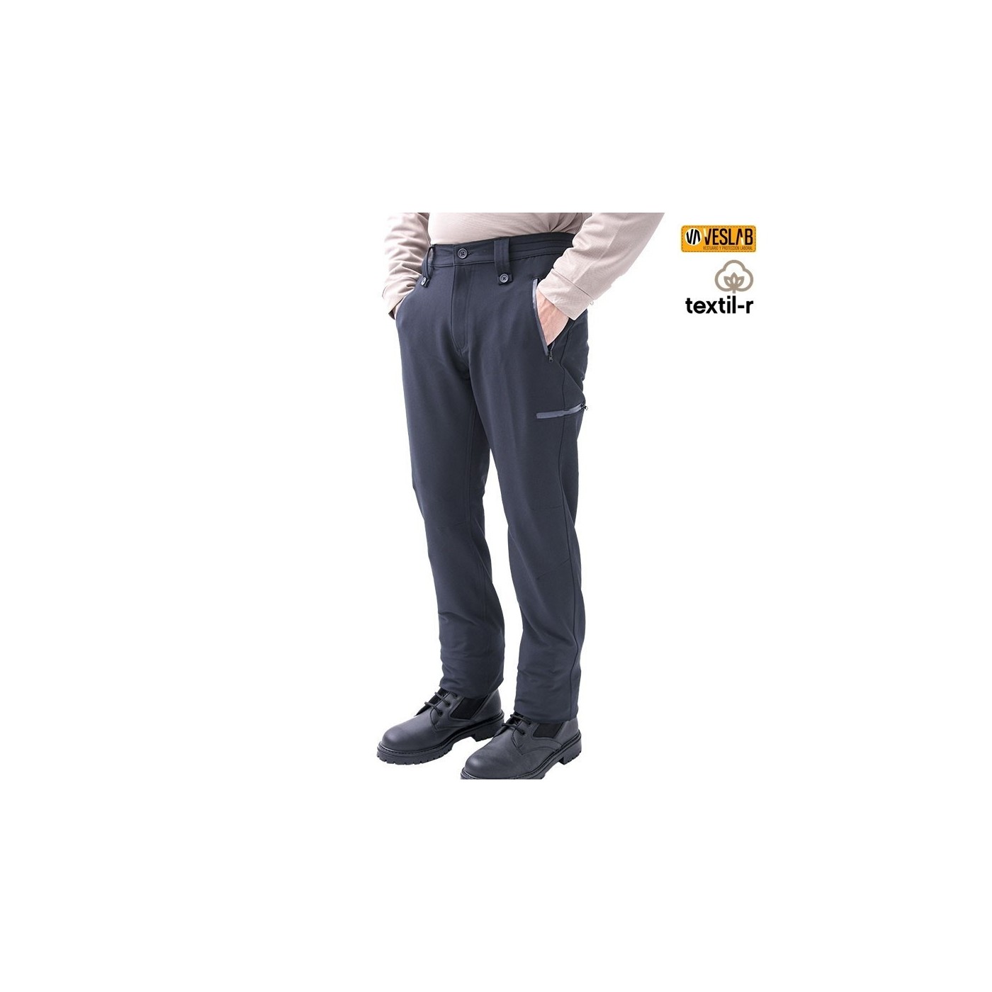 Pantalón bistretch unisex tejido softhell. 5 bolsillos con cremalleras resistentes al agua. Tejido extensible y cintura elástica. Bajos con cordón elástico y pieza ajustable. Ideal para vigilantes de seguridad, personal de servicios o para uso individual. Composicion: 90%poliester 10%spandex.