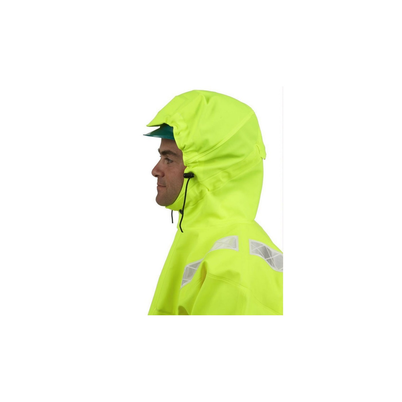 - La capucha "MAGIC" que gira con la cabeza (sistema patentado): gira con la cabeza y permite una visión panorámica en todas las circunstancias, brindando así una seguridad óptima. Es lo suficientemente grande como para ser usado en un casco.Las tiras REFLEXITE GP 340 blancas (700 candelas). Mangas de copa montadas.Deslice debajo de la pata para presionar. Puños ajustables.