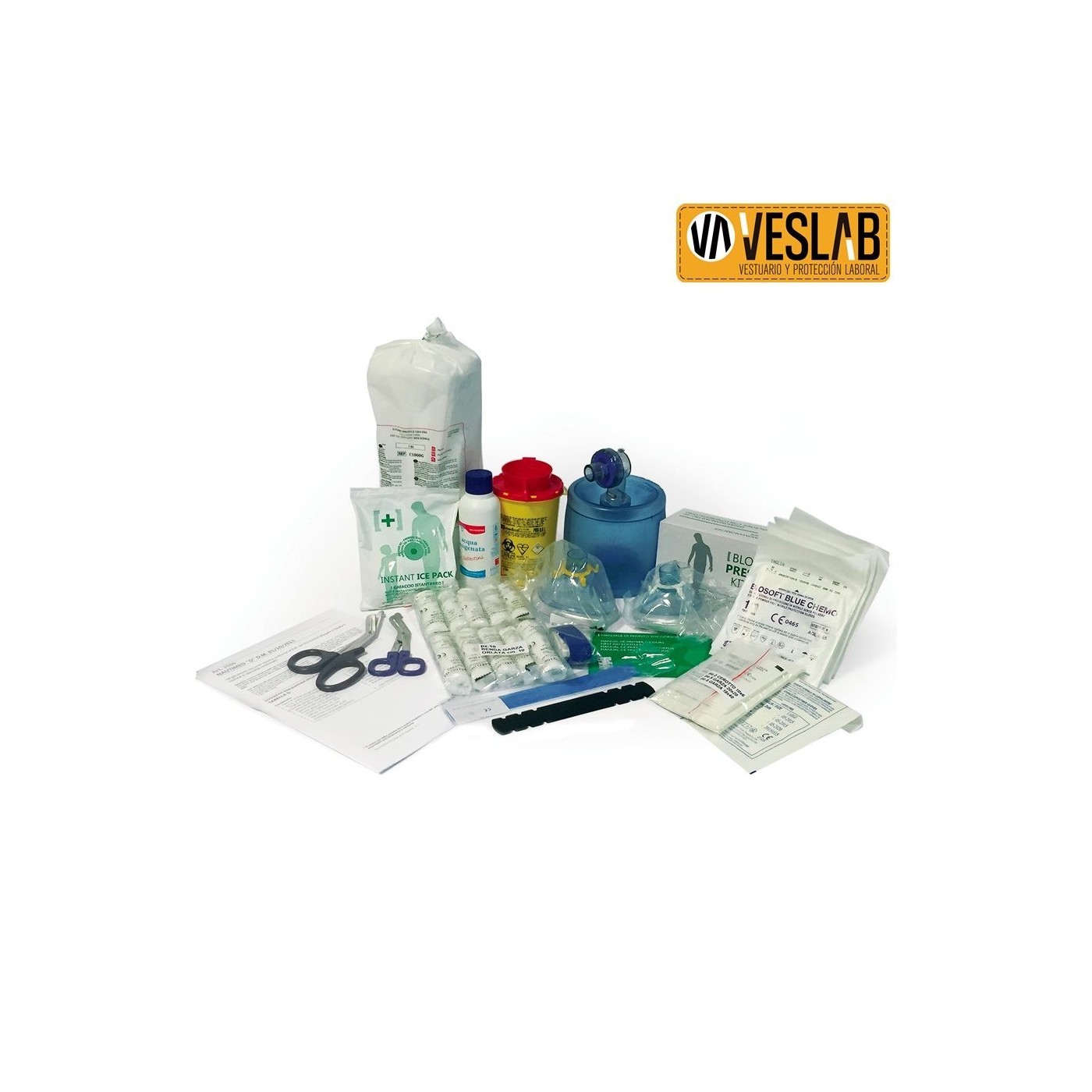 Se trata de un práctico petate estanco que incluye todos los dispositivos de primeros auxilios que cumplen con la norma EC 93/42 y DL 24.2.97 según la pestaña. D del decreto 10/2015
