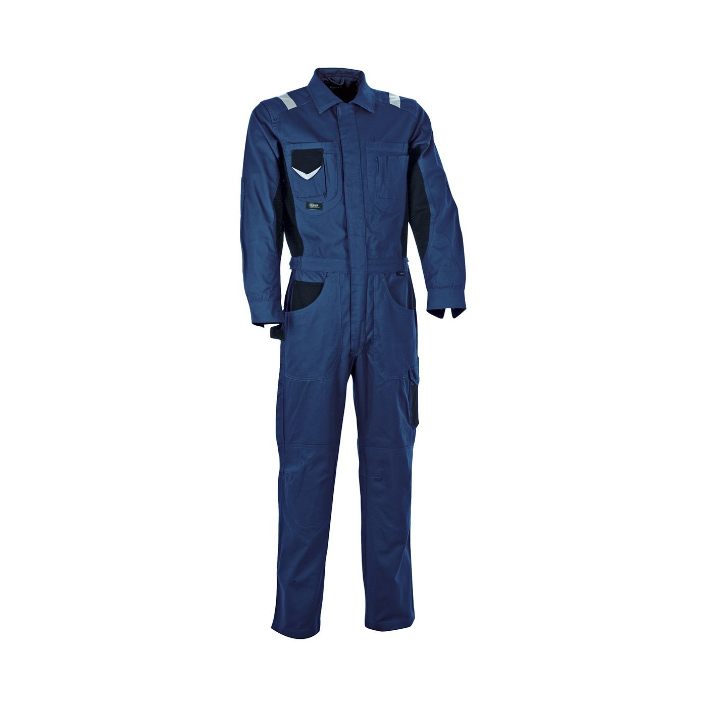 Bolsillo portamóvil con tejido aislante E-CARE. Insertos reflectantes 3M. Corte ergonómico de las mangas y piernas para facilitar los movimientos corporales. Parche de refuerzo en codos y rodillas. Amplios bolsillos delanteros y en el pecho. Doble bolsillo traseros, uno de ellos con tapeta. Bolsillo lateral con insertos para porta herramientas. Bolsillo para flexómetro. Pasador portamartillo. Inserto Portabolígrafos. Cintura ajustable y elástica. Puños regulables.