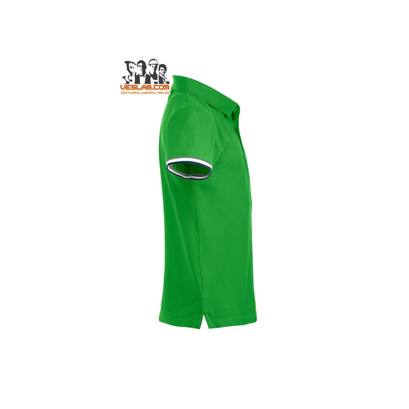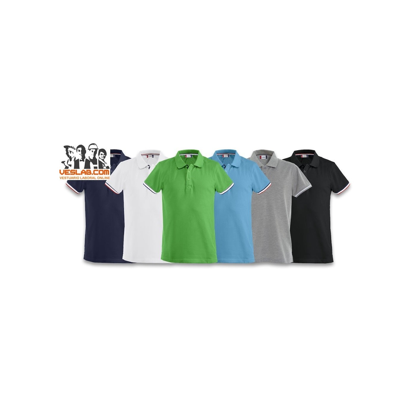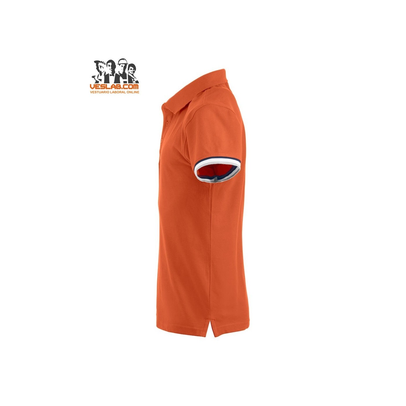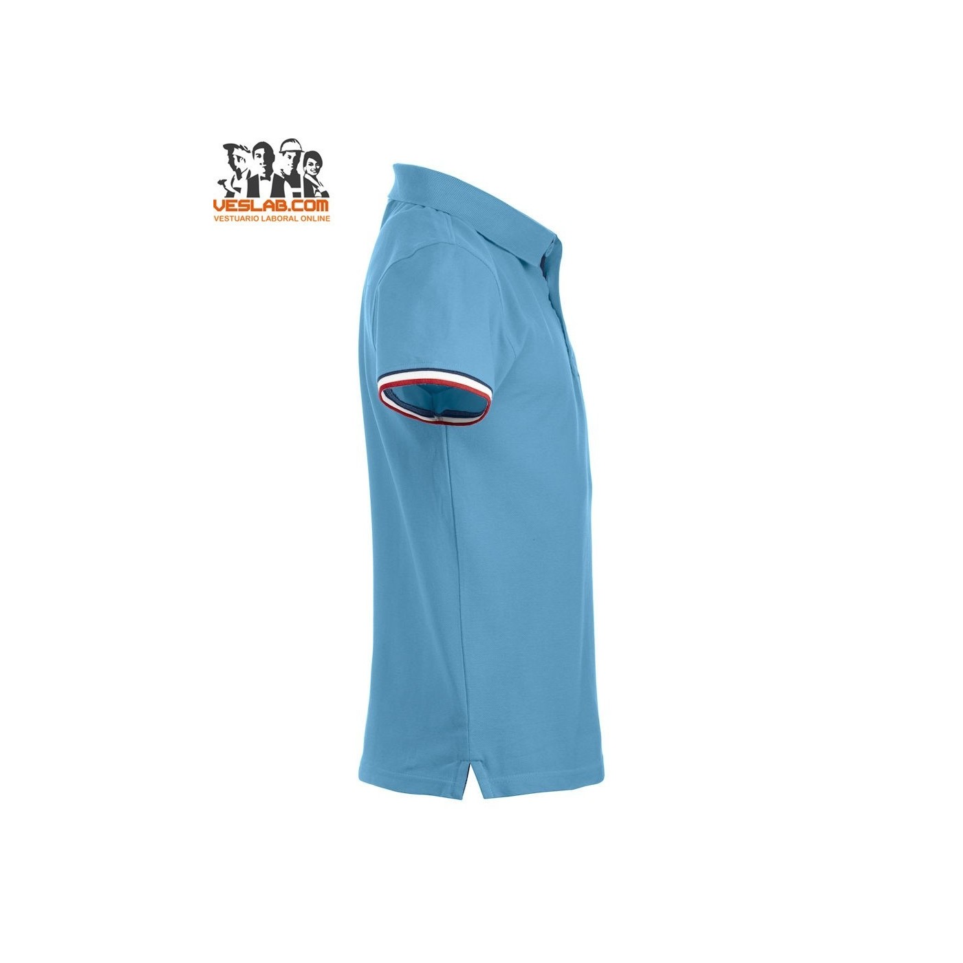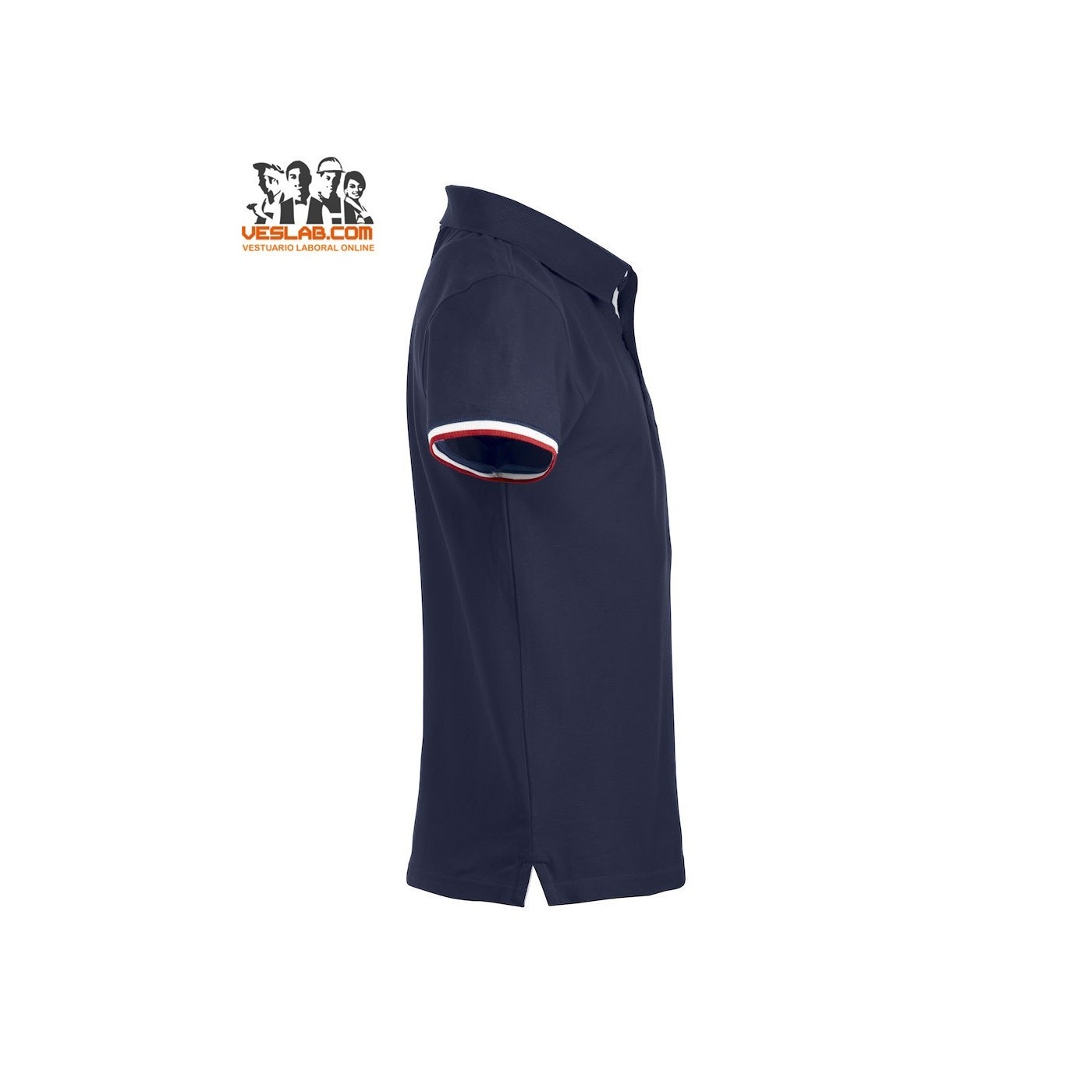 Polo de algodón con contraste a tres colores en el reverso del cuello, tapeta, manga y aberturas laterales.