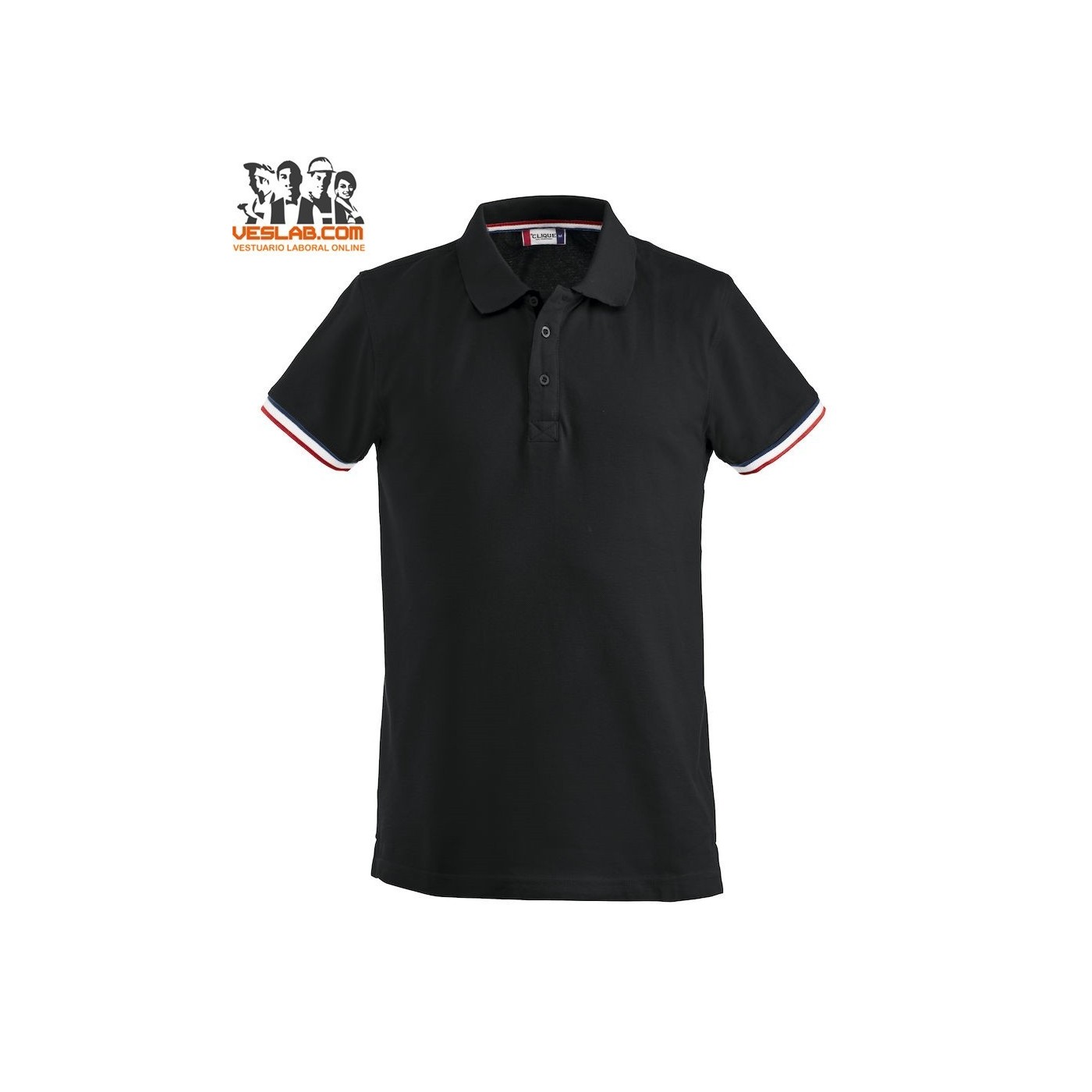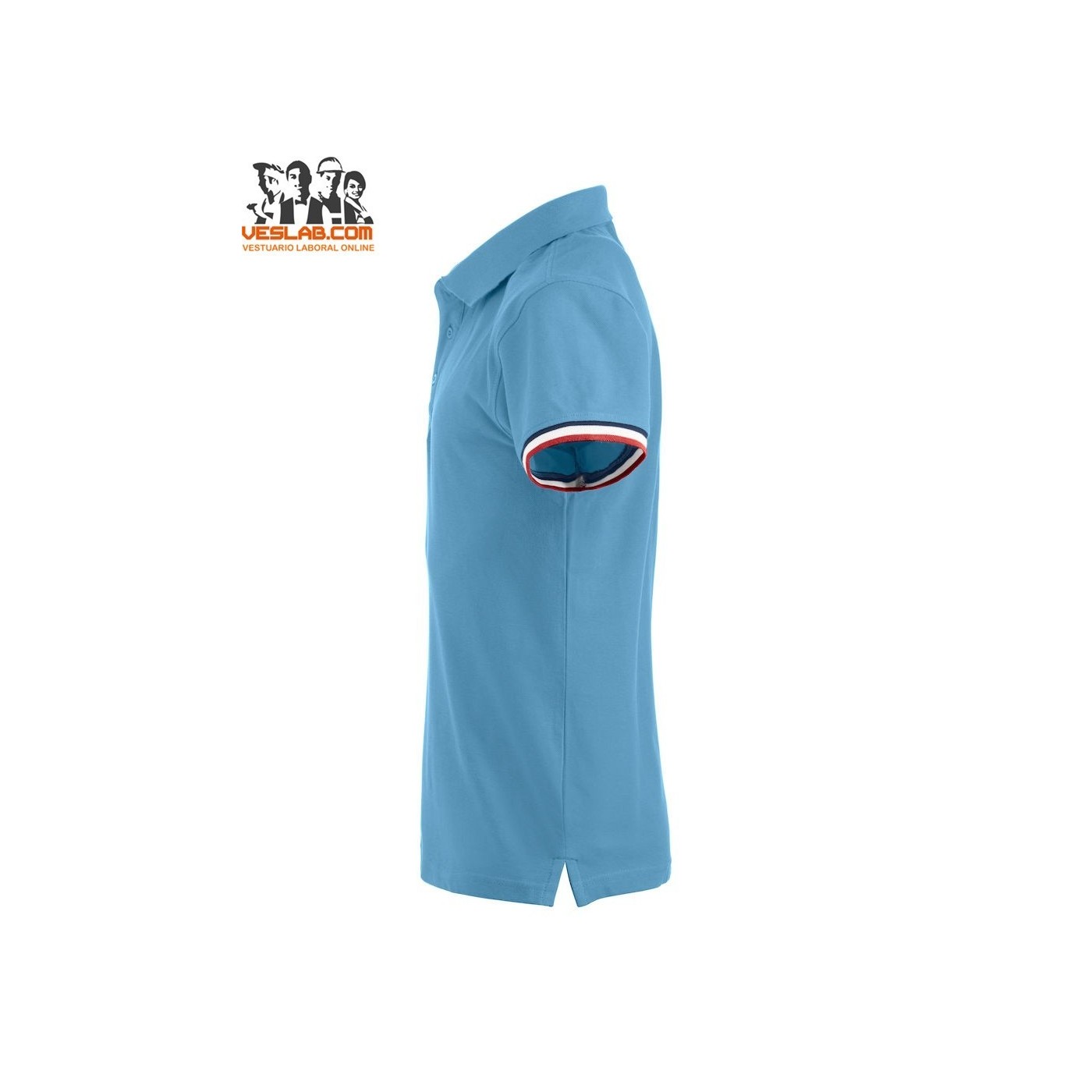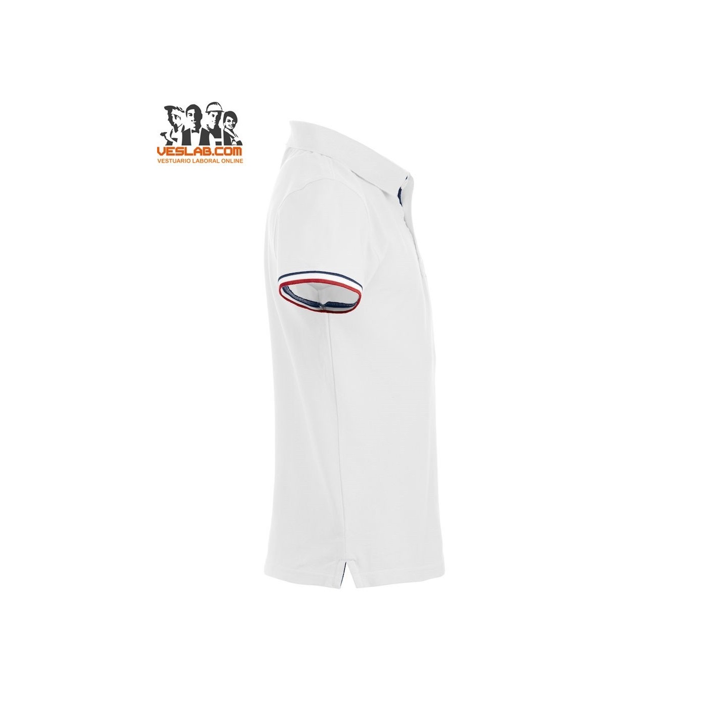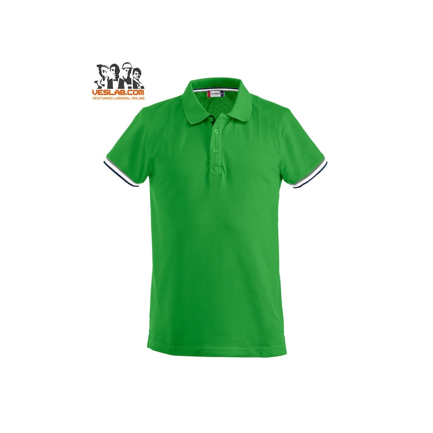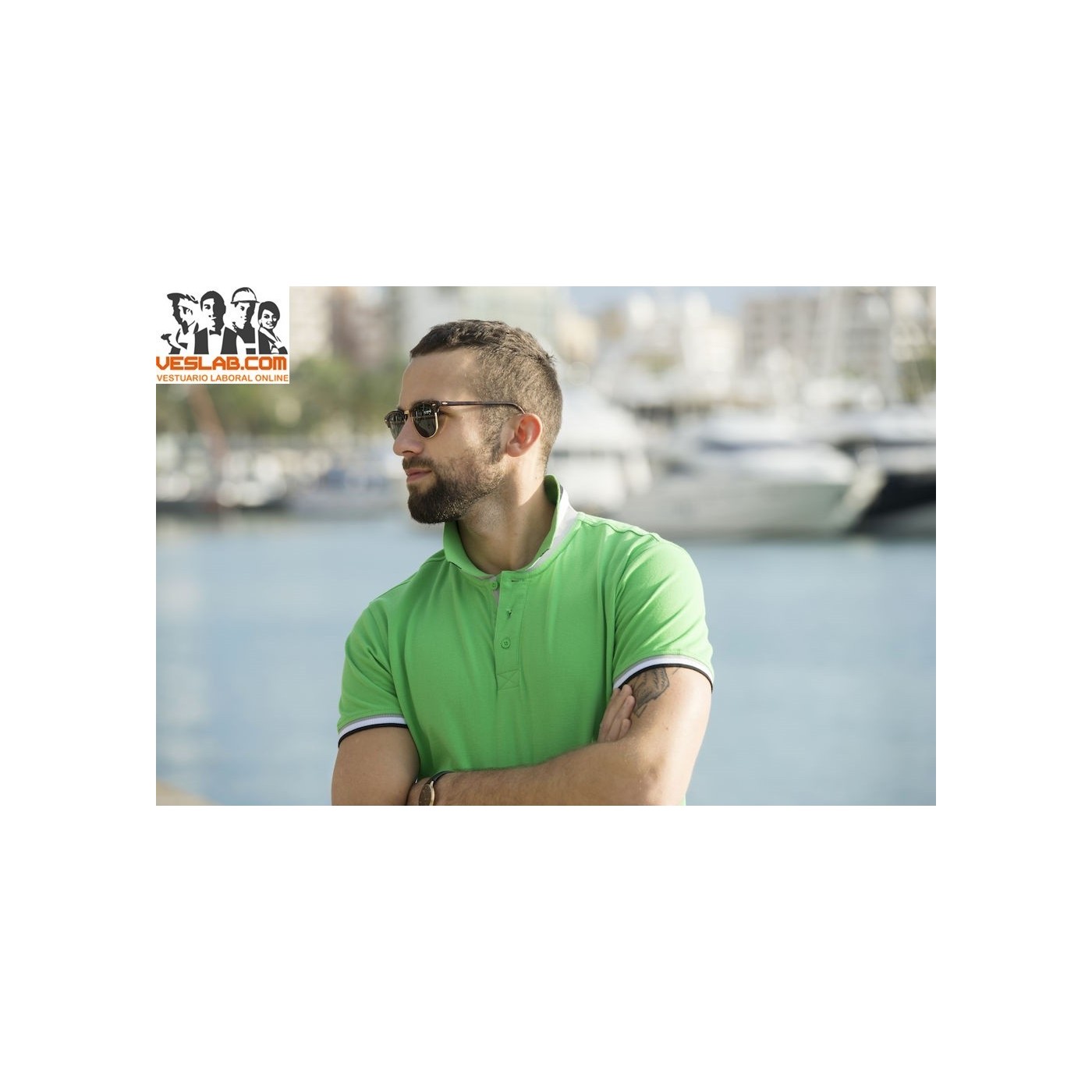 Polo de algodón con contraste a tres colores en el reverso del cuello, tapeta, manga y aberturas laterales.