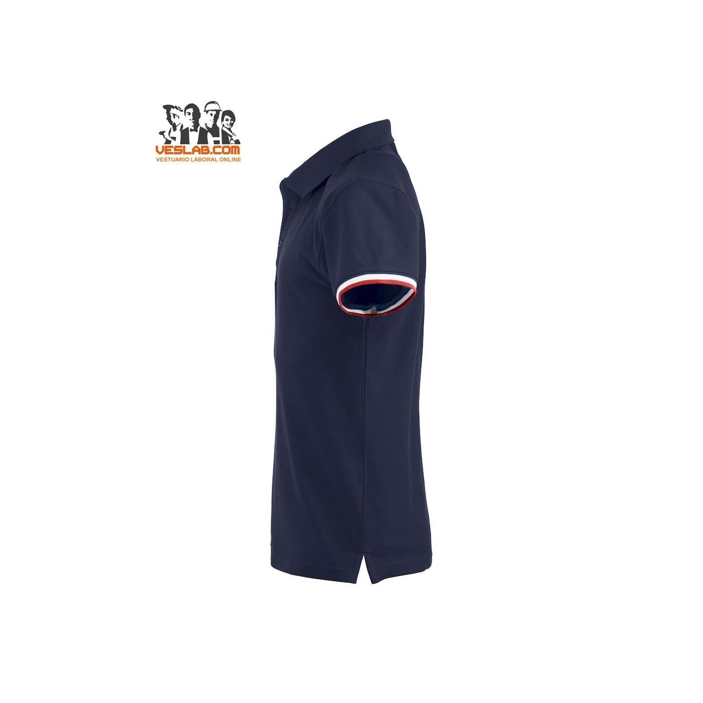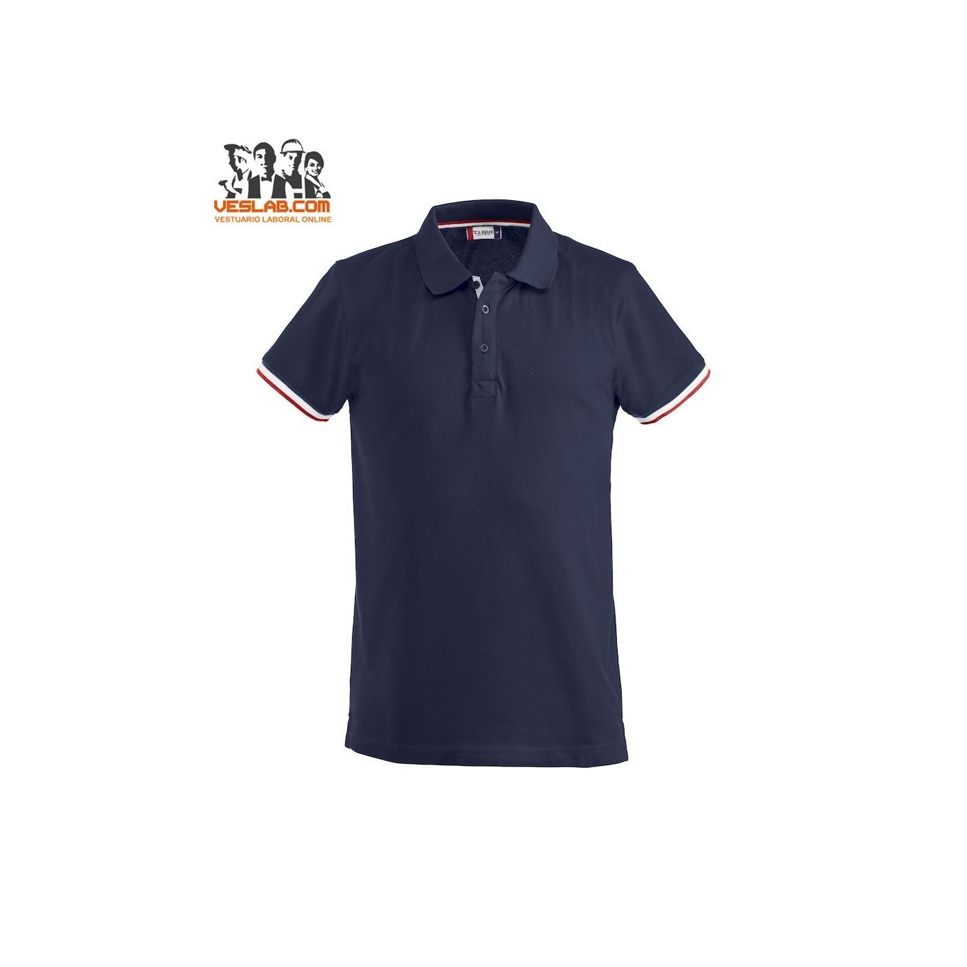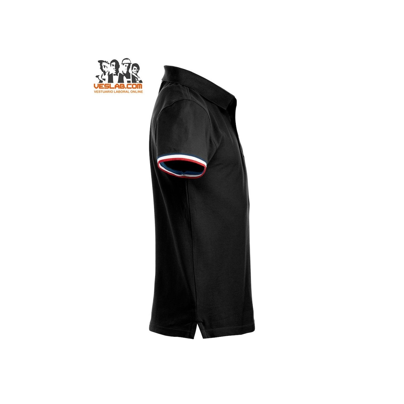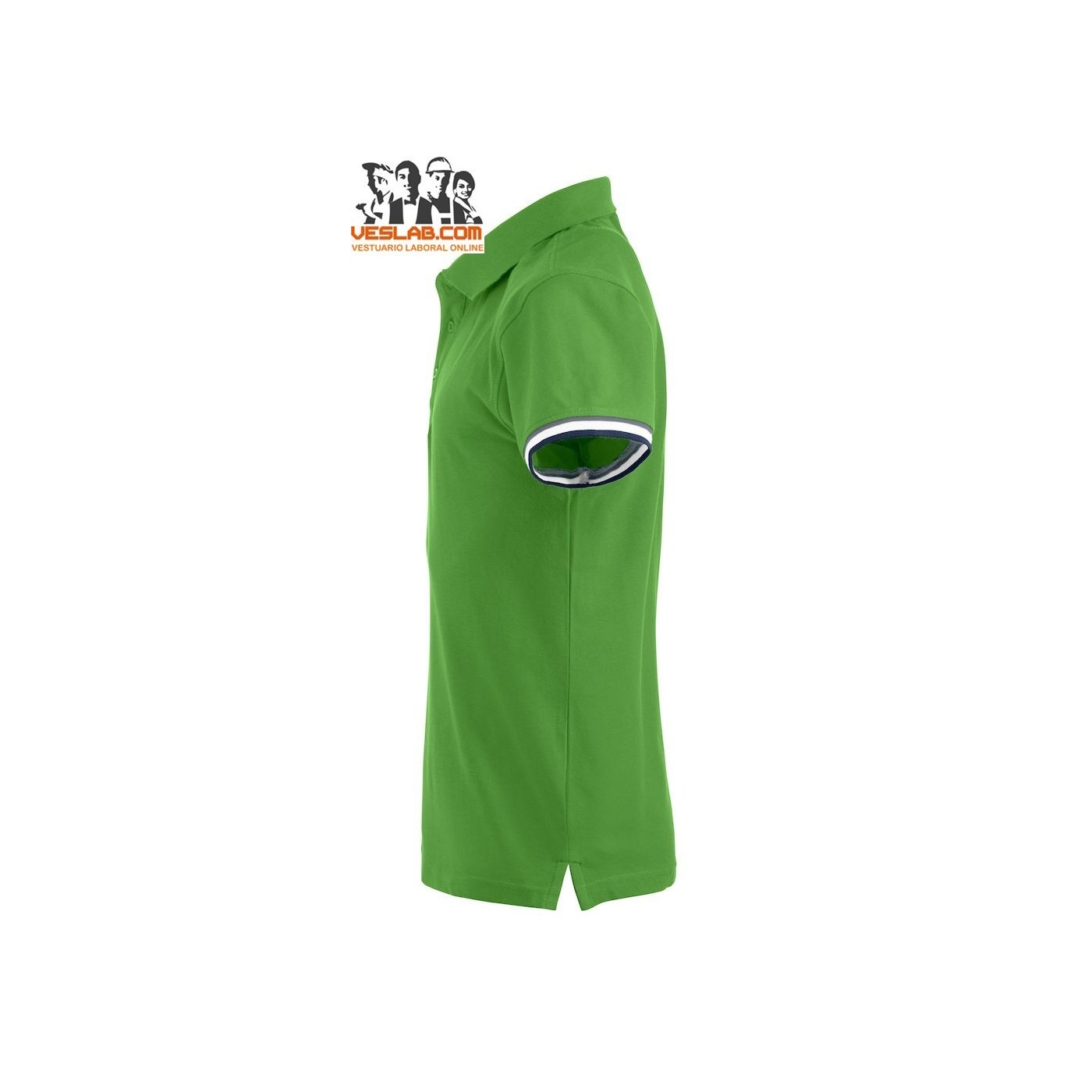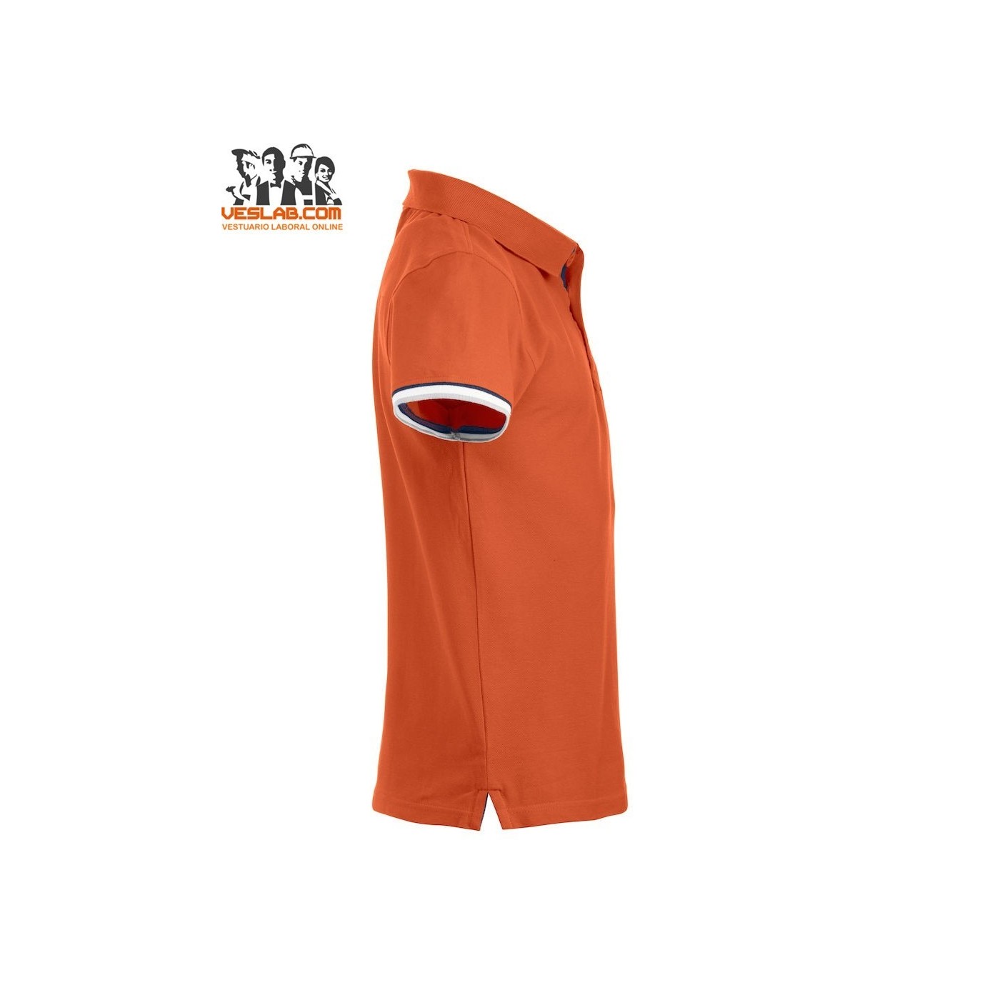 Polo de algodón con contraste a tres colores en el reverso del cuello, tapeta, manga y aberturas laterales.