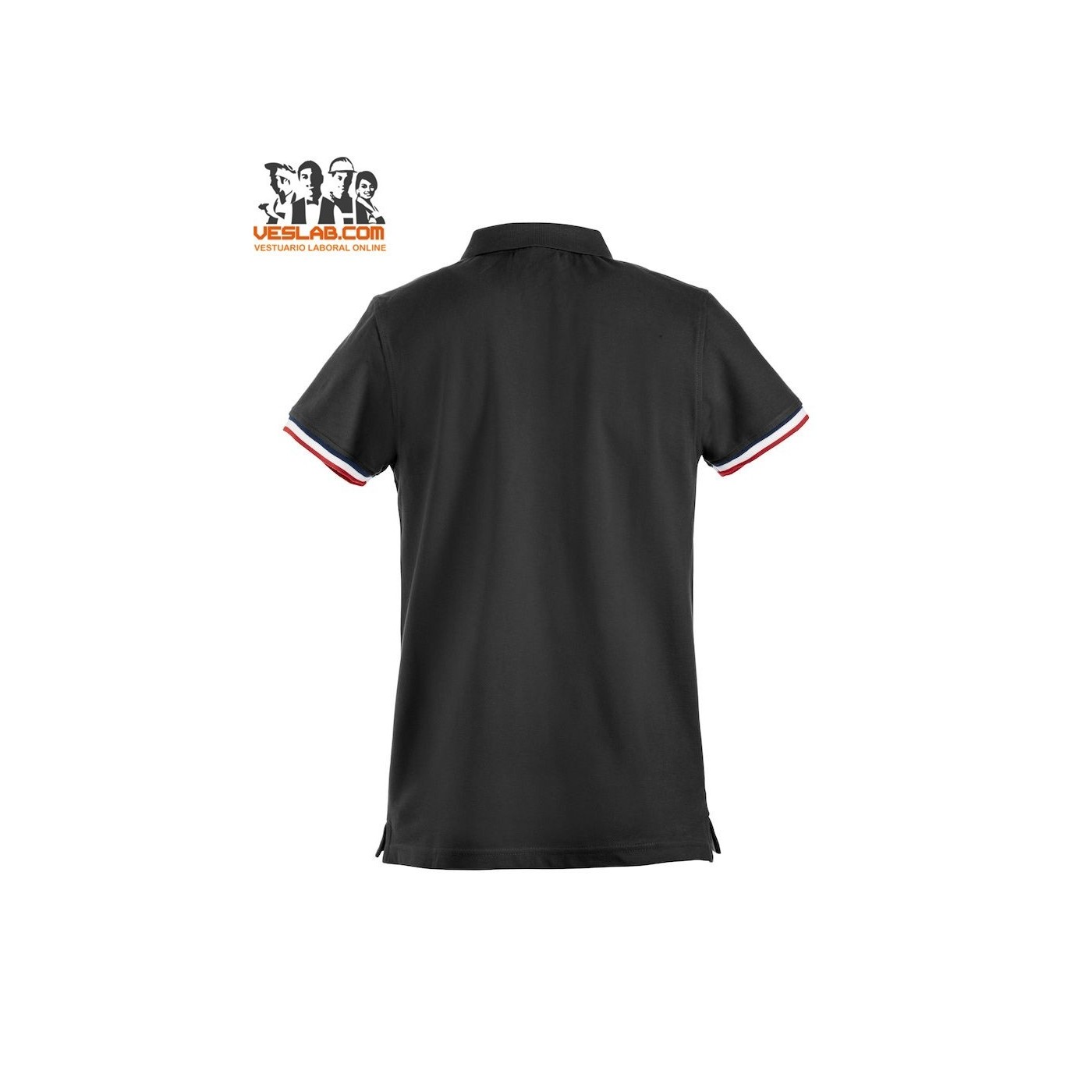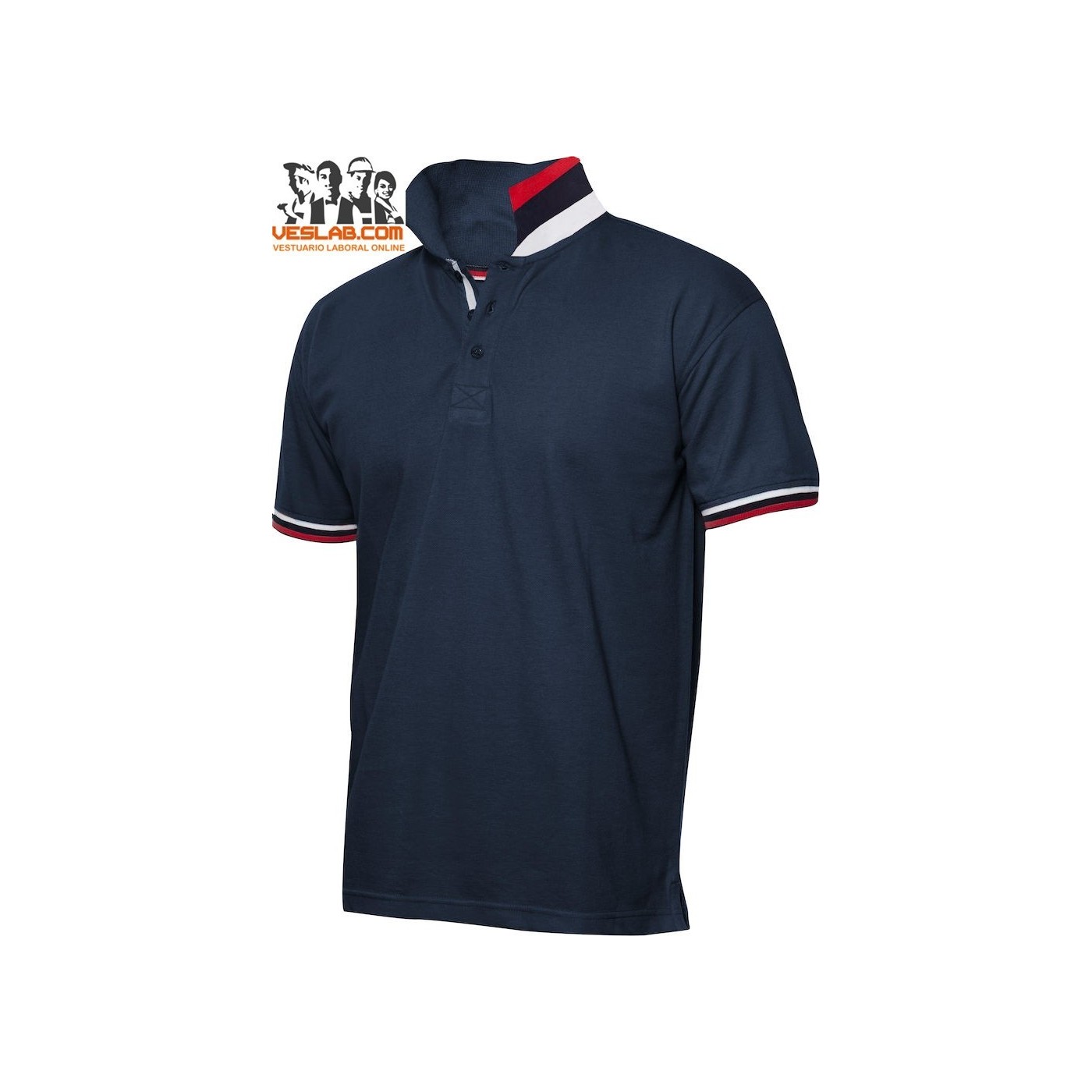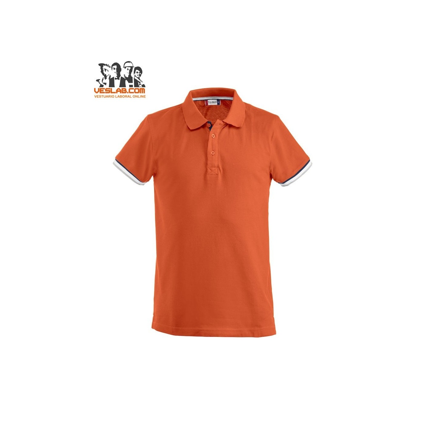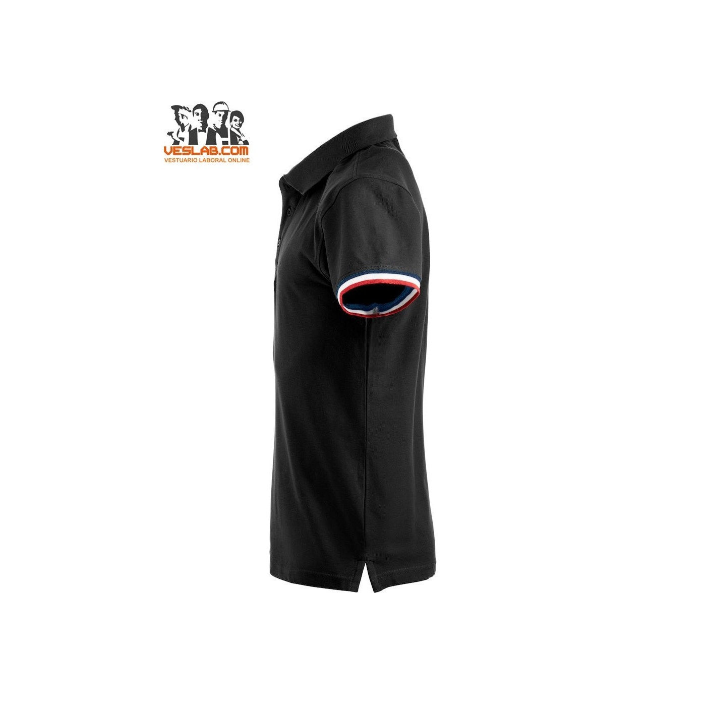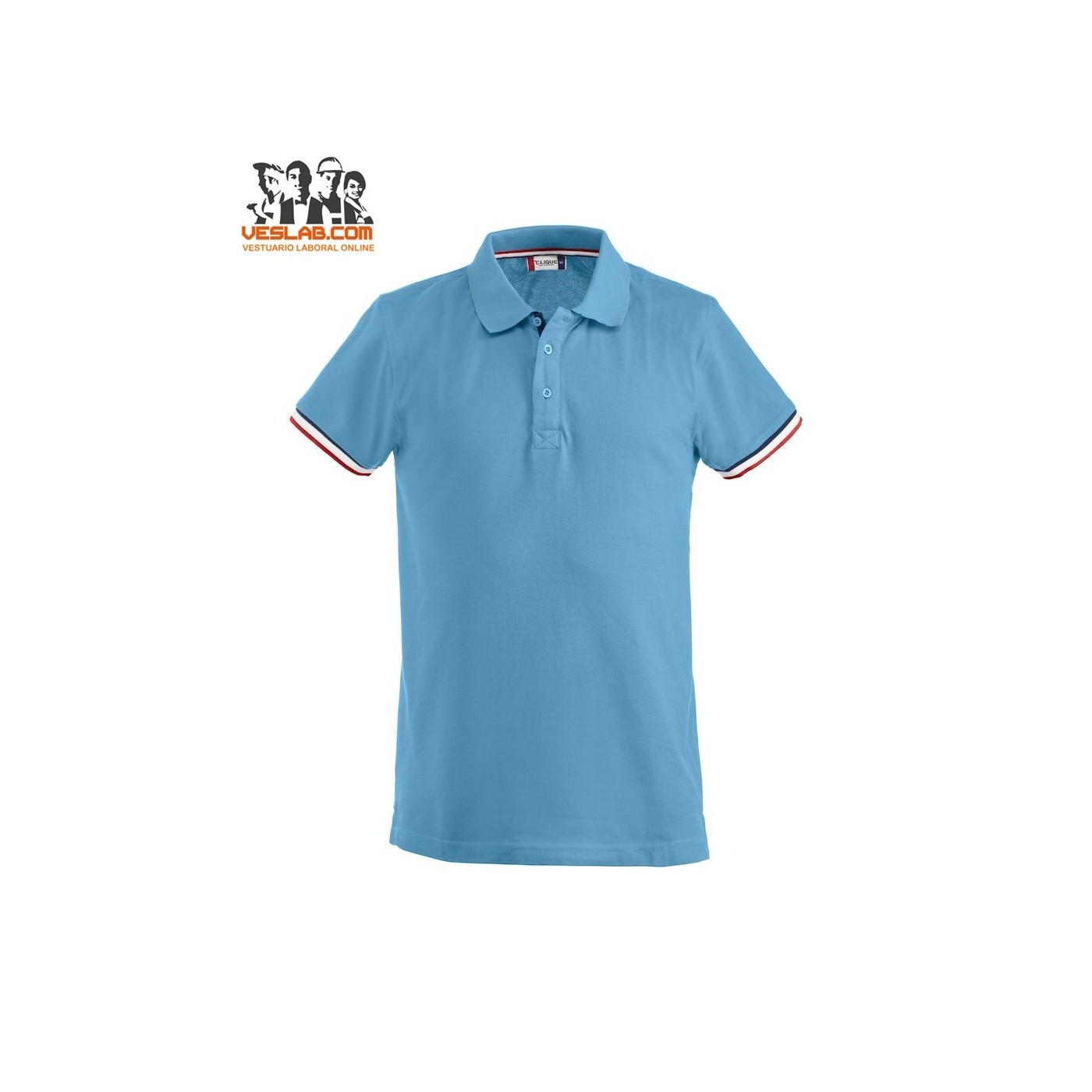Polo de algodón con contraste a tres colores en el reverso del cuello, tapeta, manga y aberturas laterales.