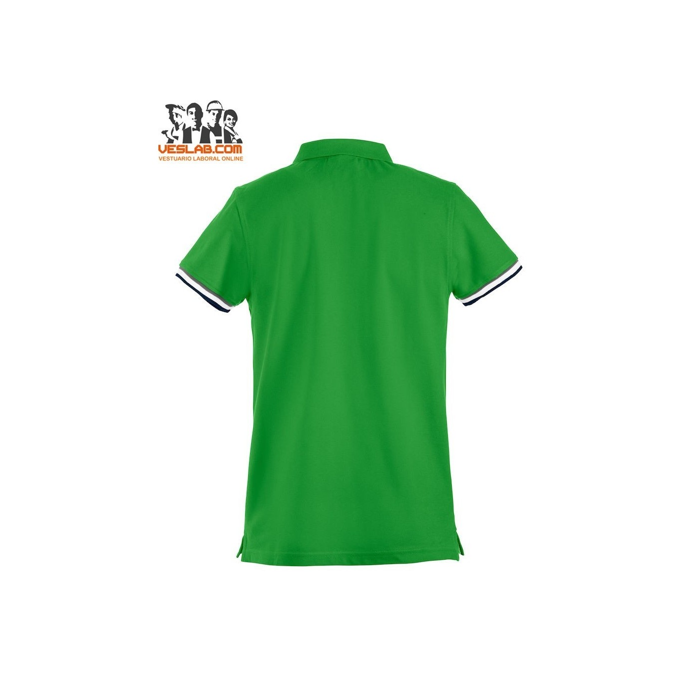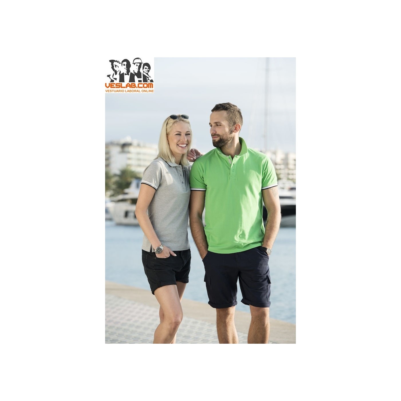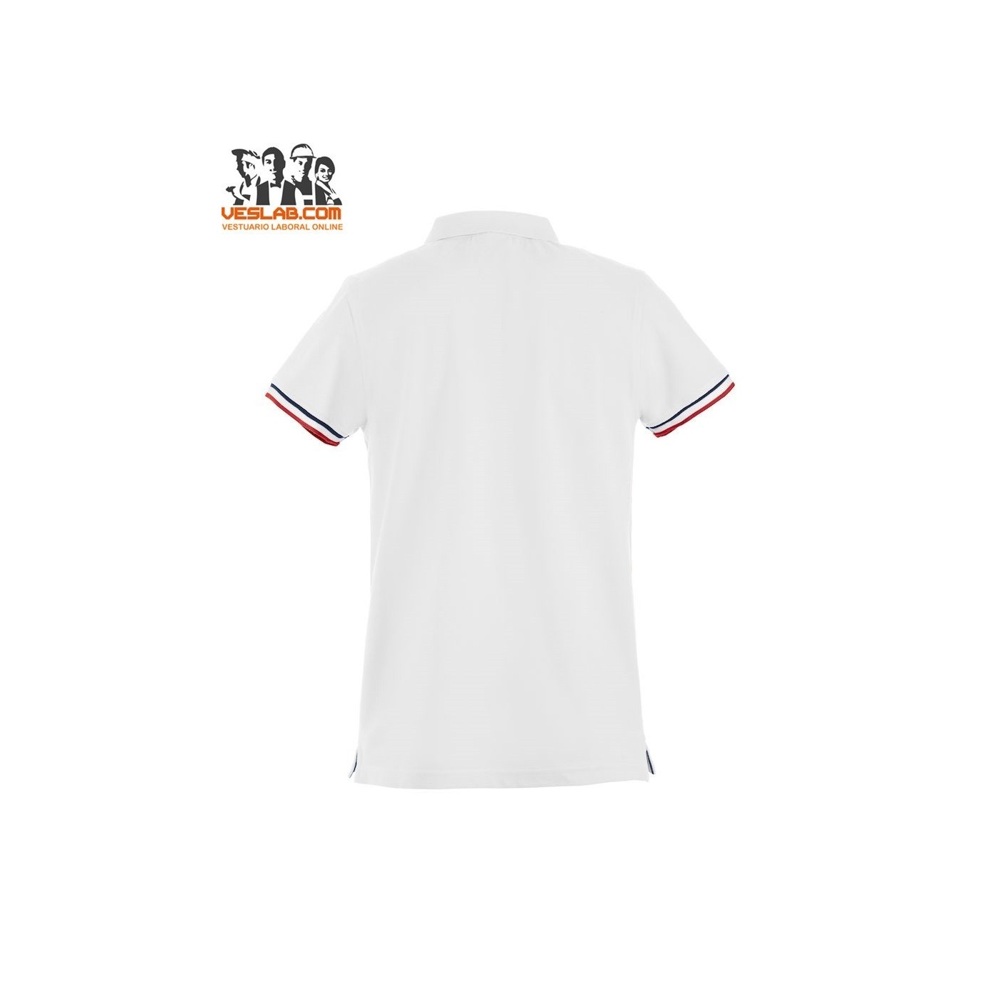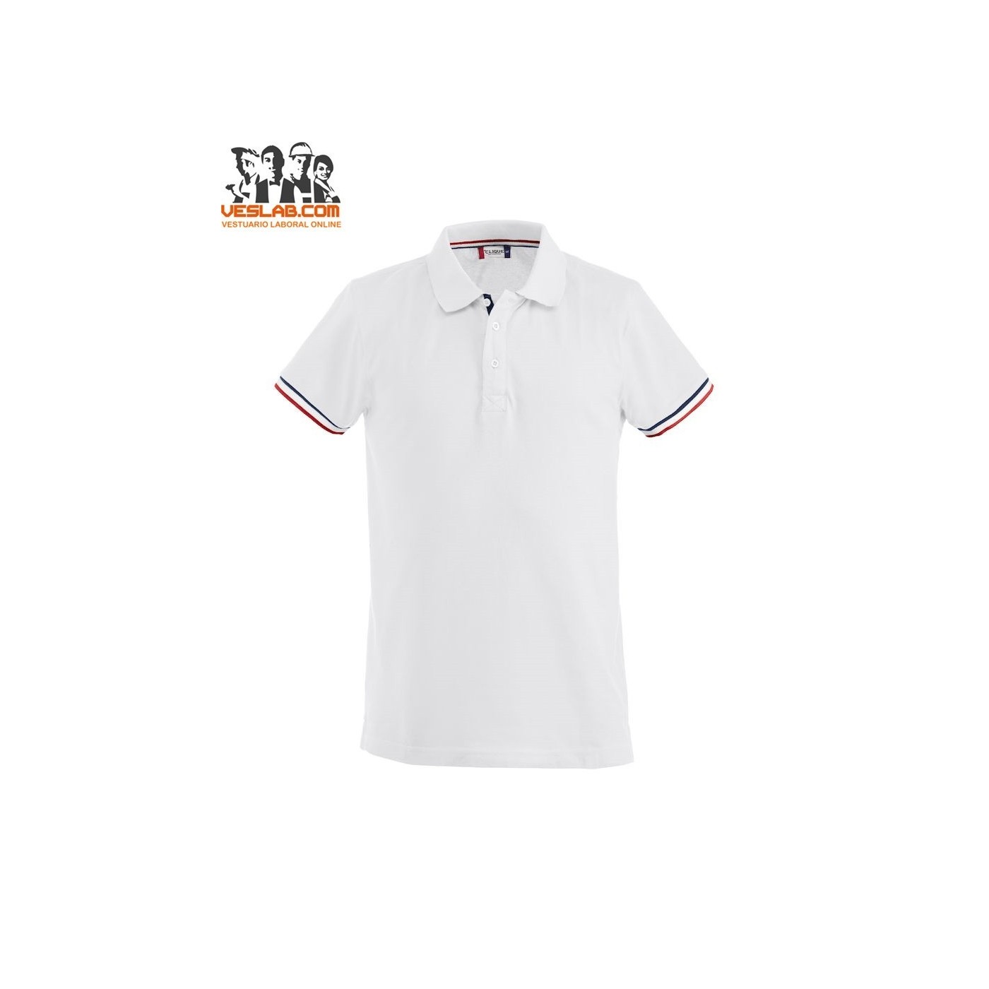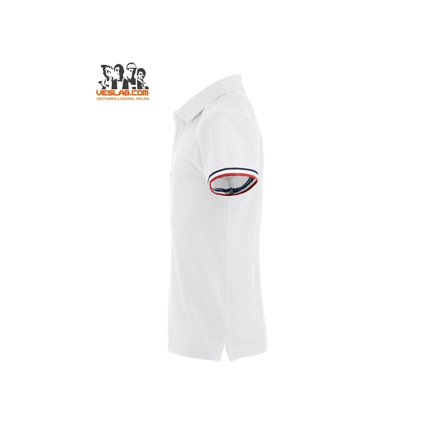 Polo de algodón con contraste a tres colores en el reverso del cuello, tapeta, manga y aberturas laterales.