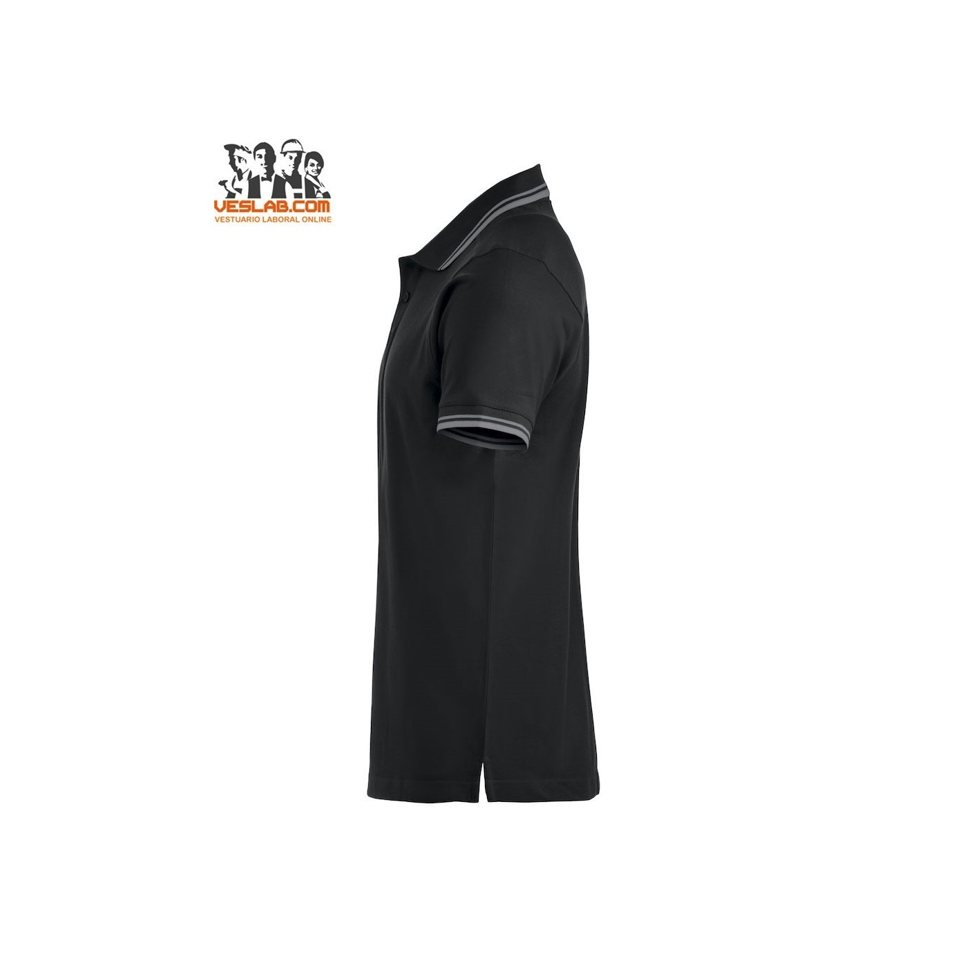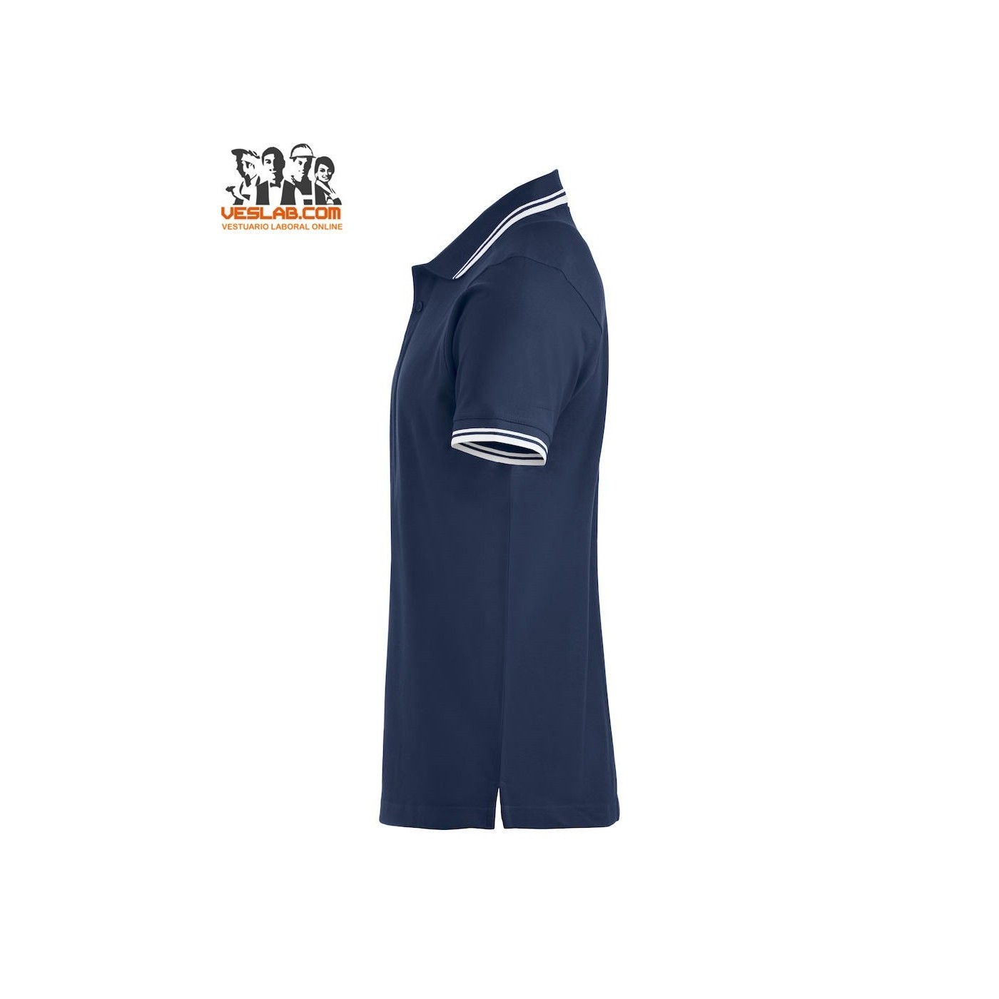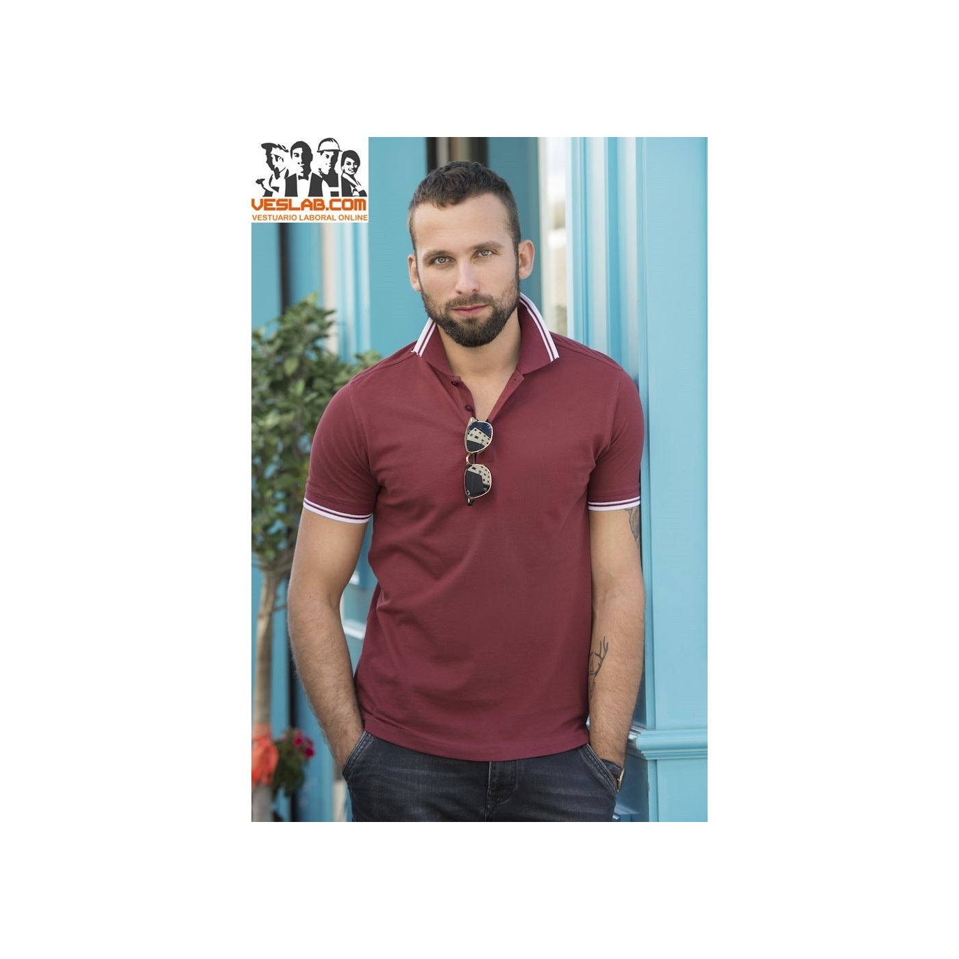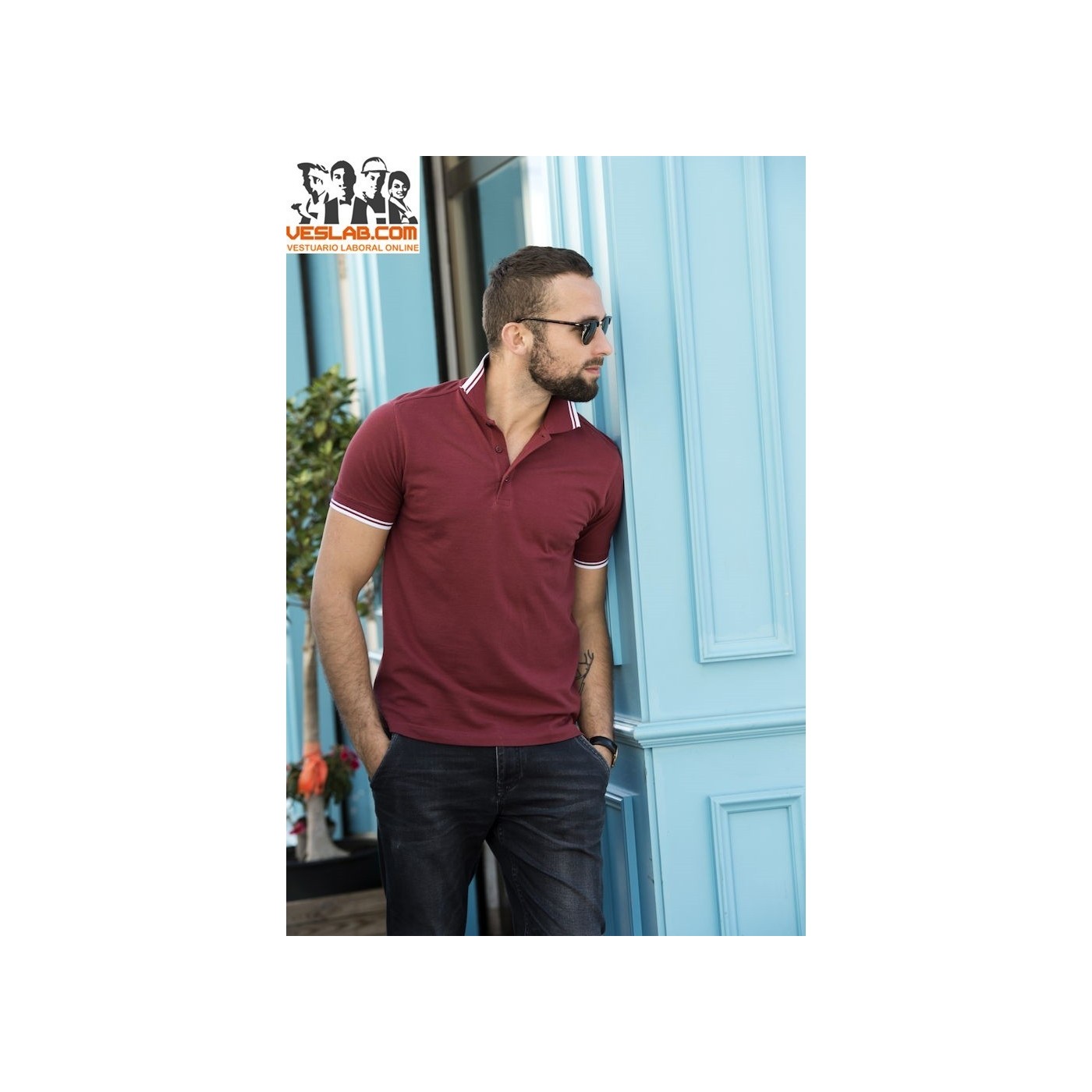 Polo piqué con aberturas laterales, contraste en cuello y mangas.