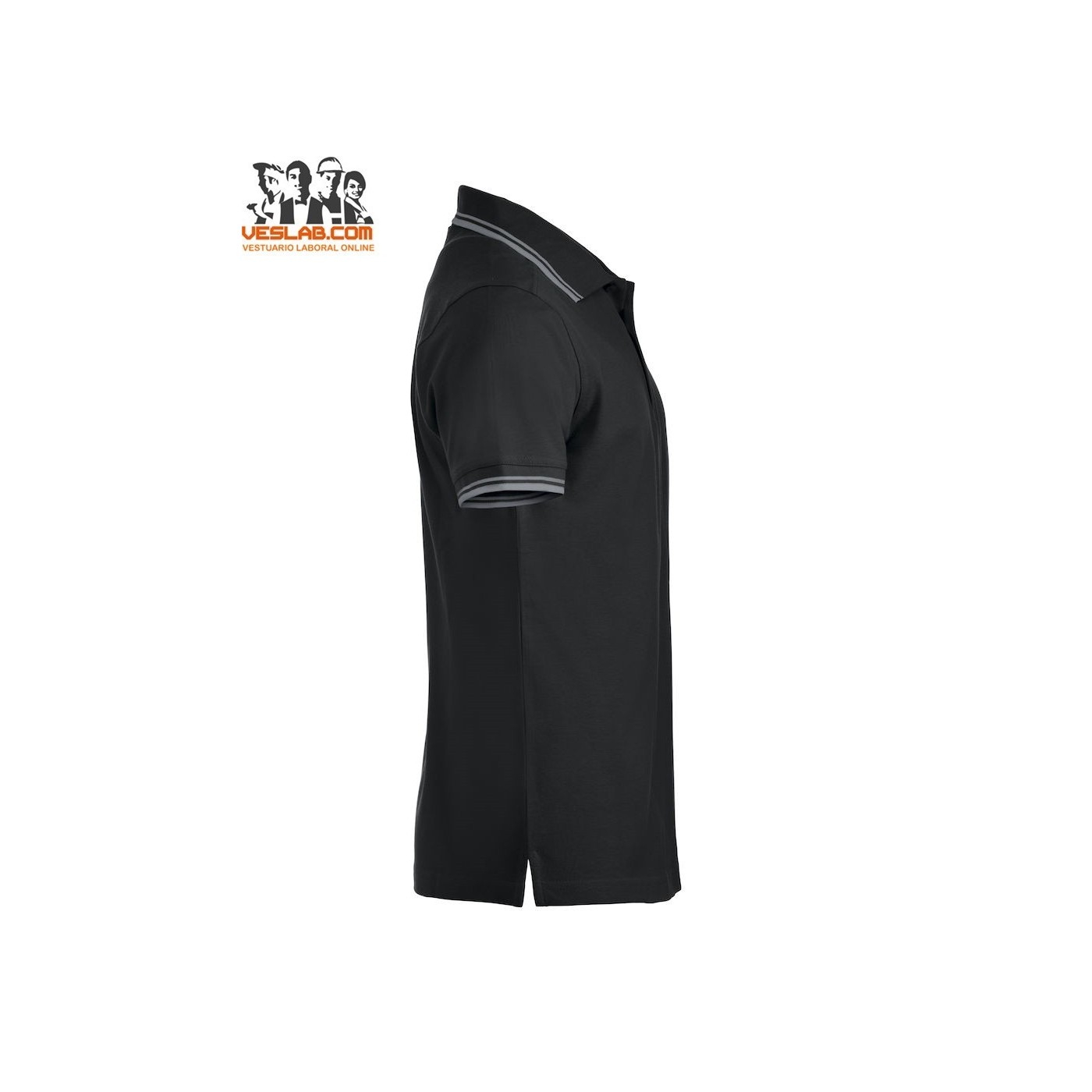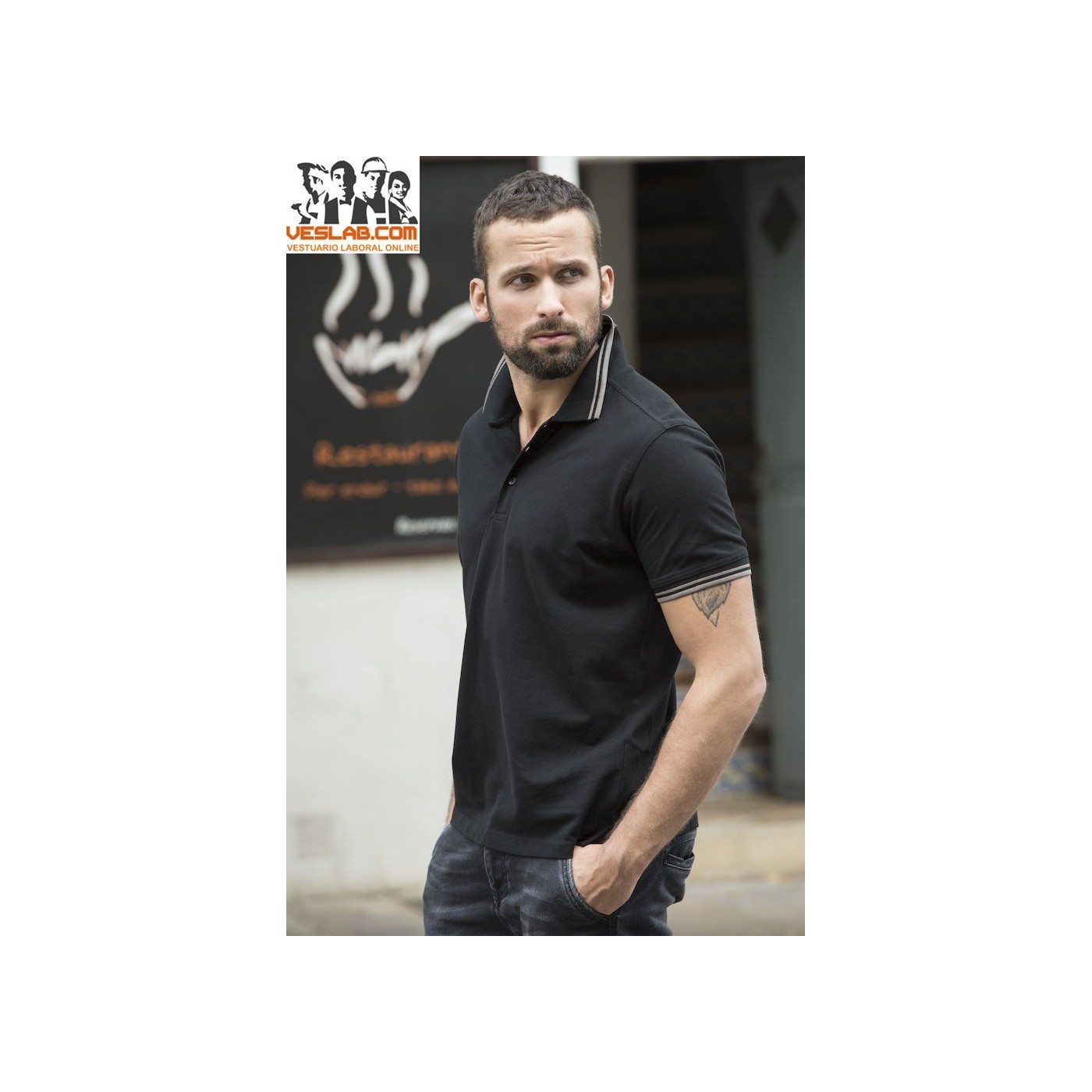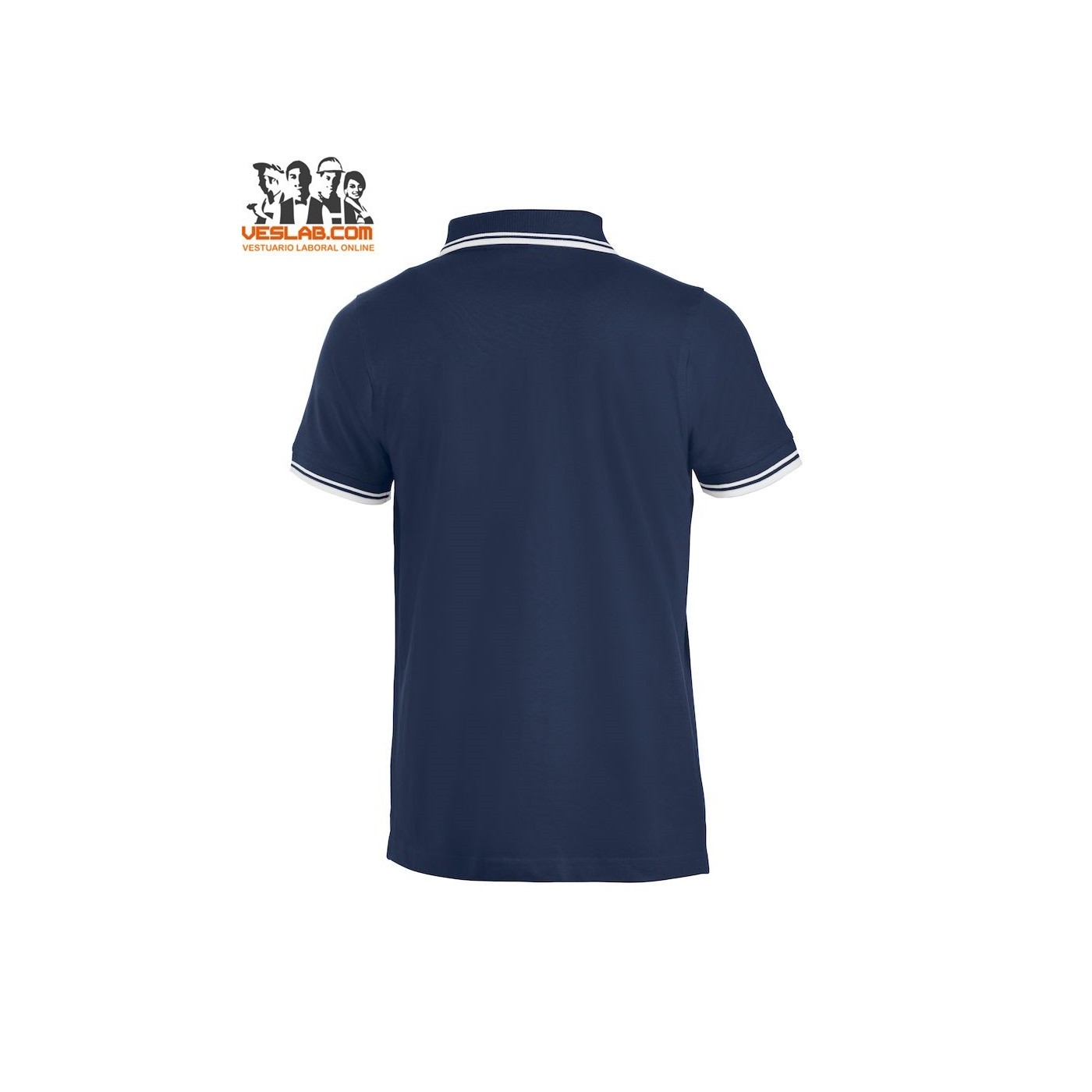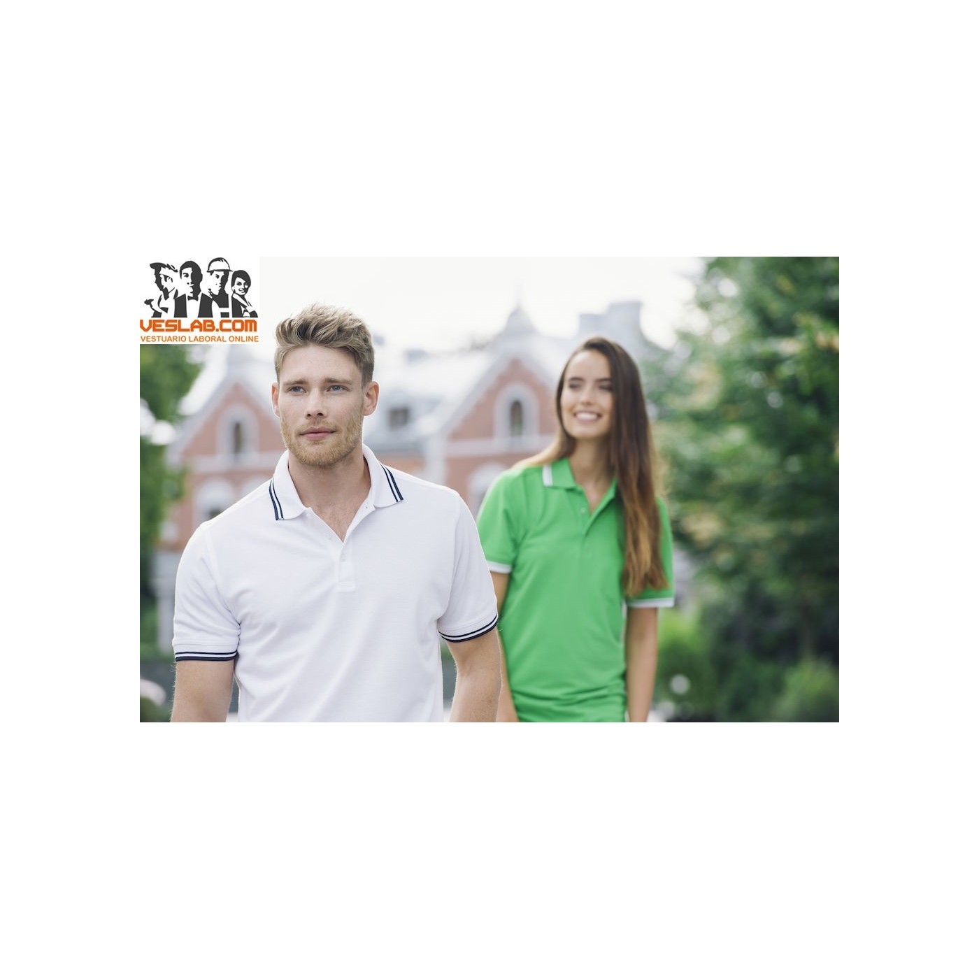 Polo piqué con aberturas laterales, contraste en cuello y mangas.