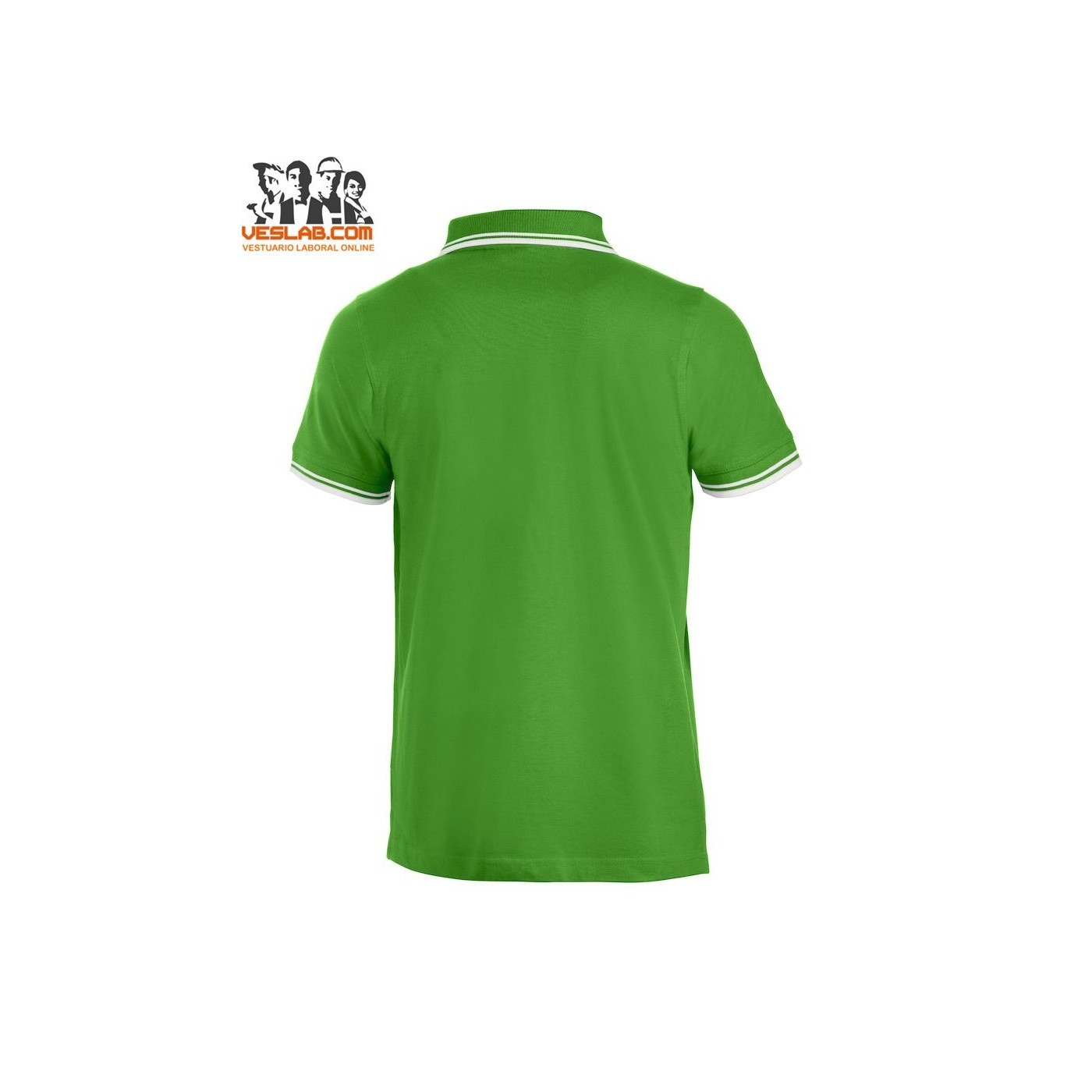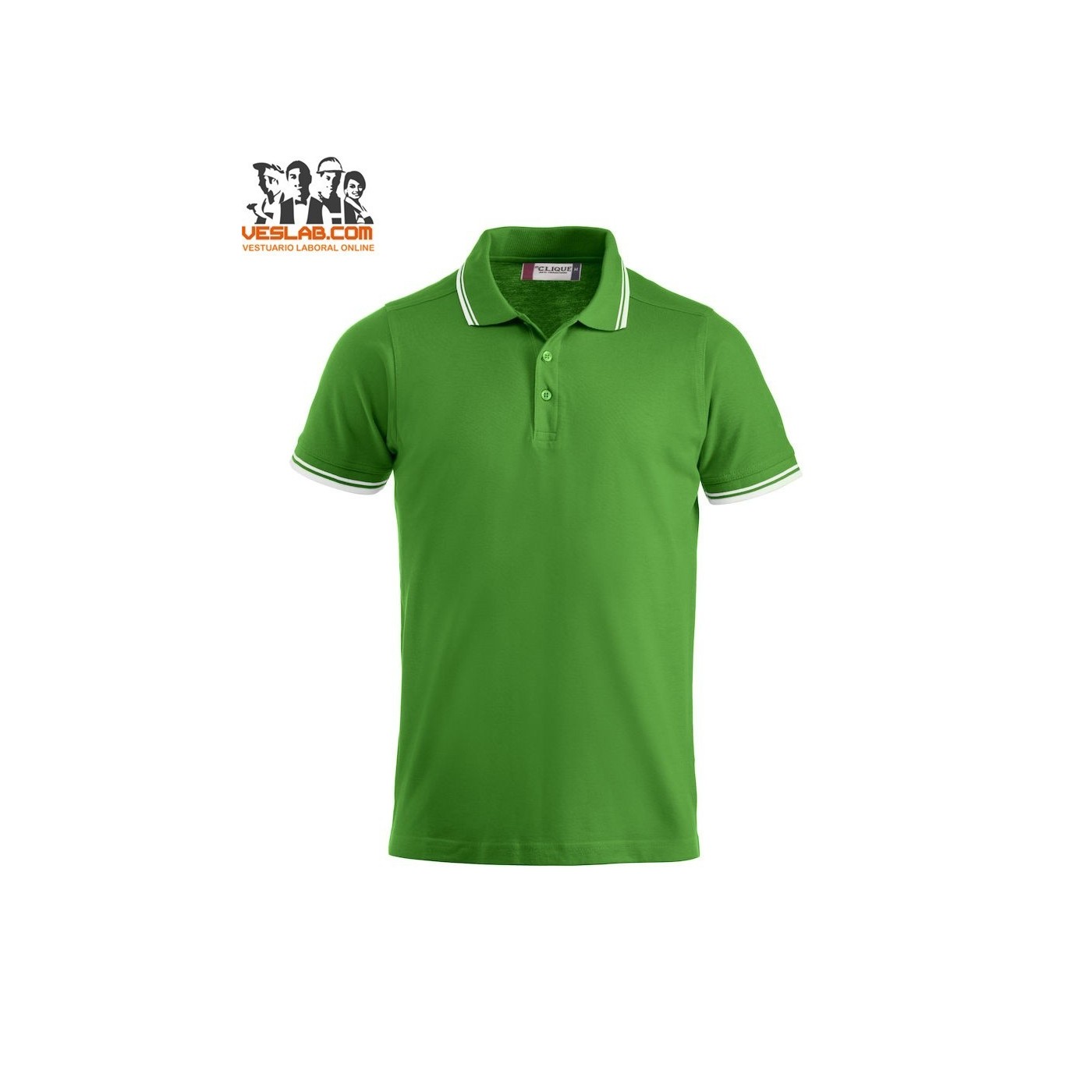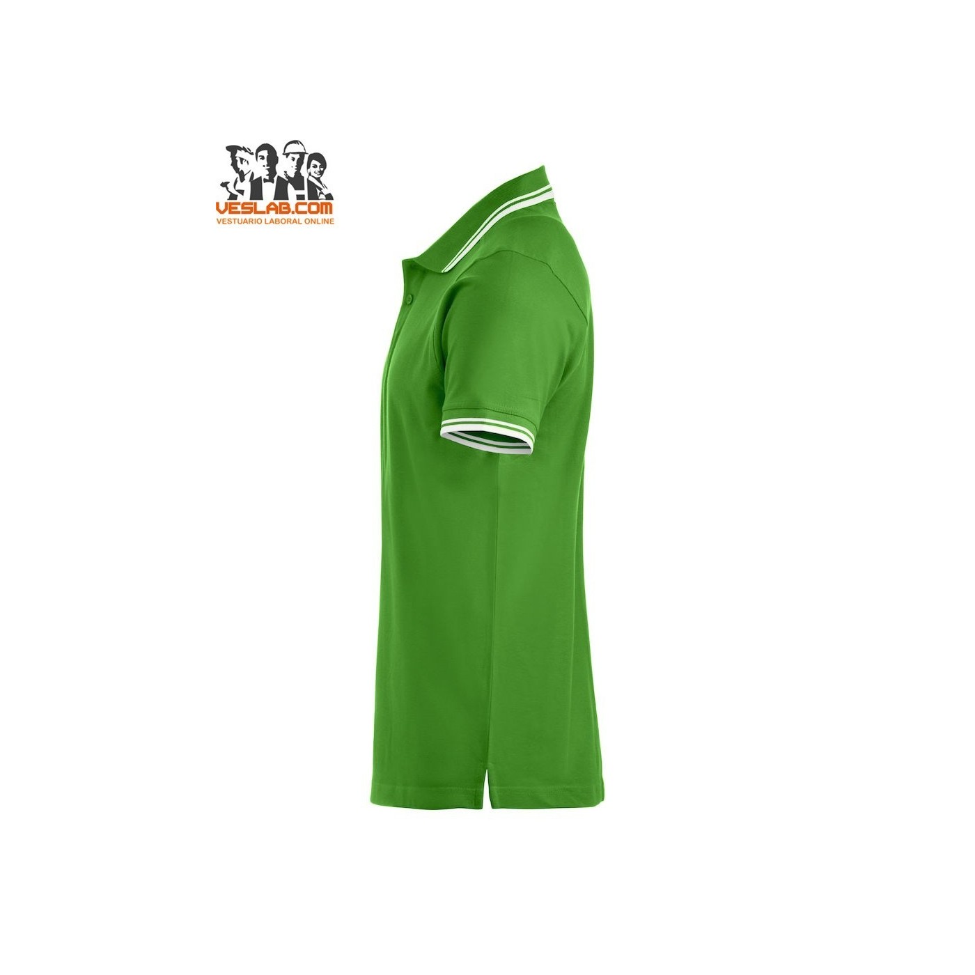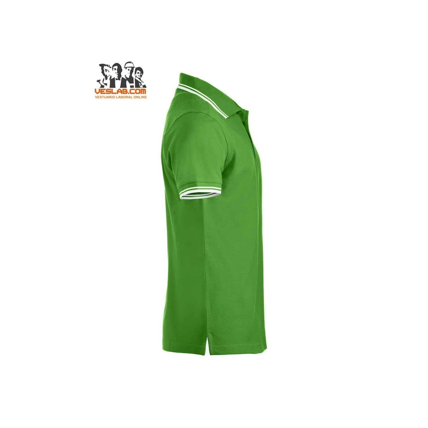 Polo piqué con aberturas laterales, contraste en cuello y mangas.