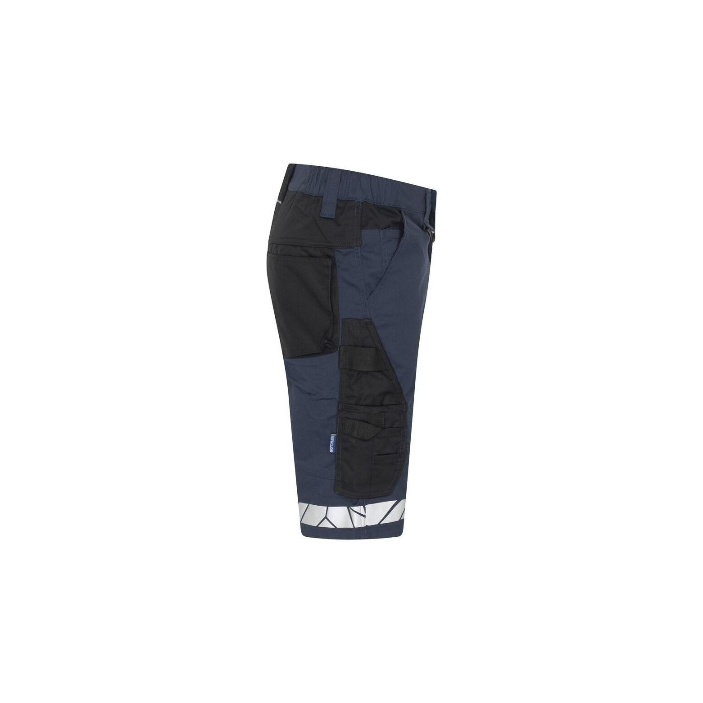 Pantalón corto de trabajo con múltiples bolsillos funcionales, refuerzos Cordura® y tejido elástico para mayor comodidad. Alta visibilidad certificada EN 17353 y resistencia a lavados industriales. Fabricado con materiales reciclados y sostenibles.