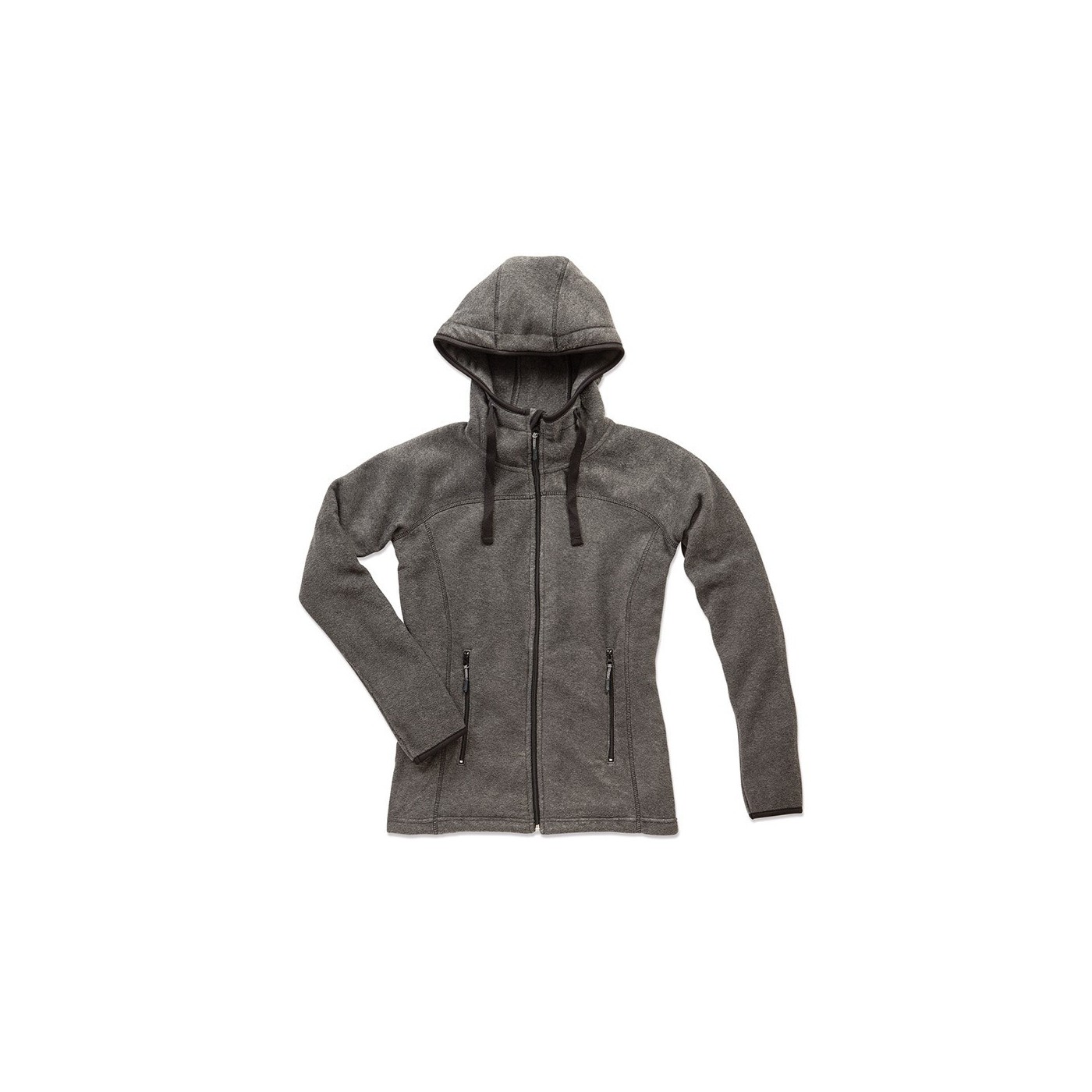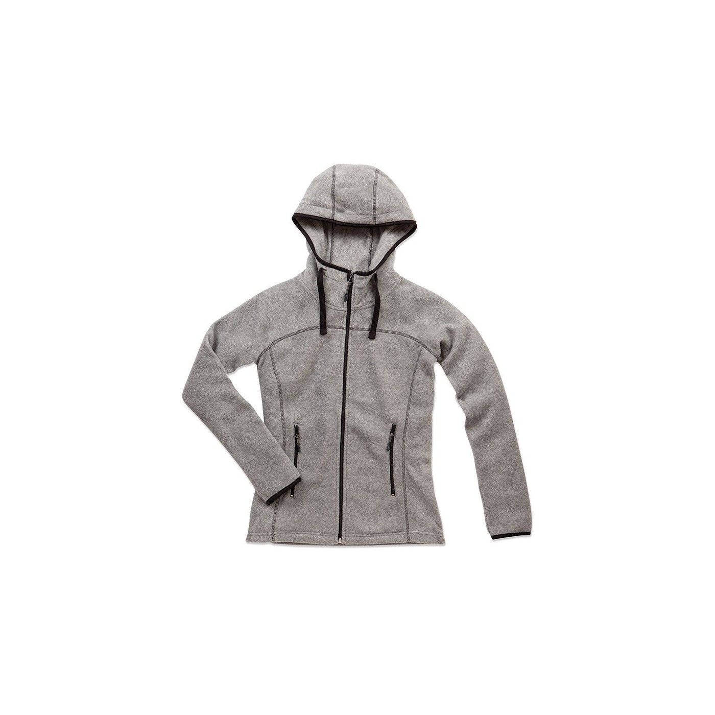 Forro polar "power", forro polar con tratamiento anti-pilling, superficie rugosa en ambos lados, capucha de buzo, cordón ancho en color de contraste (negro), costuras flatlock en color de contraste, 2 bolsillos laterales con cremalleras en color de contraste, cremallera contrastada con solapa inferior, todas las cremalleras con tiradores de plástico grises, ribete de cinta de poliéster en color de contraste en los puños, capucha y dobladillo, mangas raglán con pechera, cinta del cuello contrastada con dibujo en espiga, costuras laterales y paneles laterales (delanteros y traseros), pequeña etiqueta con la talla en la nuca, etiqueta de cuidado en la costura lateral