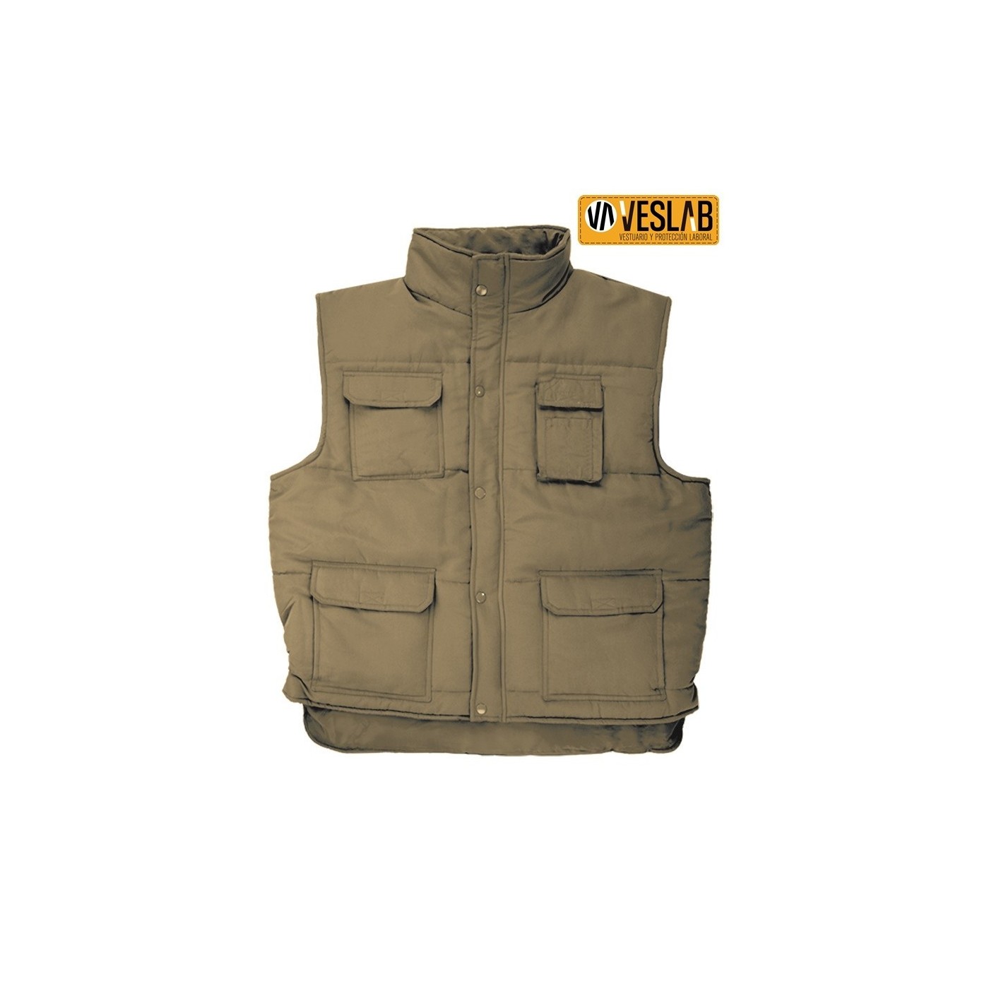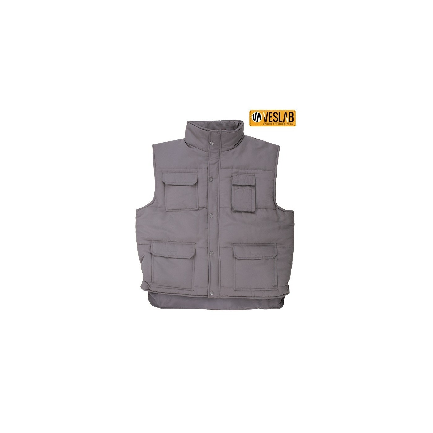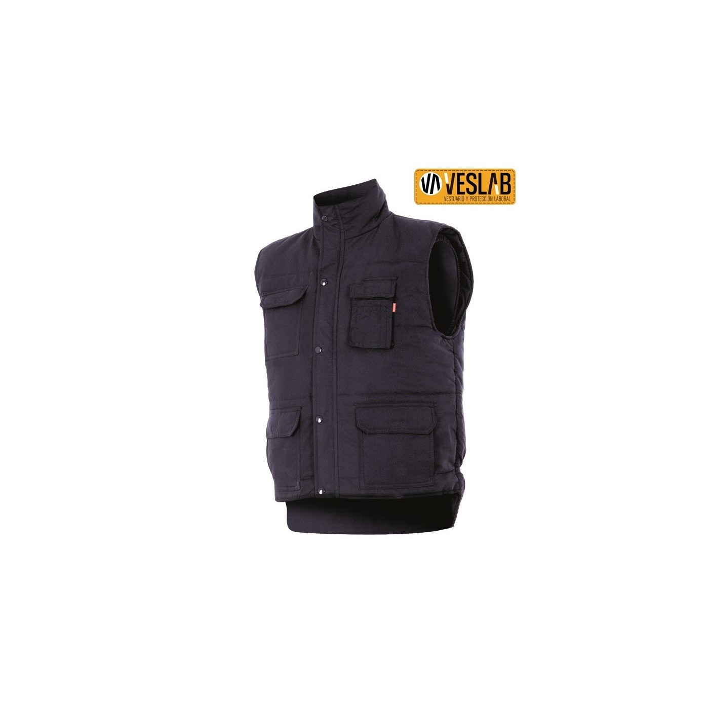 Este Chaleco Velilla se caracteriza por su concepto multibolsillos acolchado con cierre central y cremallera oculta.