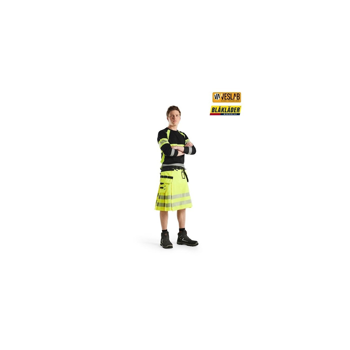 El kilt es un símbolo legendario de Escocia. Blåkläder ha tomado la falda escocesa y ha creado un tipo diferente de ropa funcional para aquellos que quieren hacer una declaración y disfrutar de la comodidad y la ventilación que proporciona la falda escocesa. Este kilt de alta visibilidad tiene bolsillos con revestimiento y refuerzo CORDURA® y bolsillos traseros. Es excepcionalmente cómodo y está hecho de un tejido tipo ripstop muy duradero. Juntos, el tejido de alta visibilidad y el borde reflectante segmentado hacen que el usuario sea más visible. El forro es de camuflaje y hay trabillas para el cinturón. Certificado según EN ISO 20471, Clase 2.