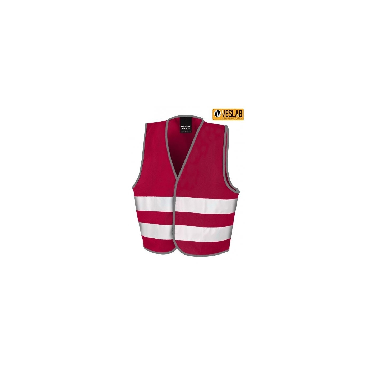Chaleco infantil de alta visibilidad disponible en varios colores y tallas. Con un gramaje muy ligero de 120 g/m², confeccionado completamente en poliéster al 100%. Destaca por sus bandas reflectantes de 50 mm cosidas y ribetes de color gris que aumentan la visibilidad. El cierre frontal tipo velcro facilita la colocación, y su ajuste holgado permite llevarlo cómodamente como prenda superior. Ideal para garantizar la seguridad de los más pequeños en cualquier entorno: uso de bicicletas, escolar, excursiones, medio ambiente, aglomeraciones, etc...