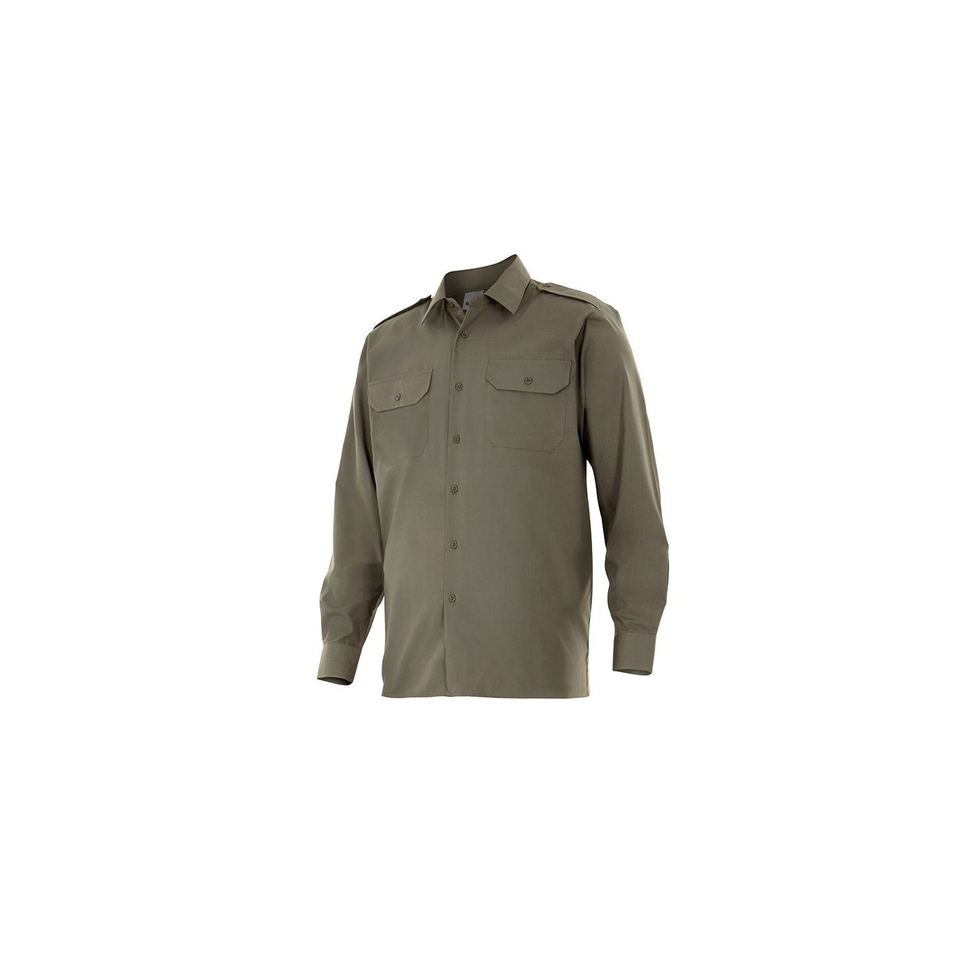 Camisa tipo uniforme de manga larga con dos bolsillos con tapeta.