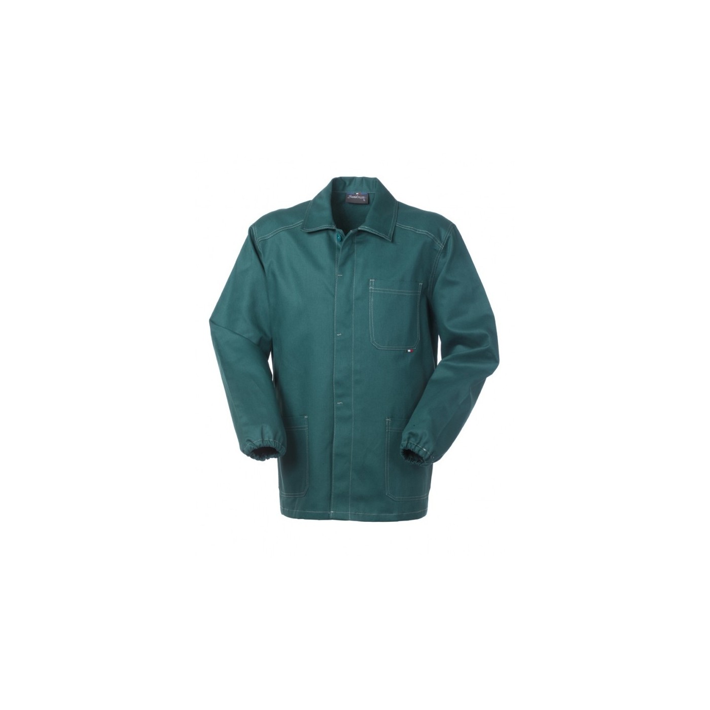 Cierre frontal con botones cubiertos, 1 bolsillo en el pecho y 2 bolsillos inferiores, muñecas con costuras de color elástico y contrastante.
