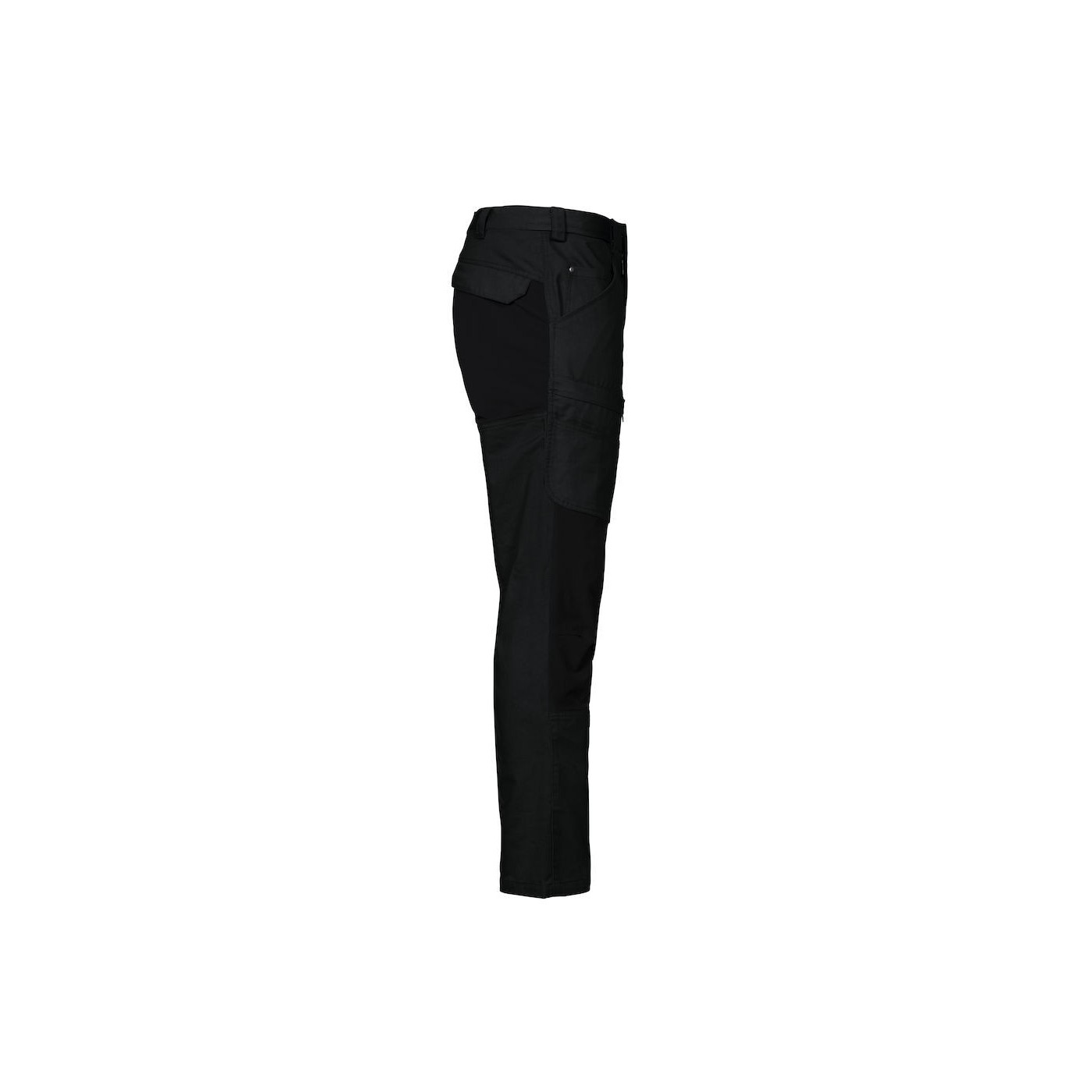 Pantalón de trabajo con gran flexibilidad. Tejido elástico en la parte trasera, entrepierna y rodillas. Bolsillo con cremallera en piernas. Bolsillos traseros con solapa. Accesorio para Inbags.