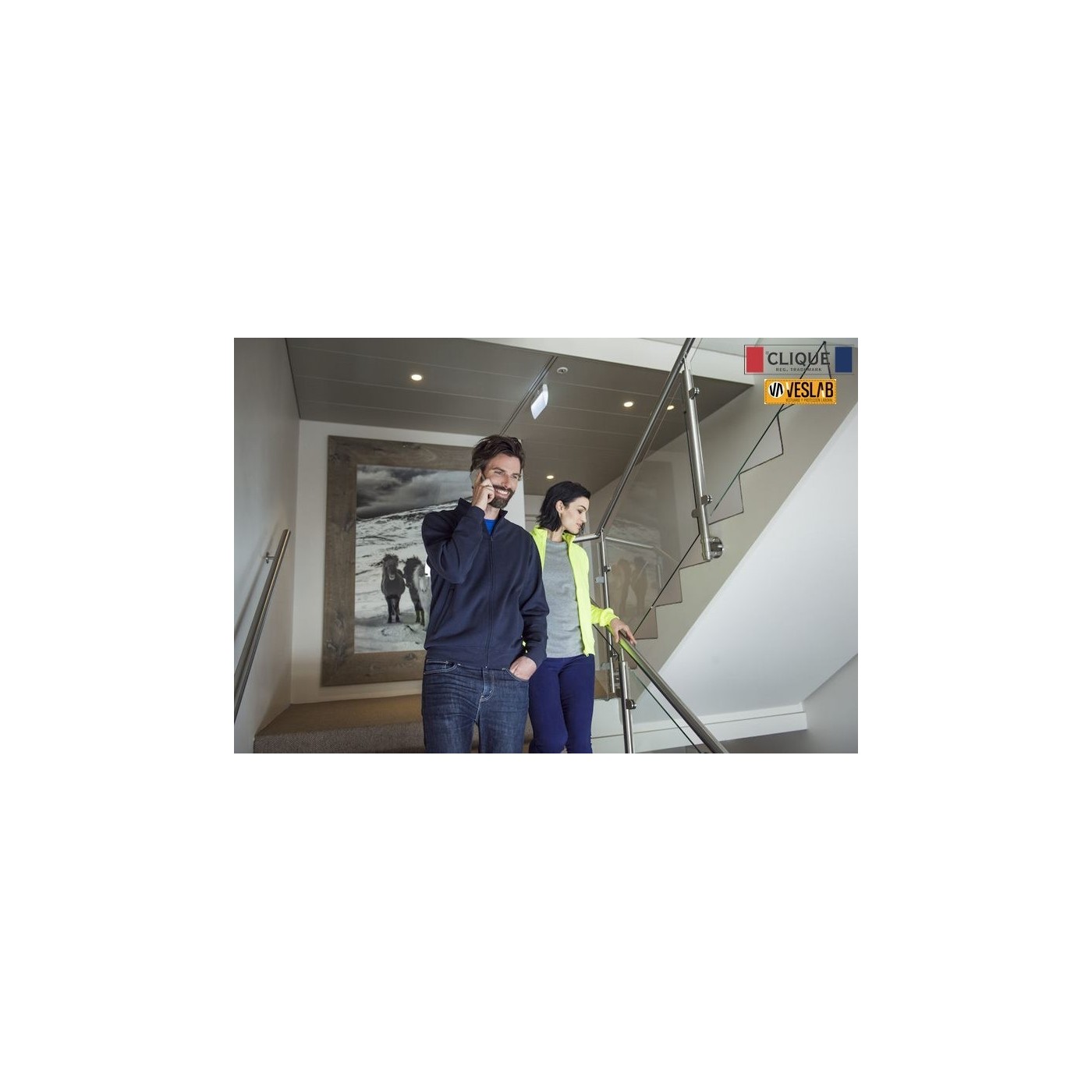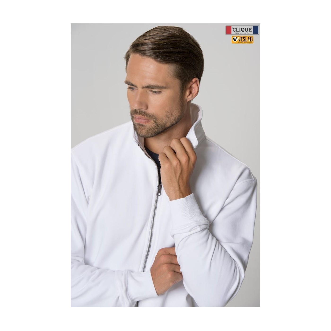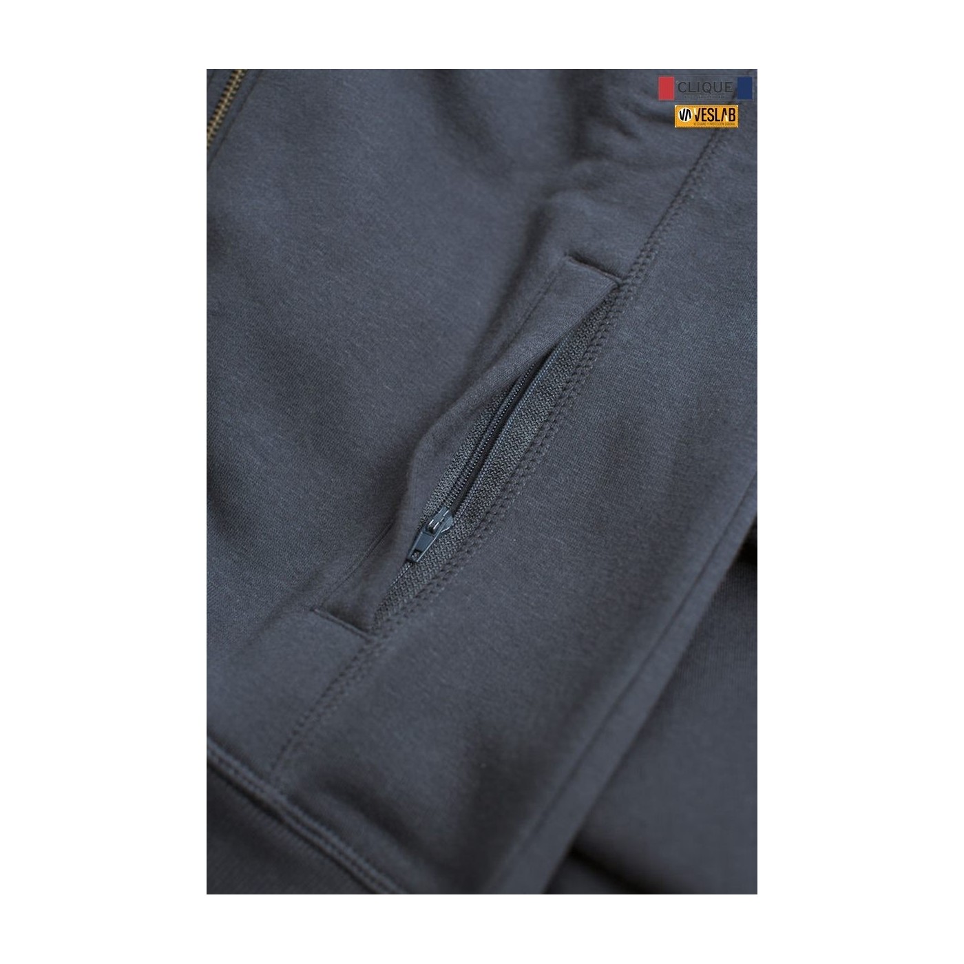 Sudadera cárdigan con práctica solución para el móvil y bolsillos laterales con cremallera. Canalé elástico 2x2 en mangas y cintura. Costuras a tono.
