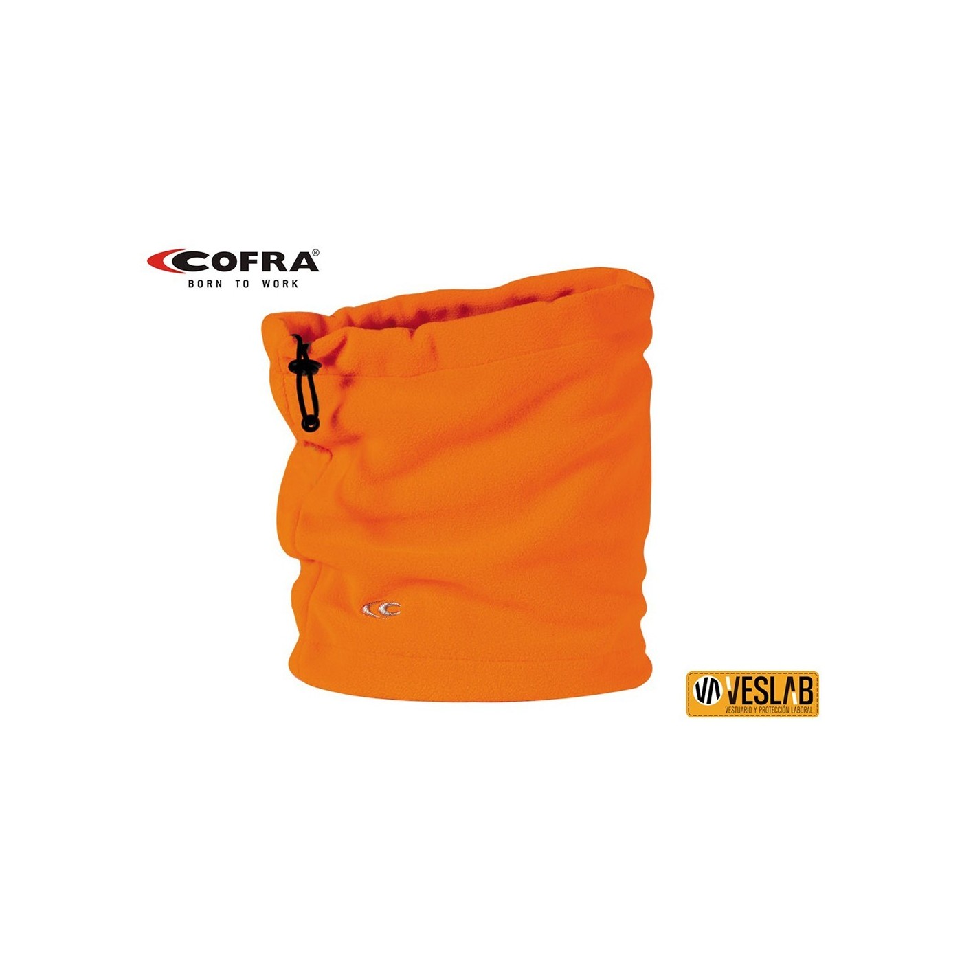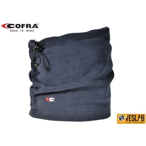 Braga forro polar calentador de cuello con cierre con cordón, que debido a su polivalencia puede usarse como gorro.