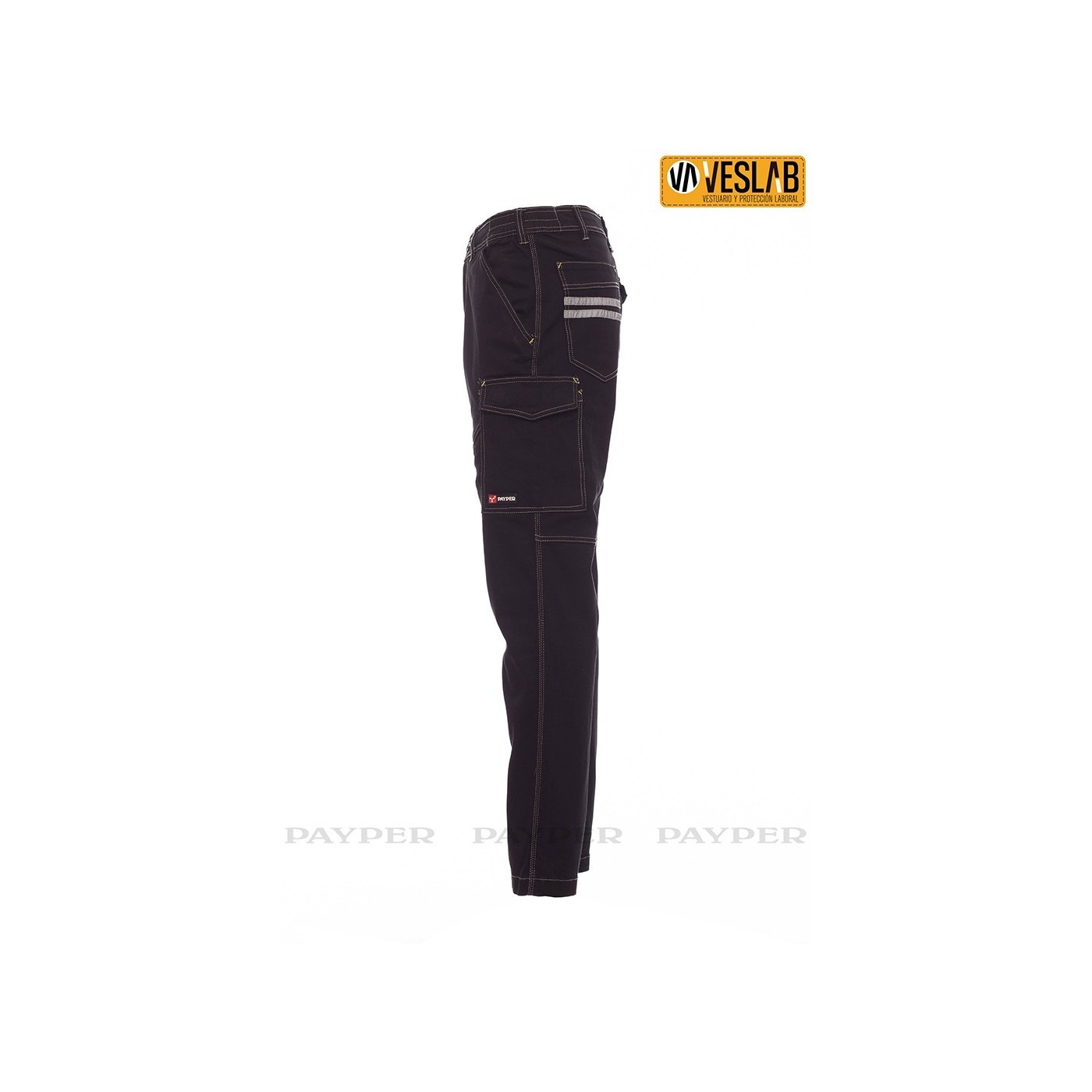 Dispone de elásticos laterales y trabillas en la cintura, cierre con cremallera y botón de plástico, dos bolsillos delanteros de corte clásico, bolsillo lateral con LOCK SYSTEM, soporte para metro. Dos bolsillos traseros, uno con tapeta y velcro y otro abierto, costuras de la entrepierna e interior de la pierna con triple aguja. Aplicaciones y pespuntes de contraste, bandas reflectantes en el bolsillo trasero, costura triple.