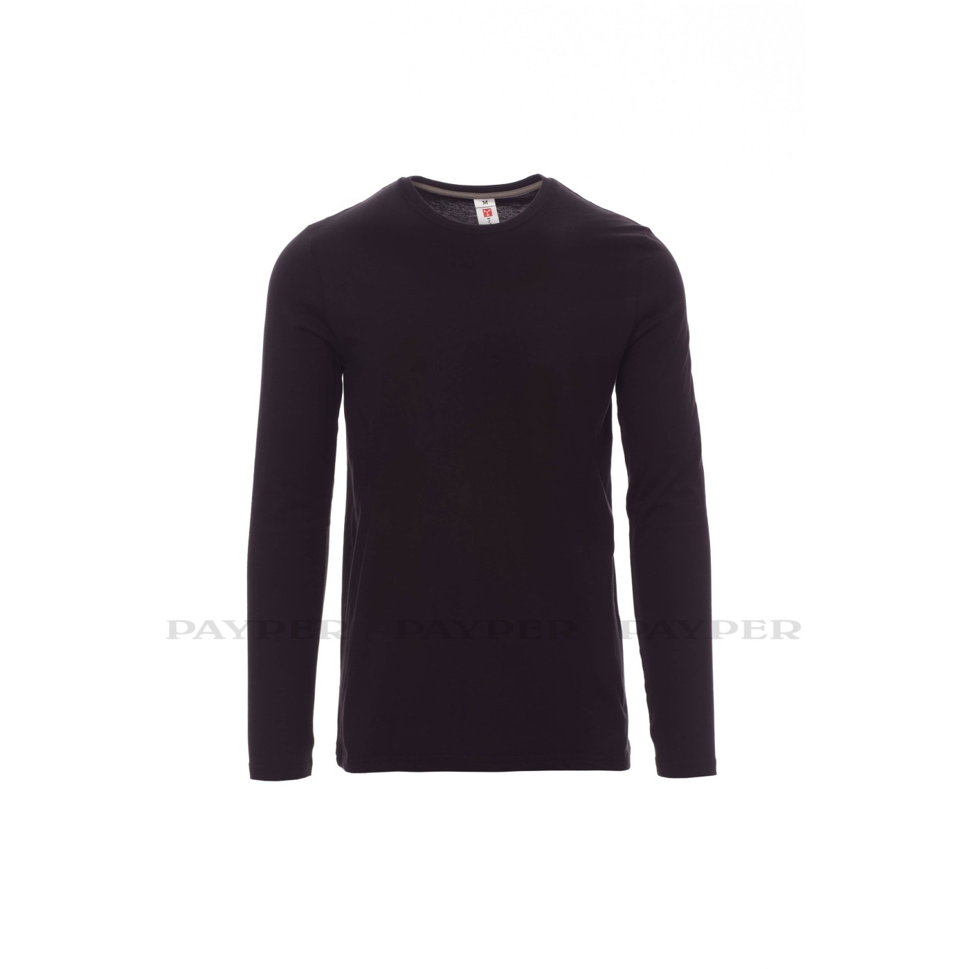 Camiseta de manga larga y cuello redondo para hombre, con banda elástica en cuello de elastano de 1,5 cm con pespunte superior en la parte delantera.