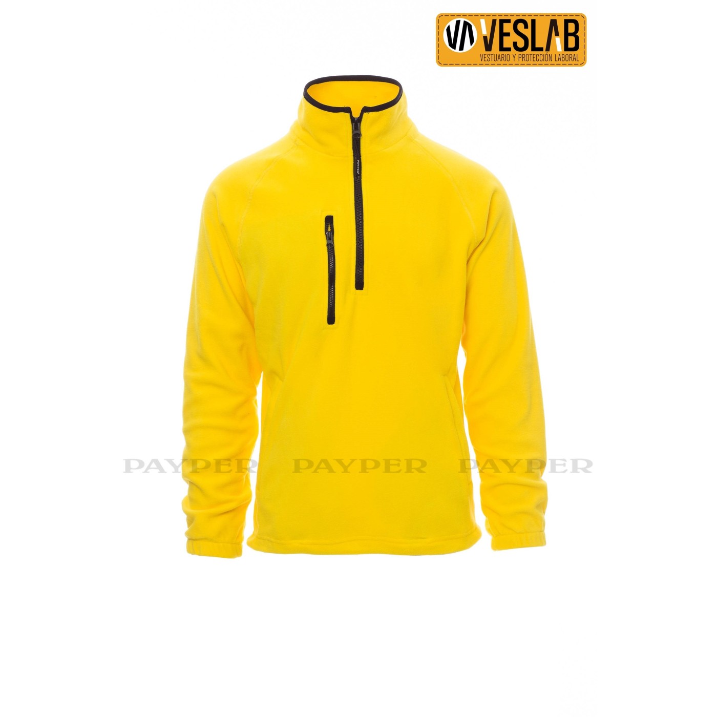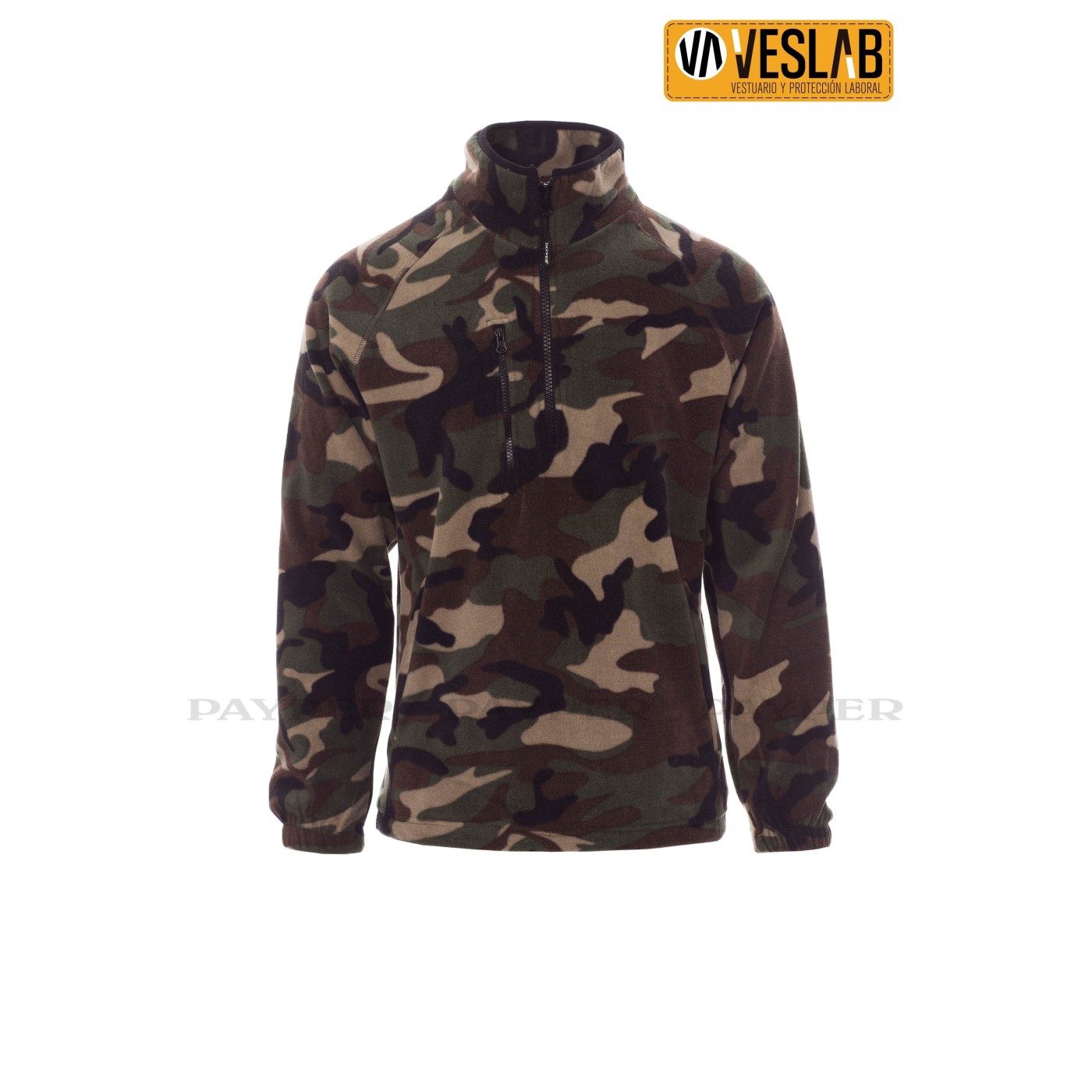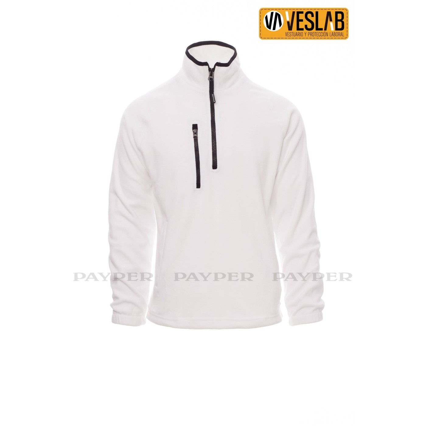 Se trata de un funcional forro polar, con media cremallera de 8 mm de plástico negra, mangas ranglán, cordón ajustable en la cintura y puños elásticos.