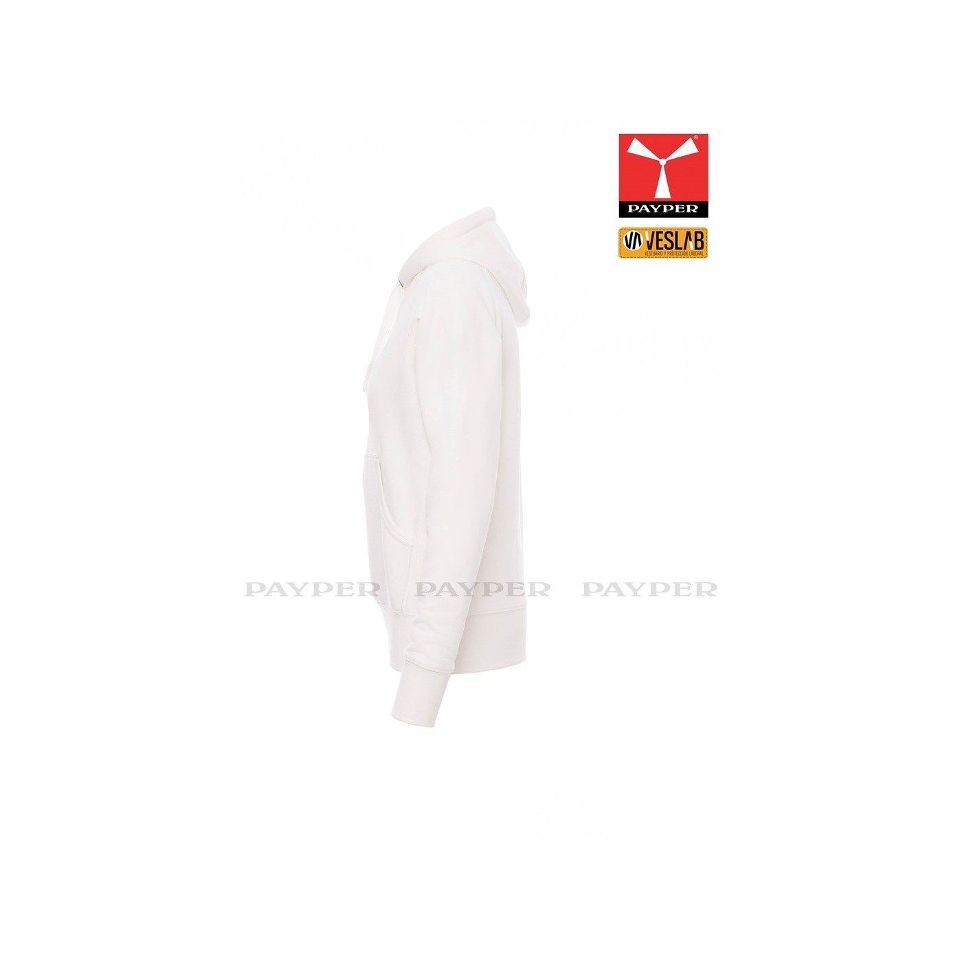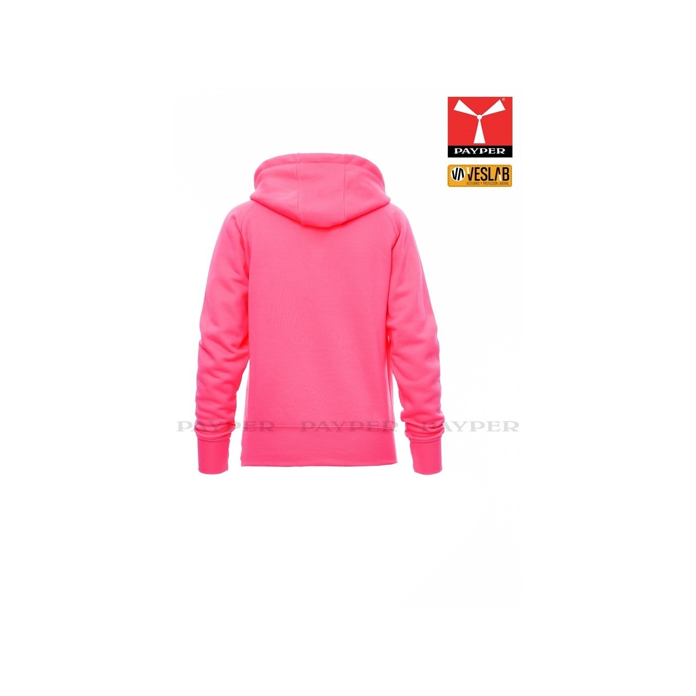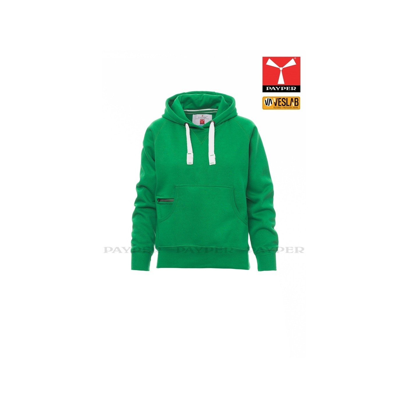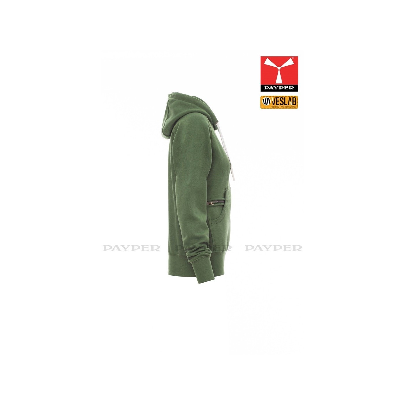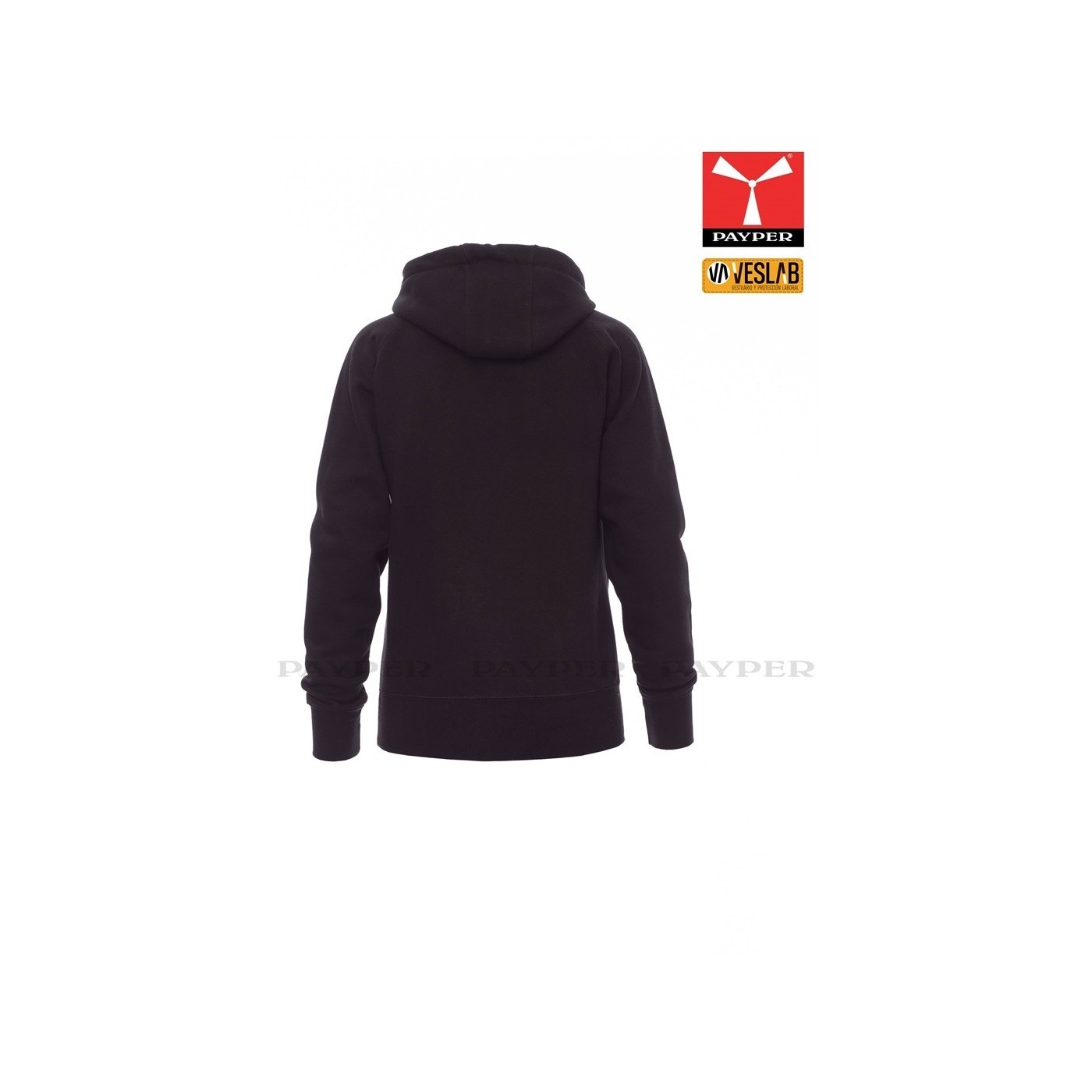 Se trata de una moderna sudadera entallada para mujer con capucha con doble costura y un ancho cordón blanco con puntadas y aros metálicos de contraste. Muy recomendable para quien quiera dar una imagen corporativa moderna y deportiva.