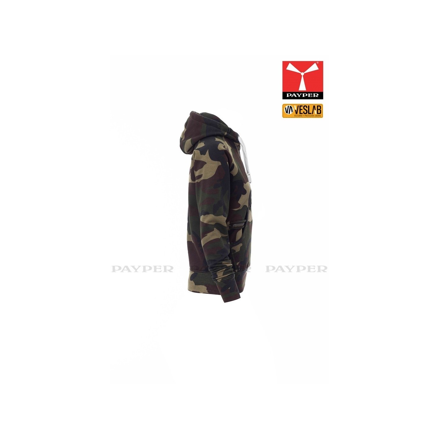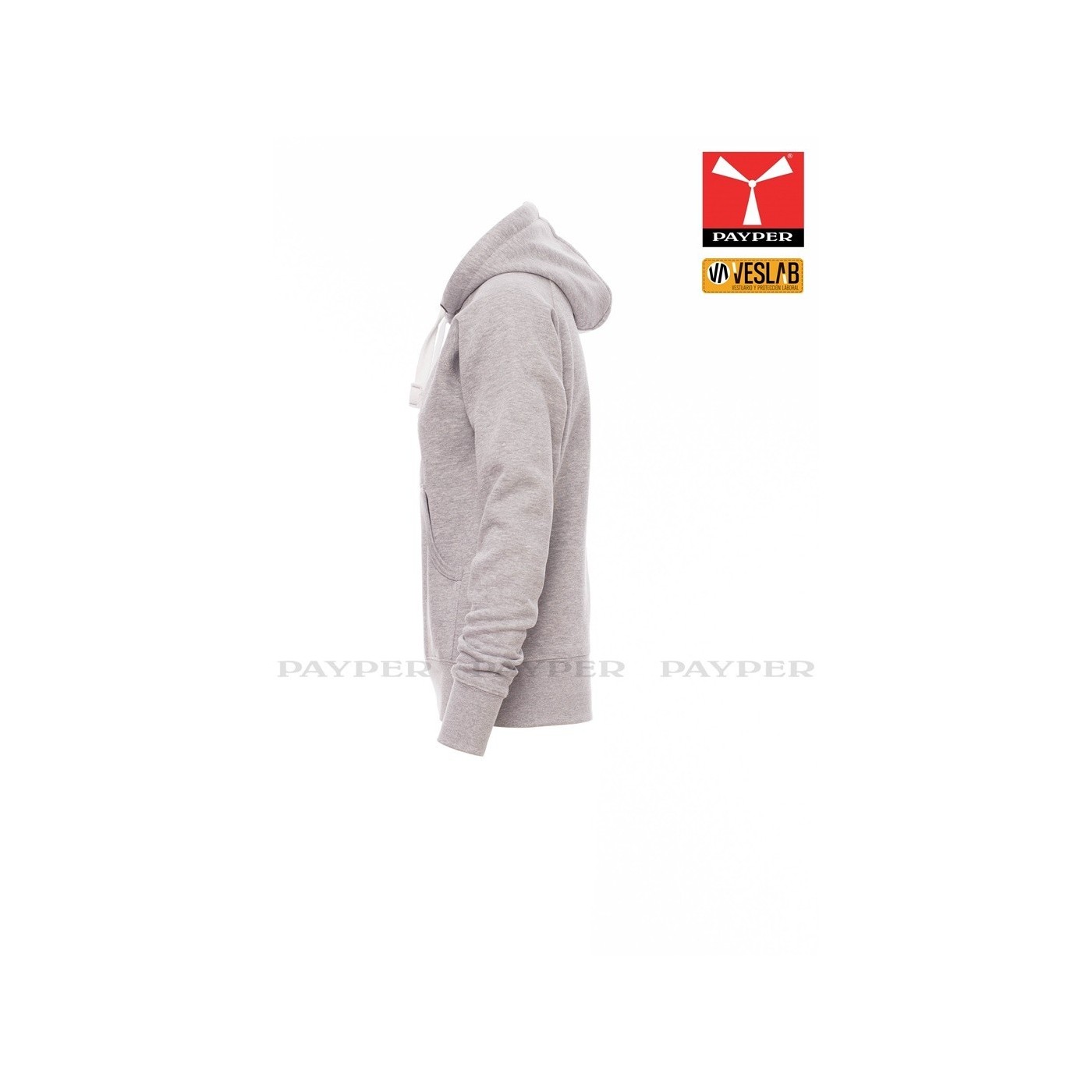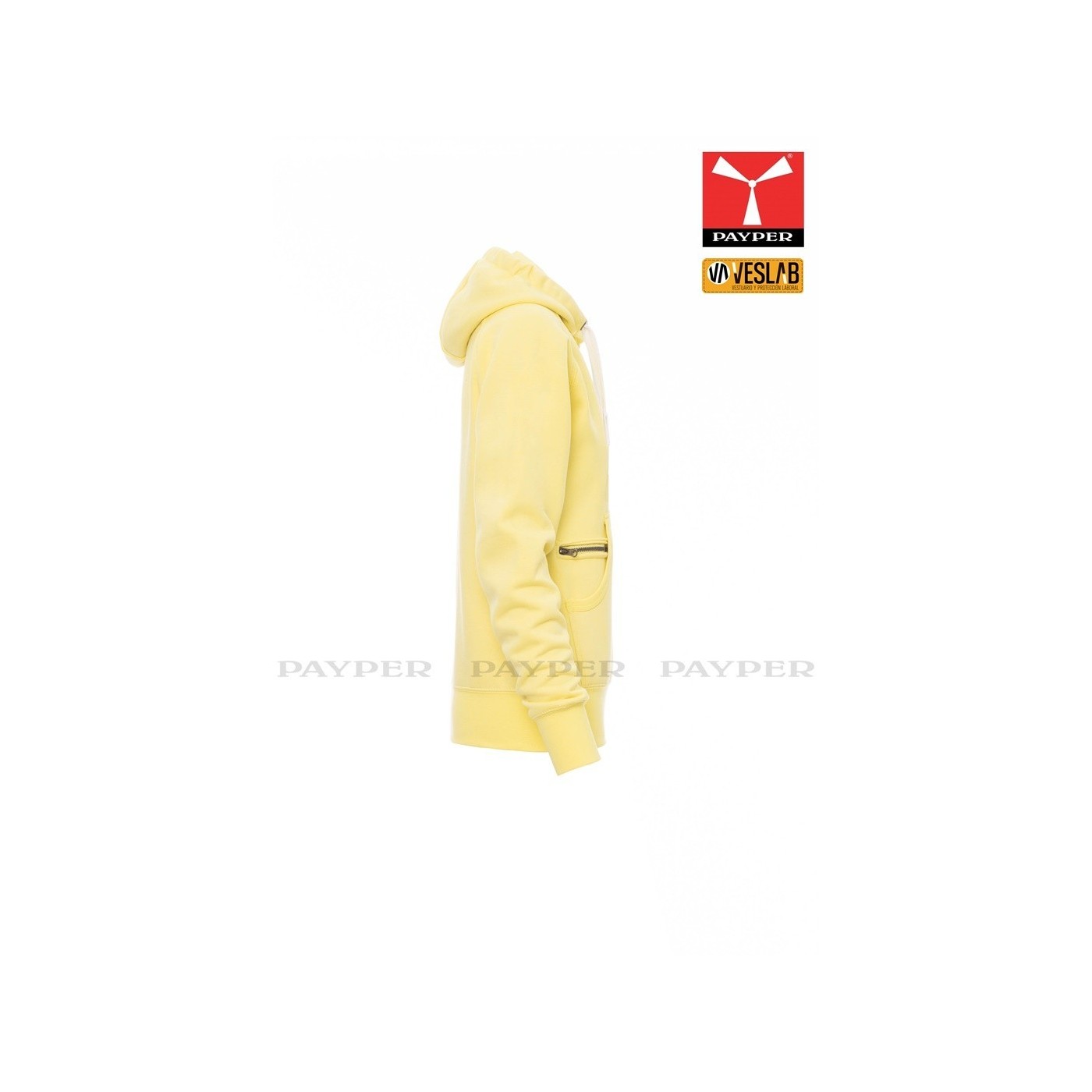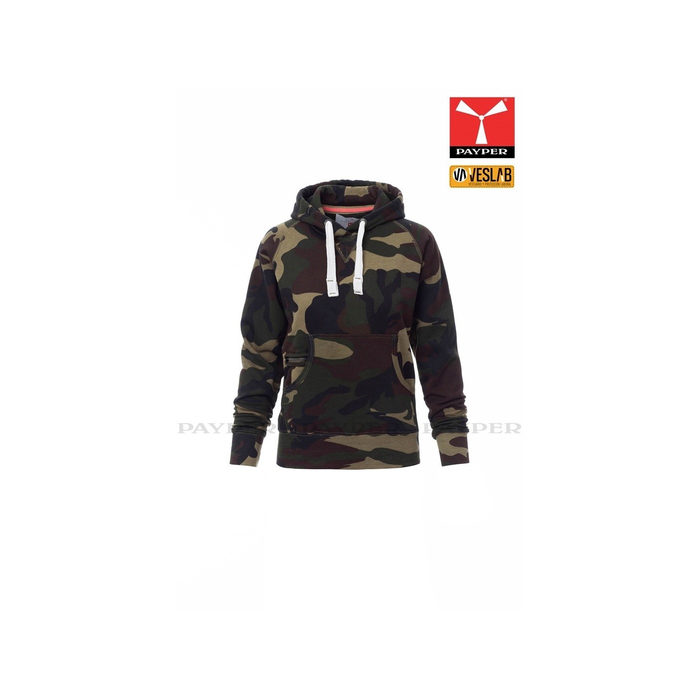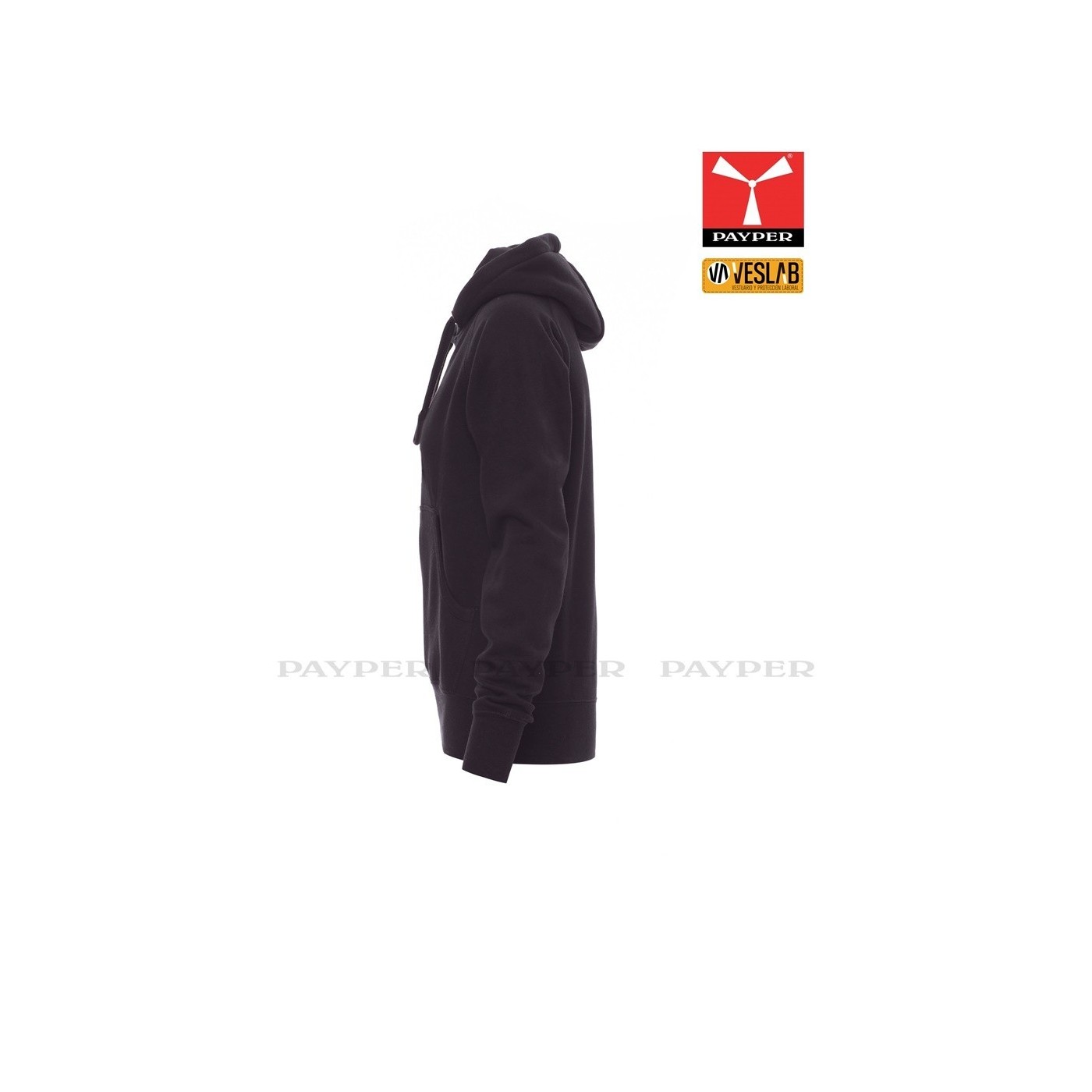 Se trata de una moderna sudadera entallada para mujer con capucha con doble costura y un ancho cordón blanco con puntadas y aros metálicos de contraste. Muy recomendable para quien quiera dar una imagen corporativa moderna y deportiva.