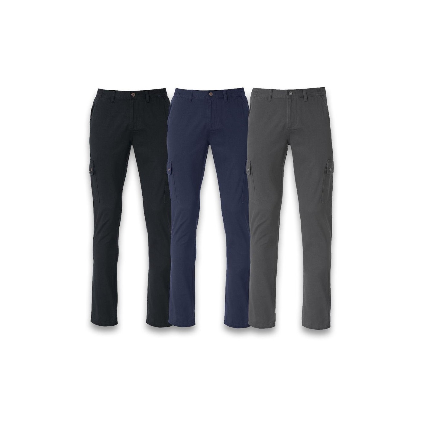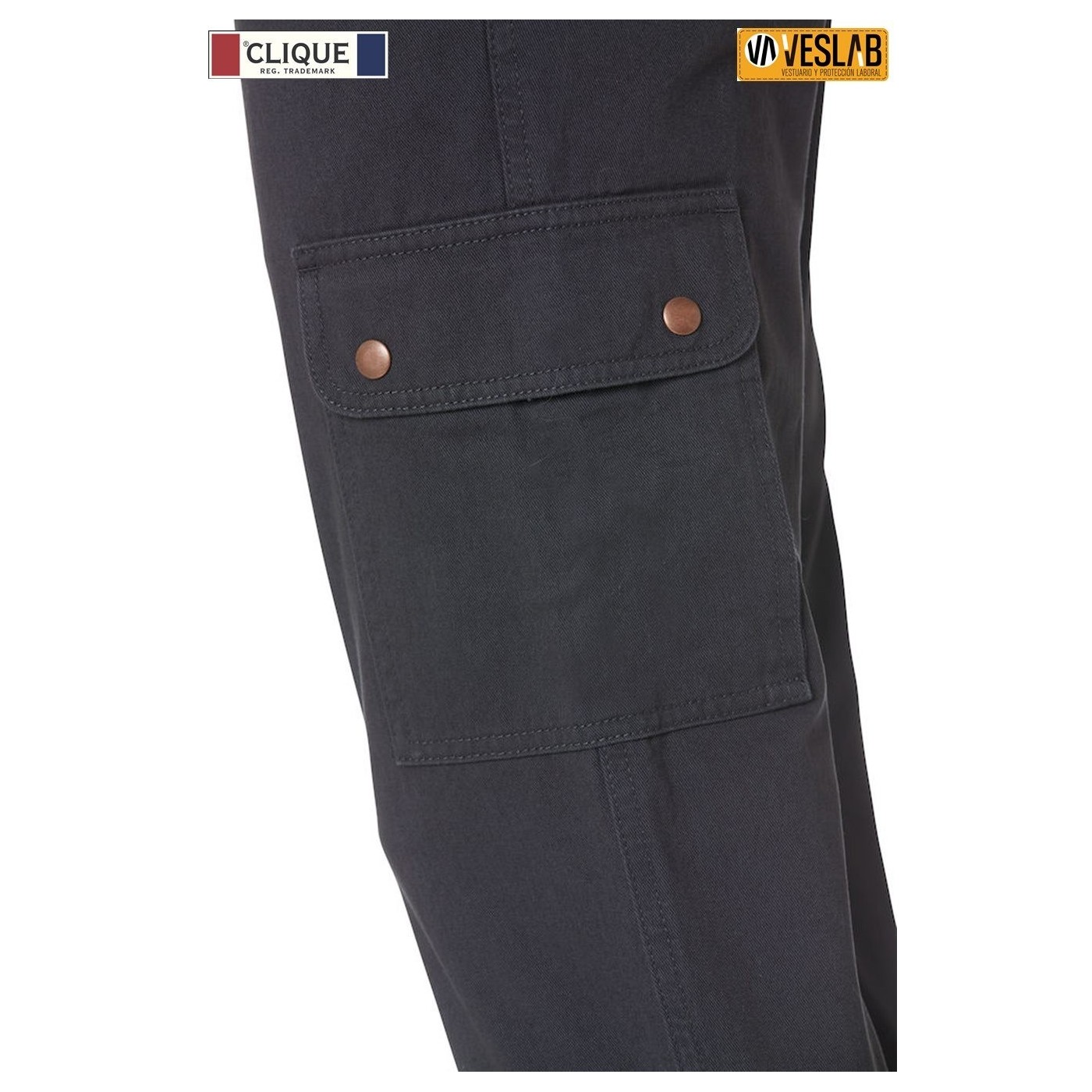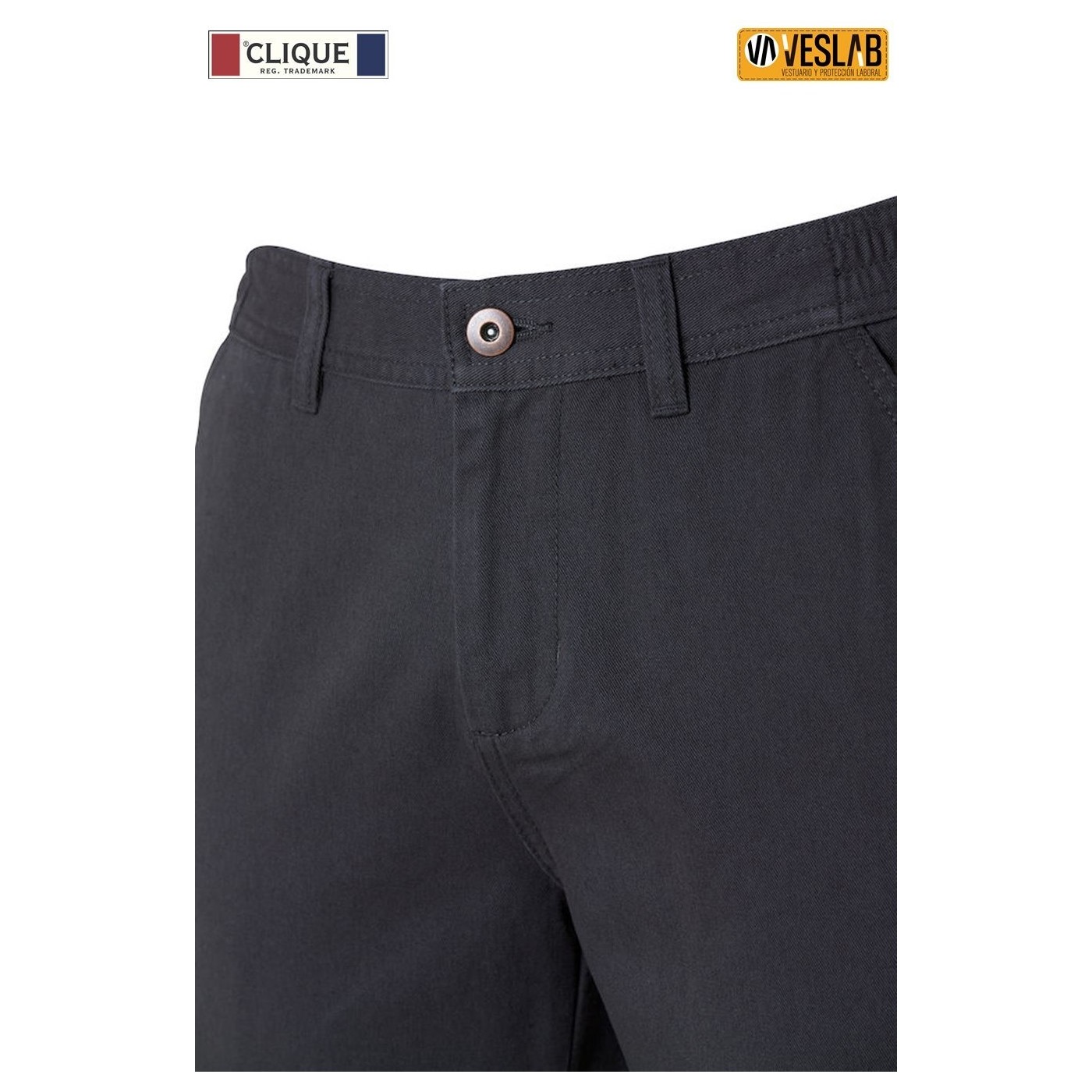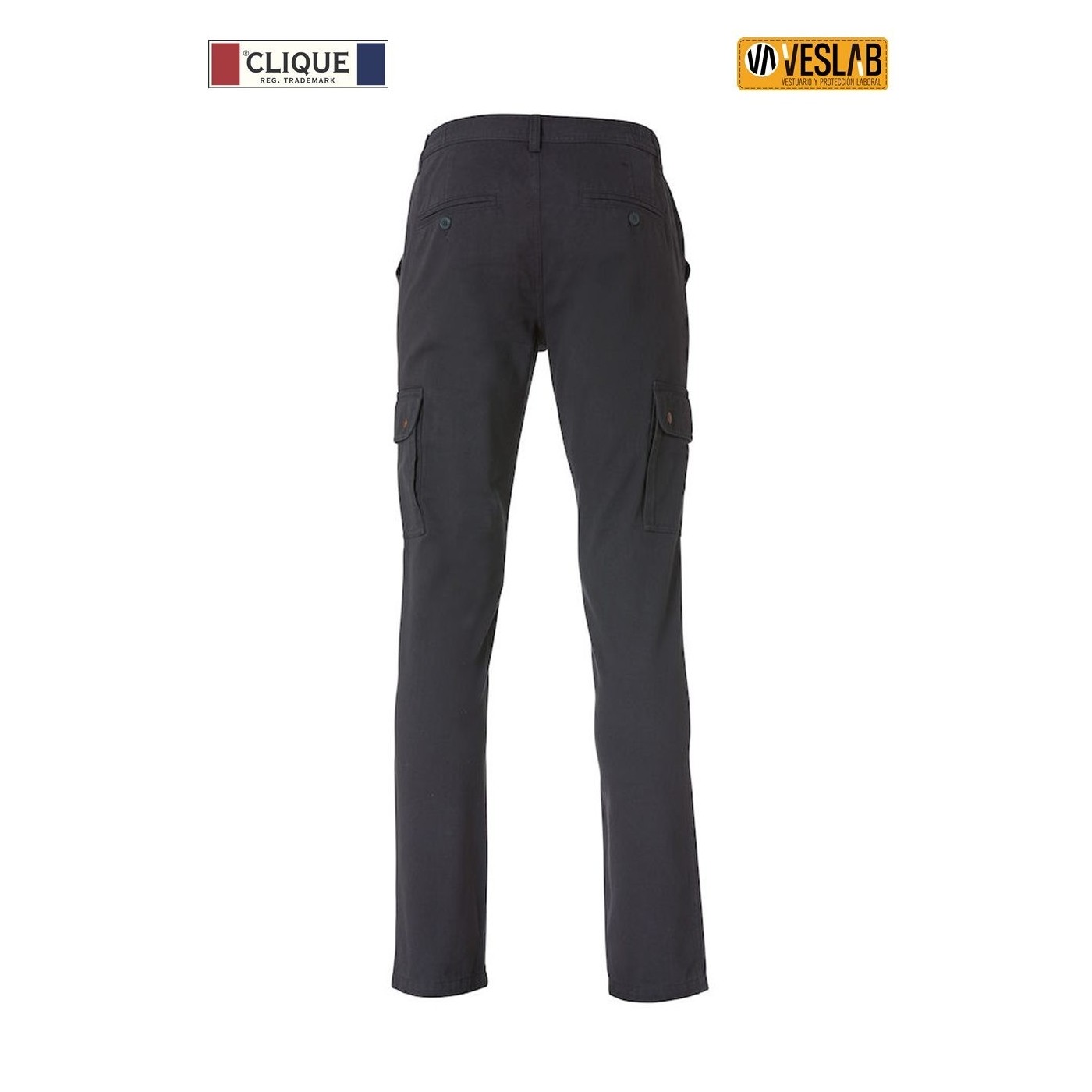 Pantalón de sarga unisex de pierna recta, bolsillos delanteros y trasero con botón.