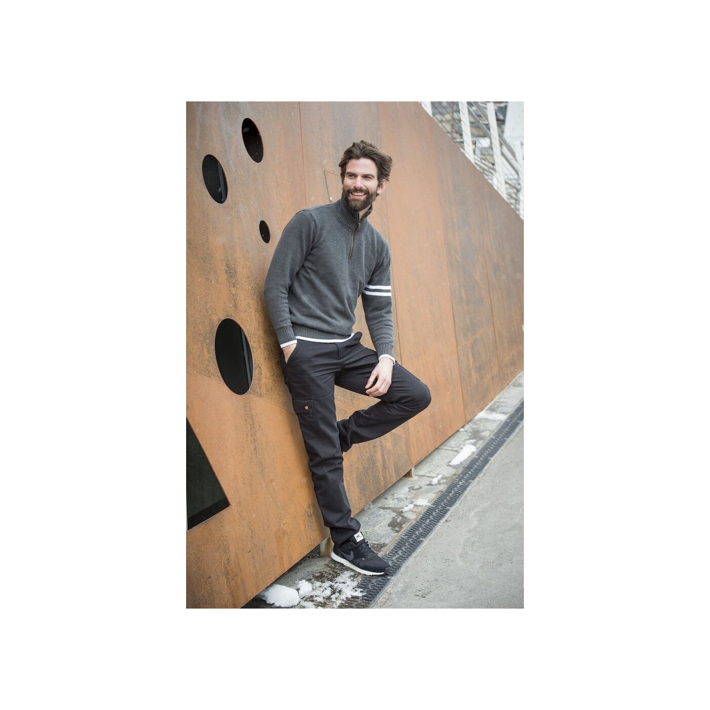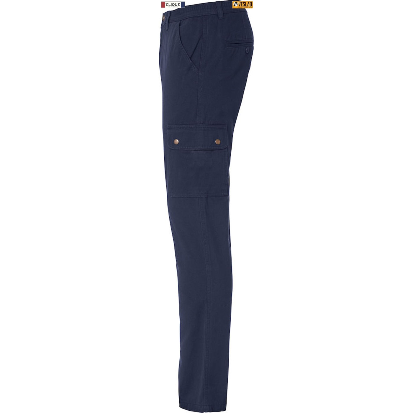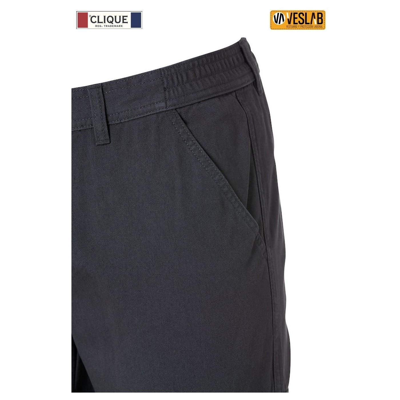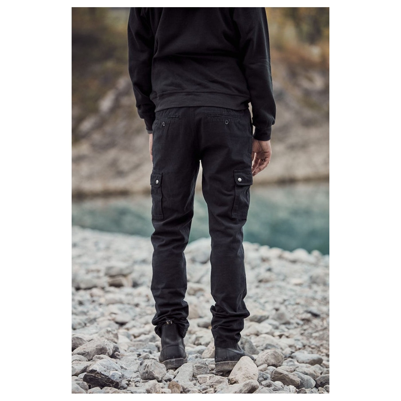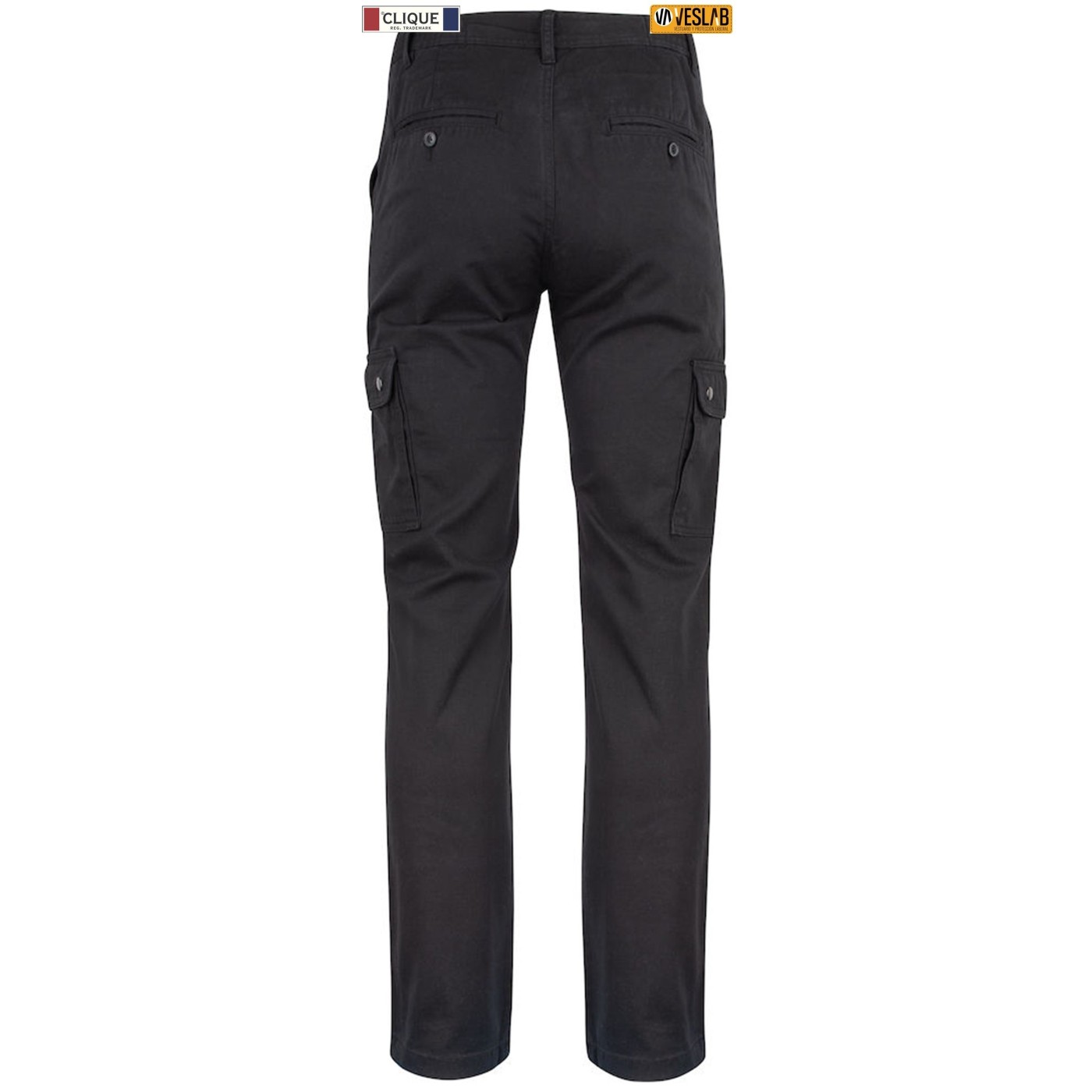 Pantalón de sarga unisex de pierna recta, bolsillos delanteros y trasero con botón.