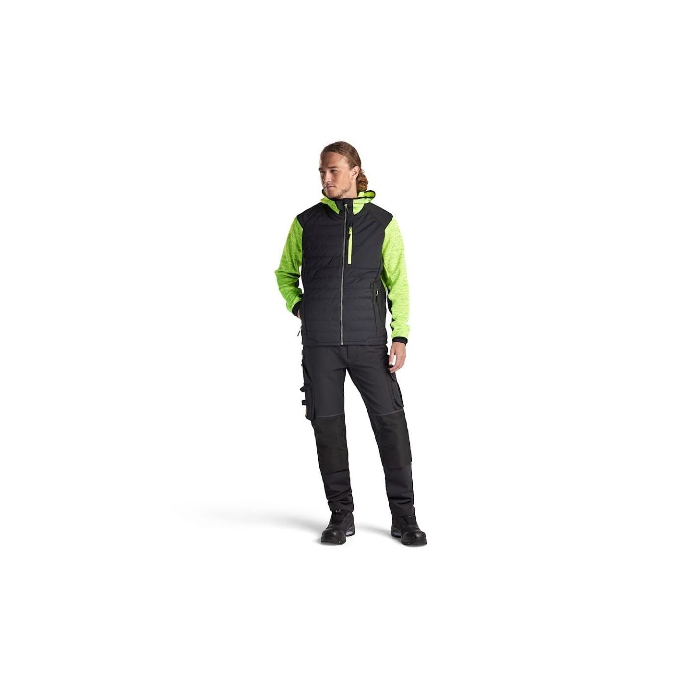 Se trata de una chaqueta híbrida con un acolchado fino pero cálido en la parte delantera, la espalda y la capucha, y un tejido suave sobre los hombros, los brazos y los costados. Una prenda cómoda y cálida que permite una excelente libertad de movimientos cuando se trabaja en ambientes más fríos. Funciona igual de bien como chaqueta o suéter.