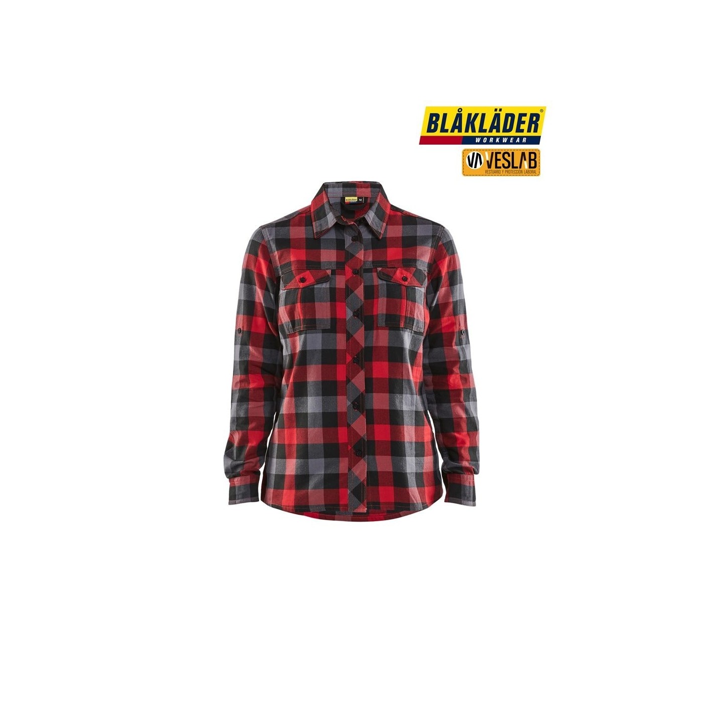 Suave camisa entallada de corte femenino elaborado en lanilla de entalle suelto. La camisa tiene un diseño cuadriculado, está cepillada en el interior y cuenta con dos bolsillos en el pecho con solapa y espacio para un bolígrafo del lado izquierdo. Las mangas tienen correas, lo cual le da la opción de doblarlas. La presilla del cuello permite colgar la camisa fácilmente.