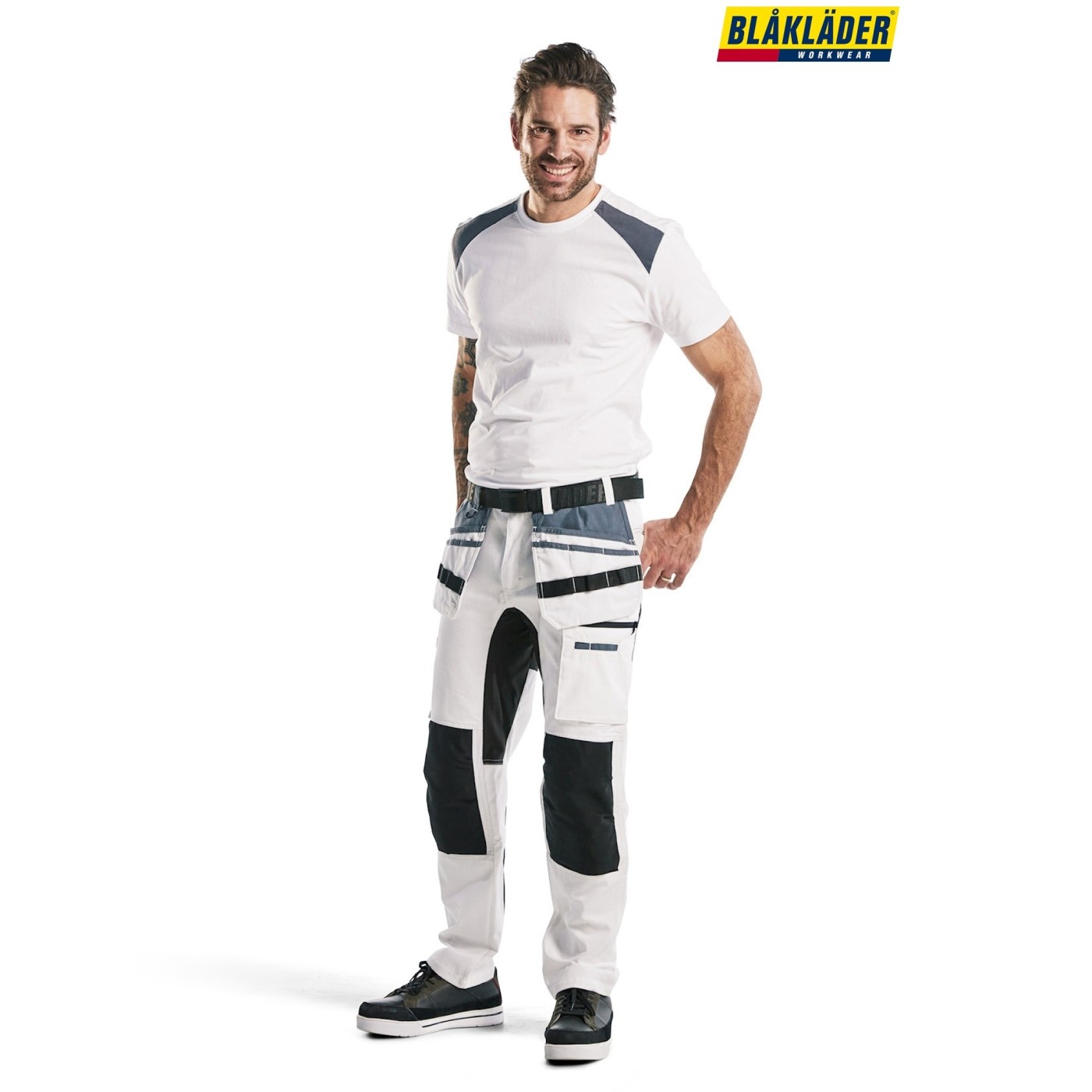 El tejido tiene excelentes propiedades de absorción gracias al alto porcentaje de algodón. Los pantalones cuentan con muchos bolsillos funcionales y un bolsillo reforzado para herramientas de pintura especialmente diseñado. El bolsillo para herramientas de pintura y los bolsillos para uñas están reforzados con tela CORDURA® y las rodillas con CORDURA® elástico para mayor comodidad.