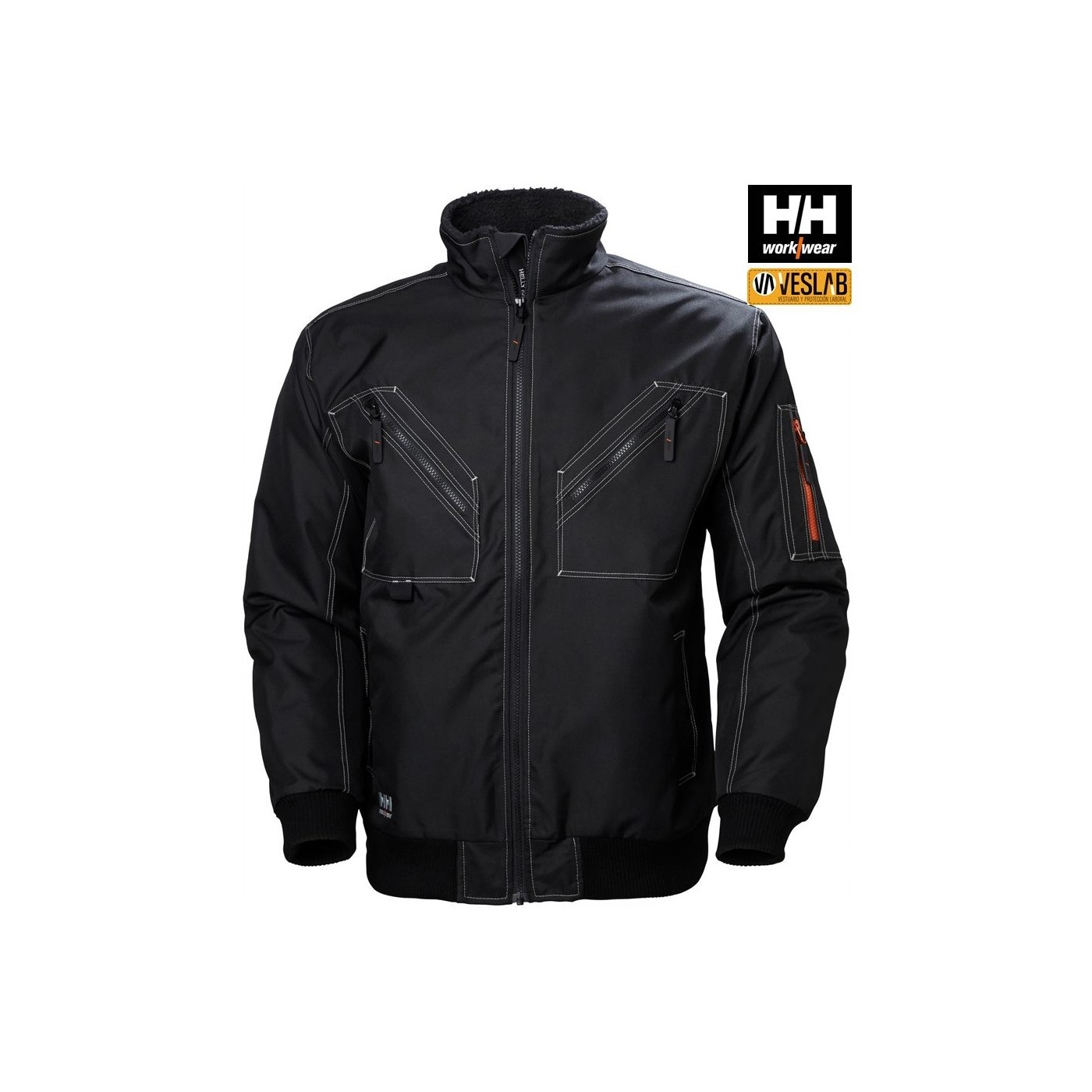 Chaqueta de trabajo Helly Hansen workwear con dos bolsillos en el pecho y uno en la manga con cremalleras.